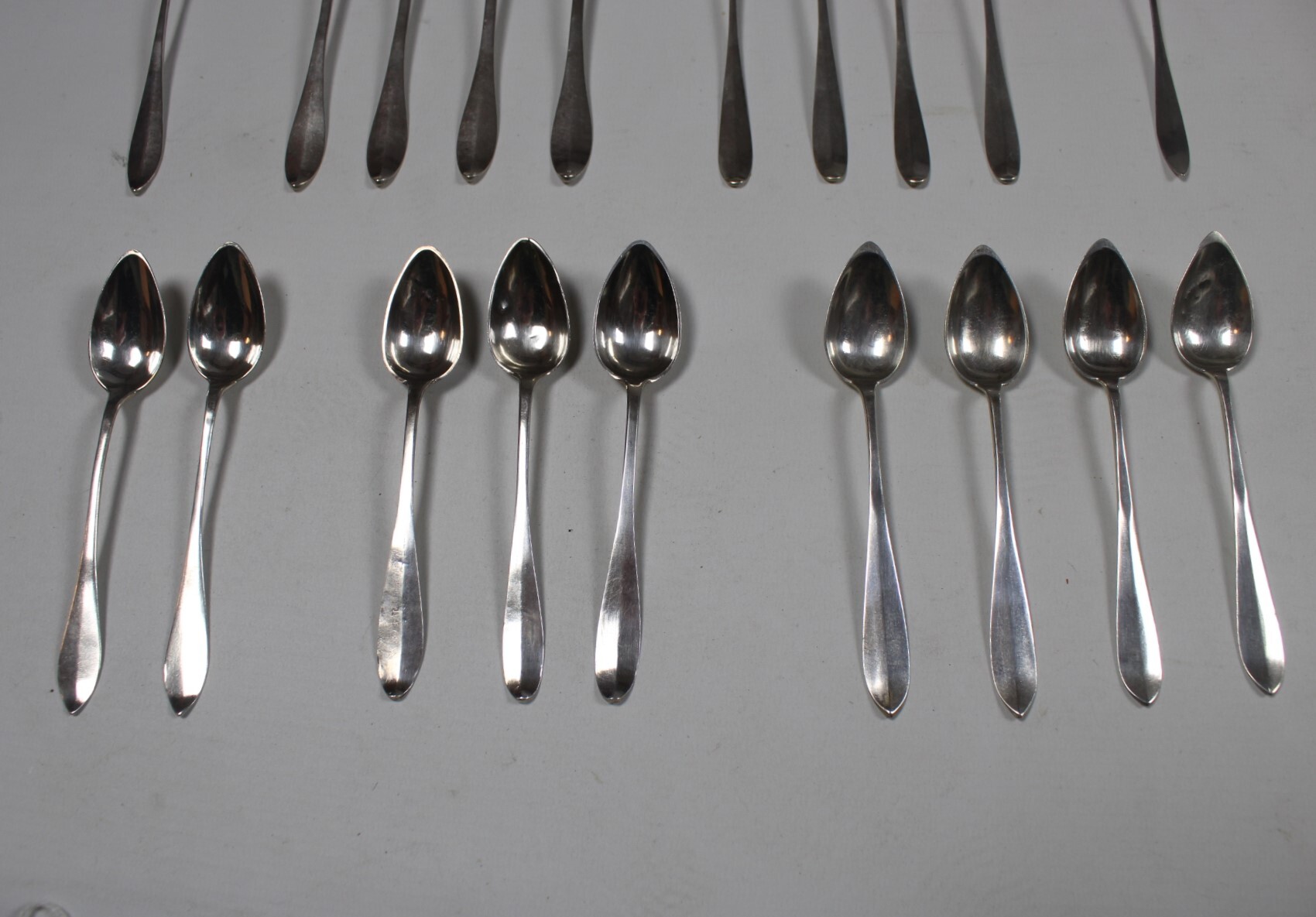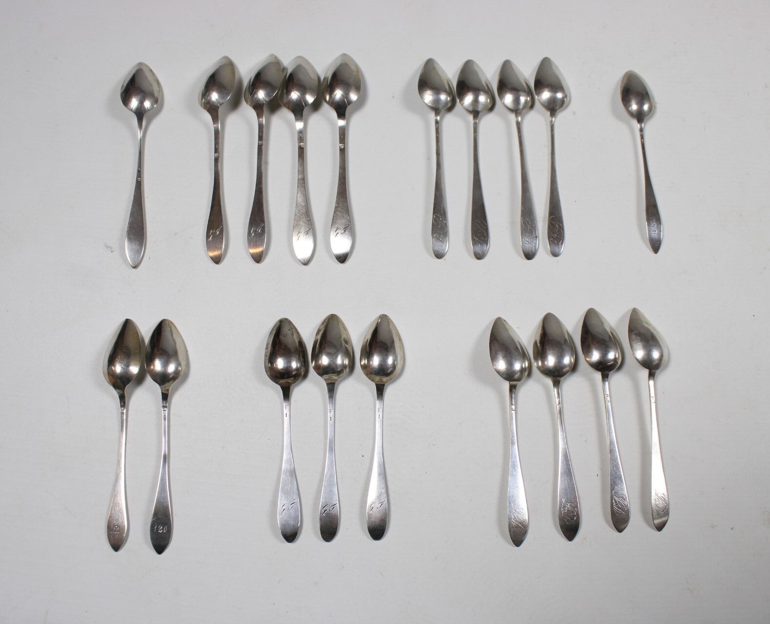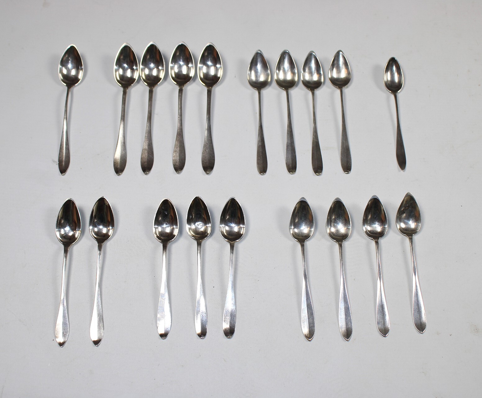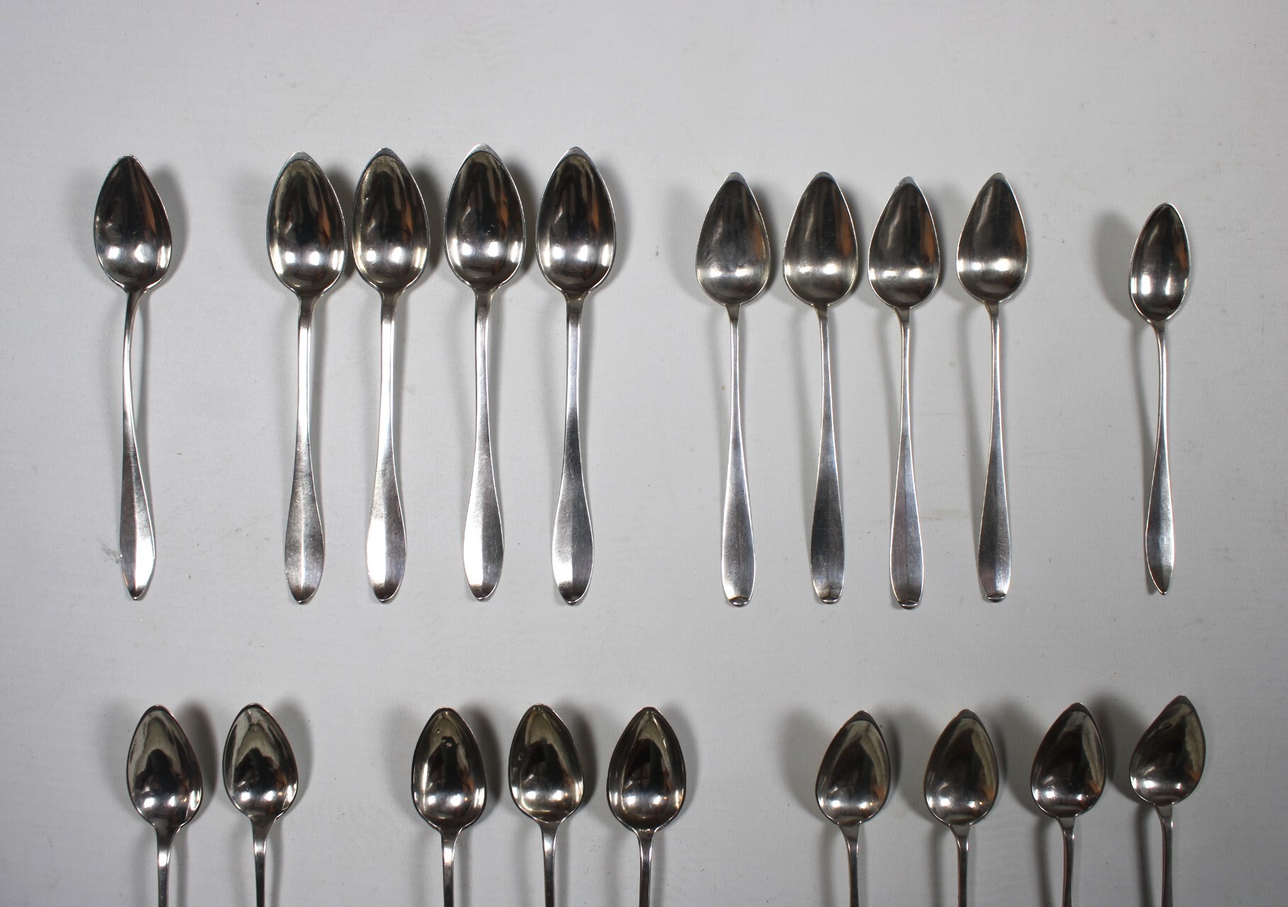 A set of 19 silver spoons with a typical classic 19th-century design.