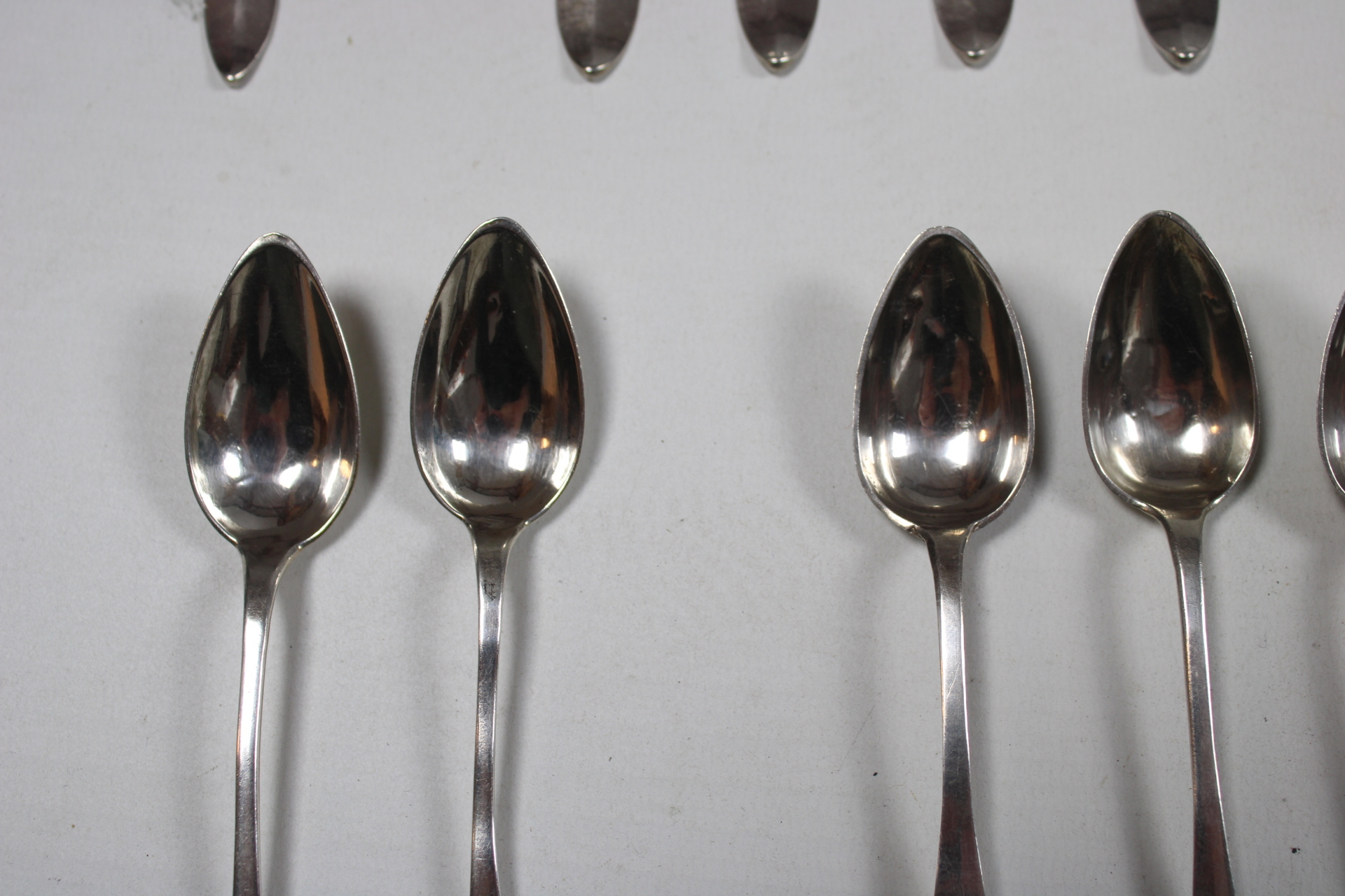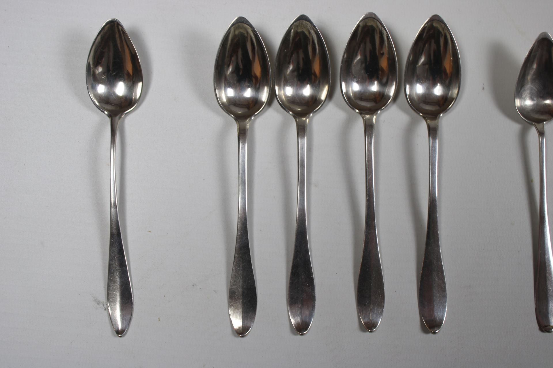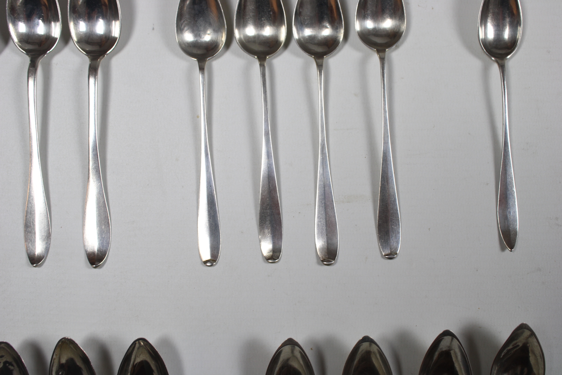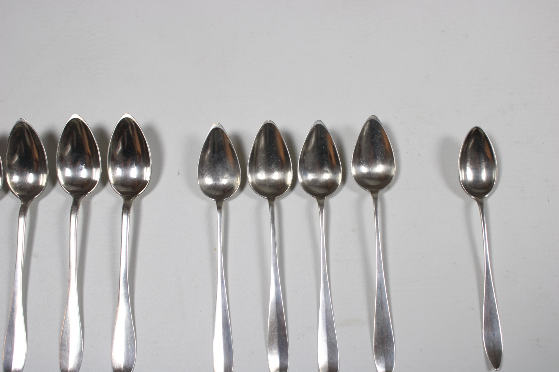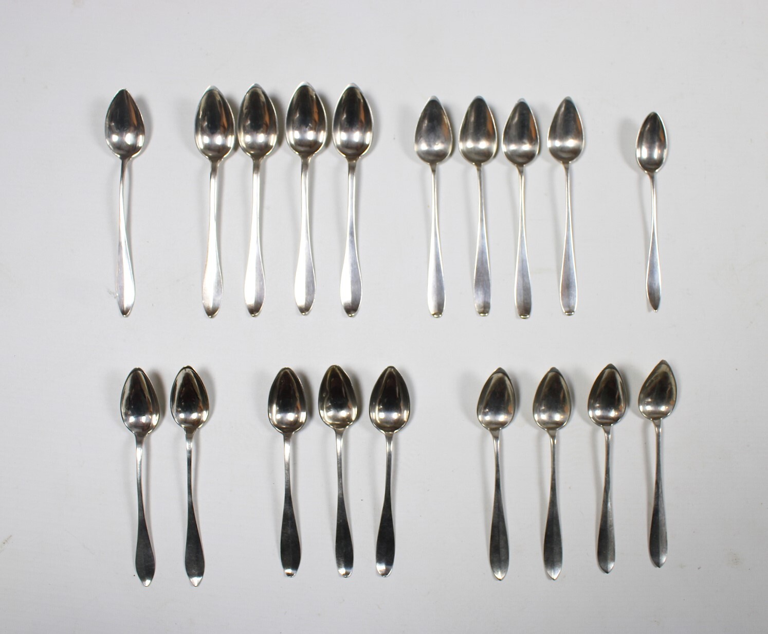 A set of 19 silver spoons with a typical classic 19th-century design.