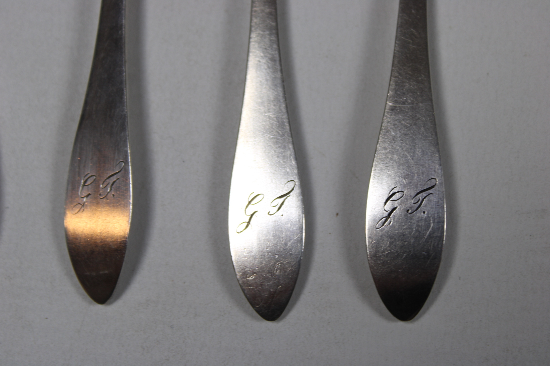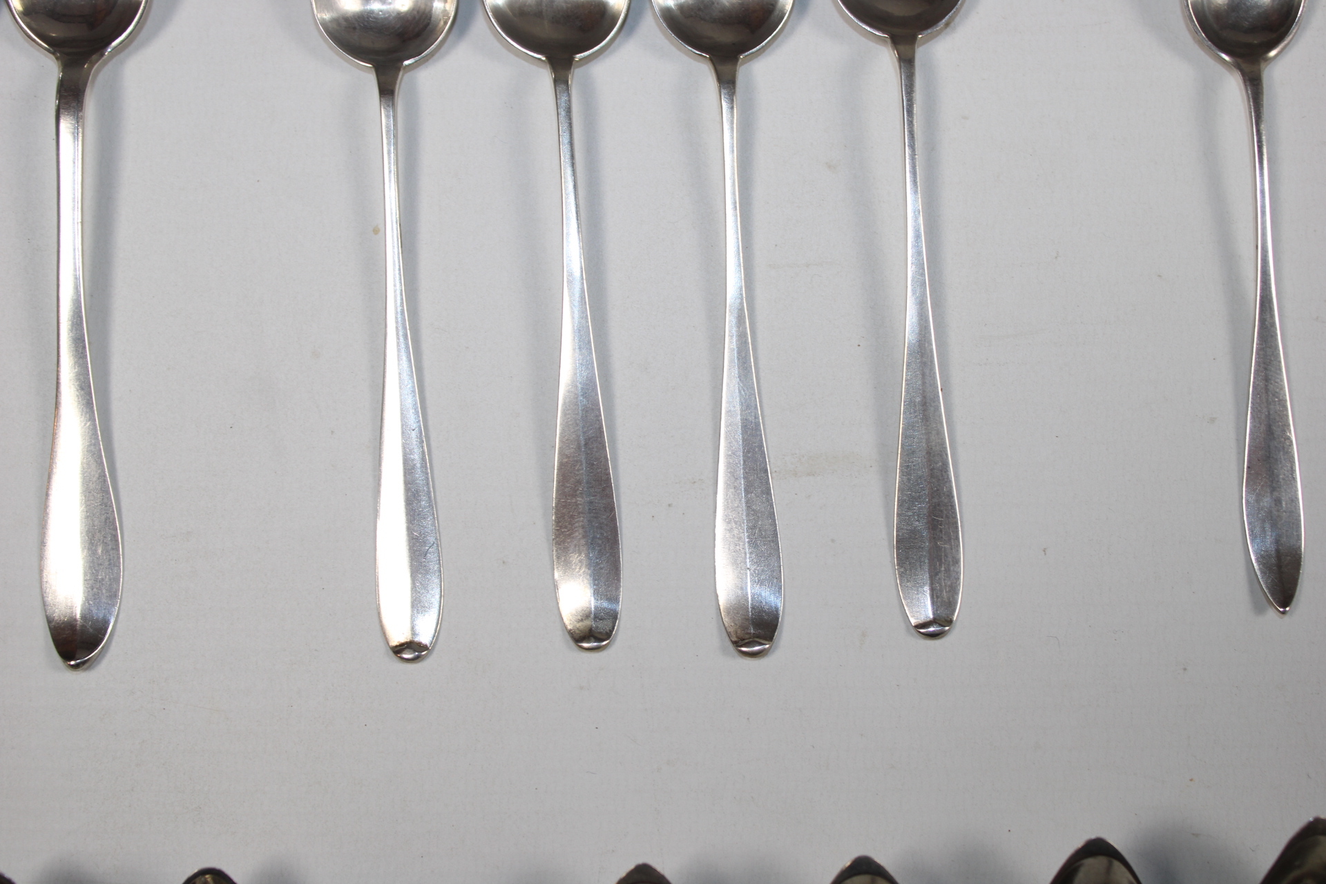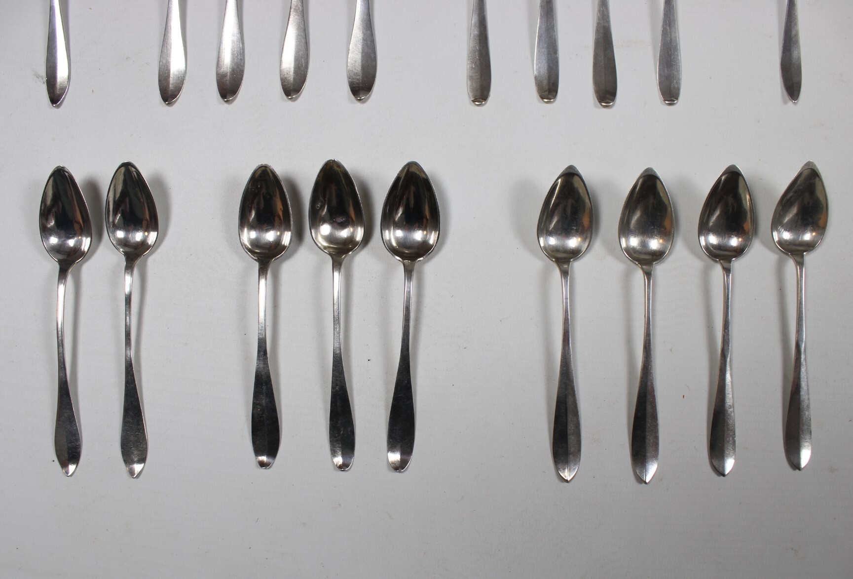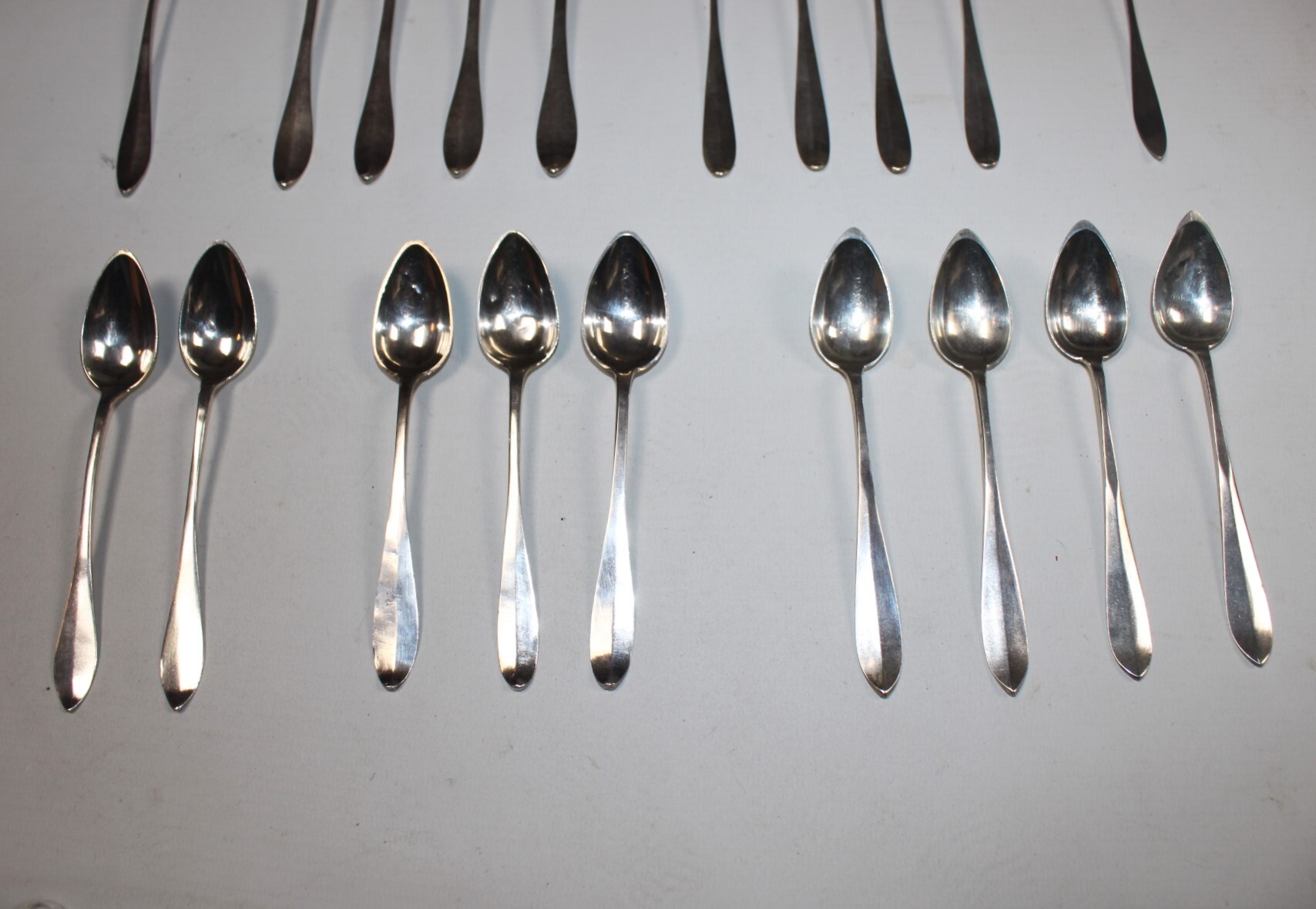 A set of 19 silver spoons with a typical classic 19th-century design.