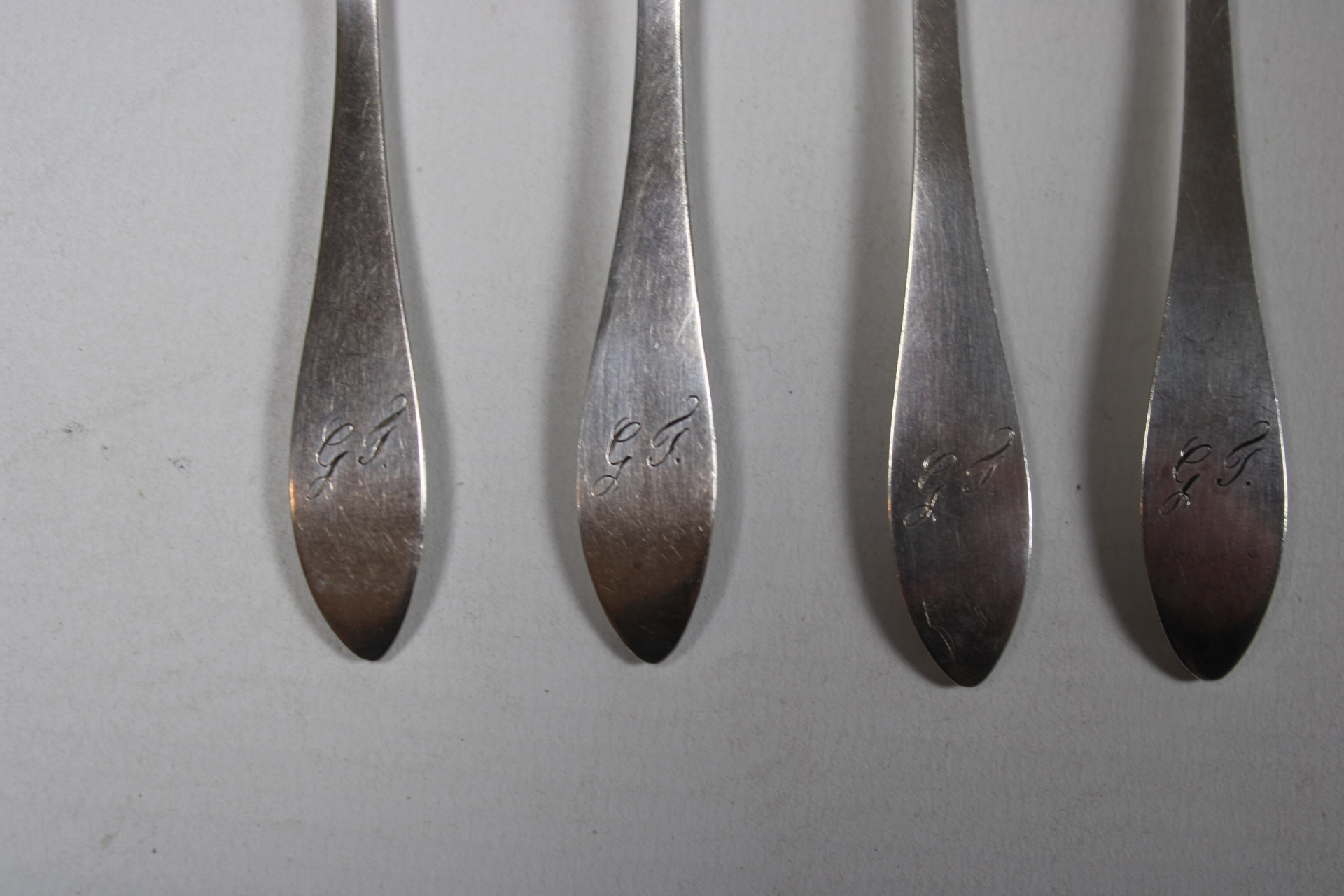 - 4 pieces: length +/- 14.2 cm, silver content 800. Initials G.T. Unknown mark 'MB'.