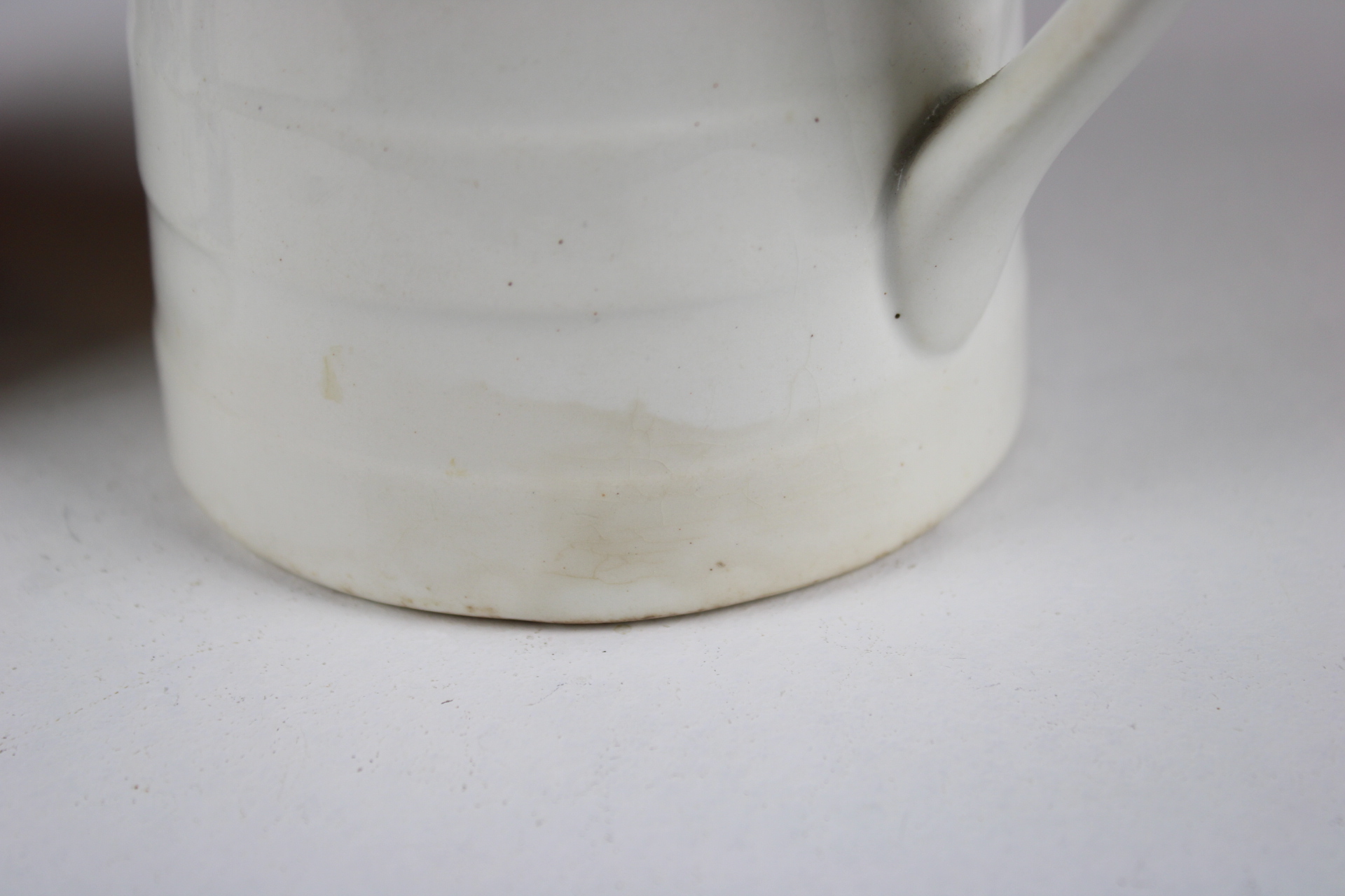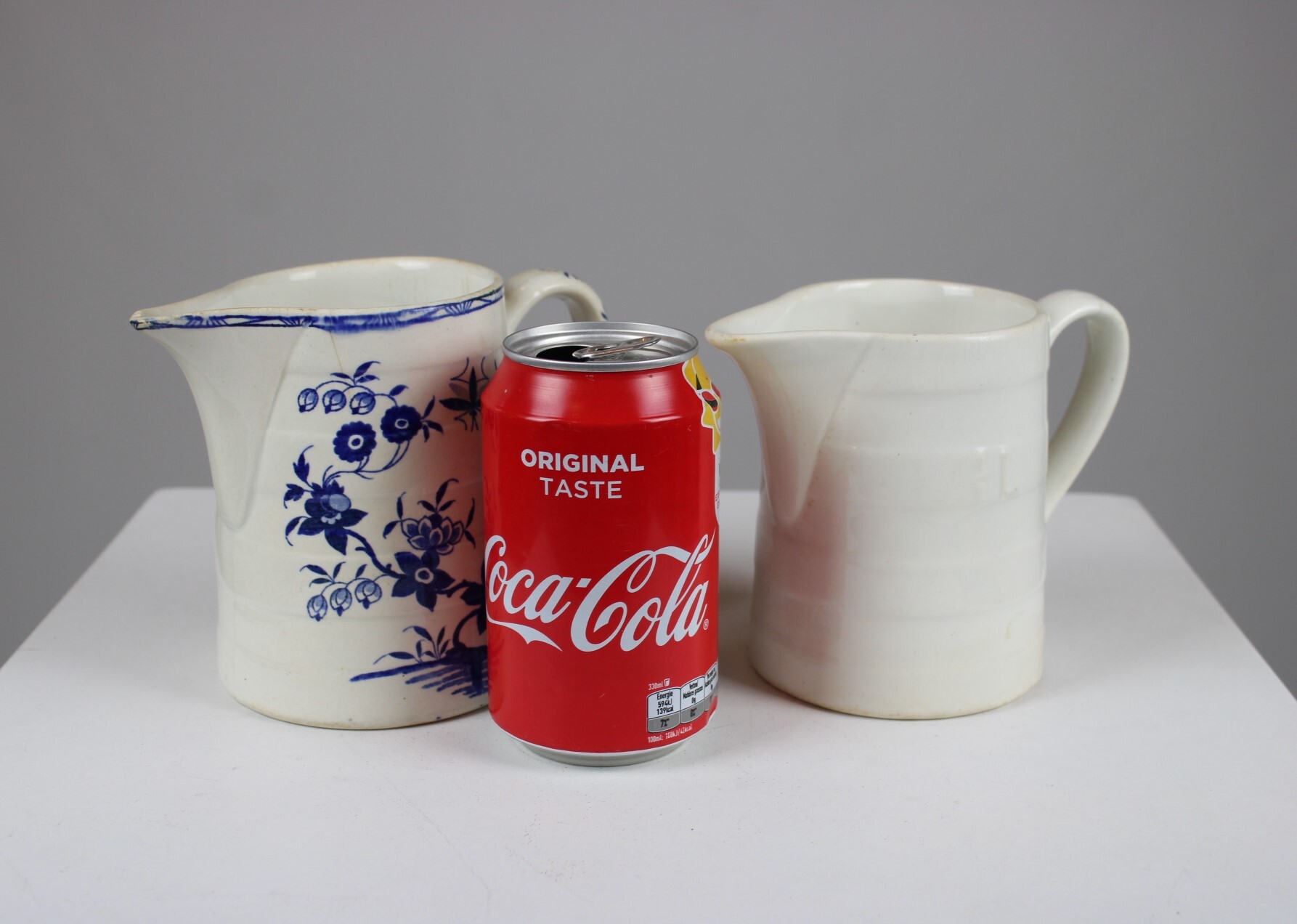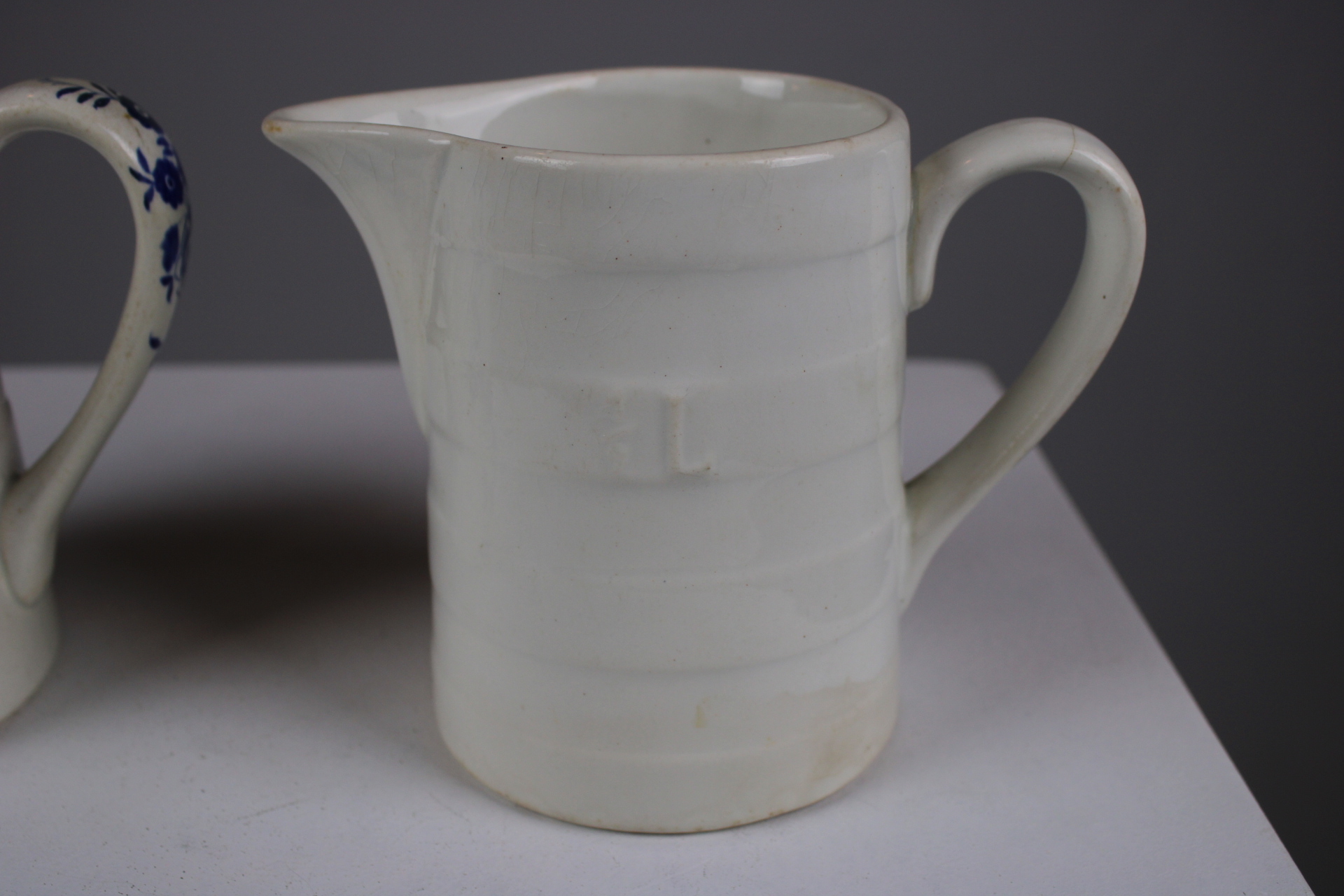 - White milk jug, patterned with raised bands, banded jug, marked 1/2 L (?), height 11.5 cm, diameter 9 cm