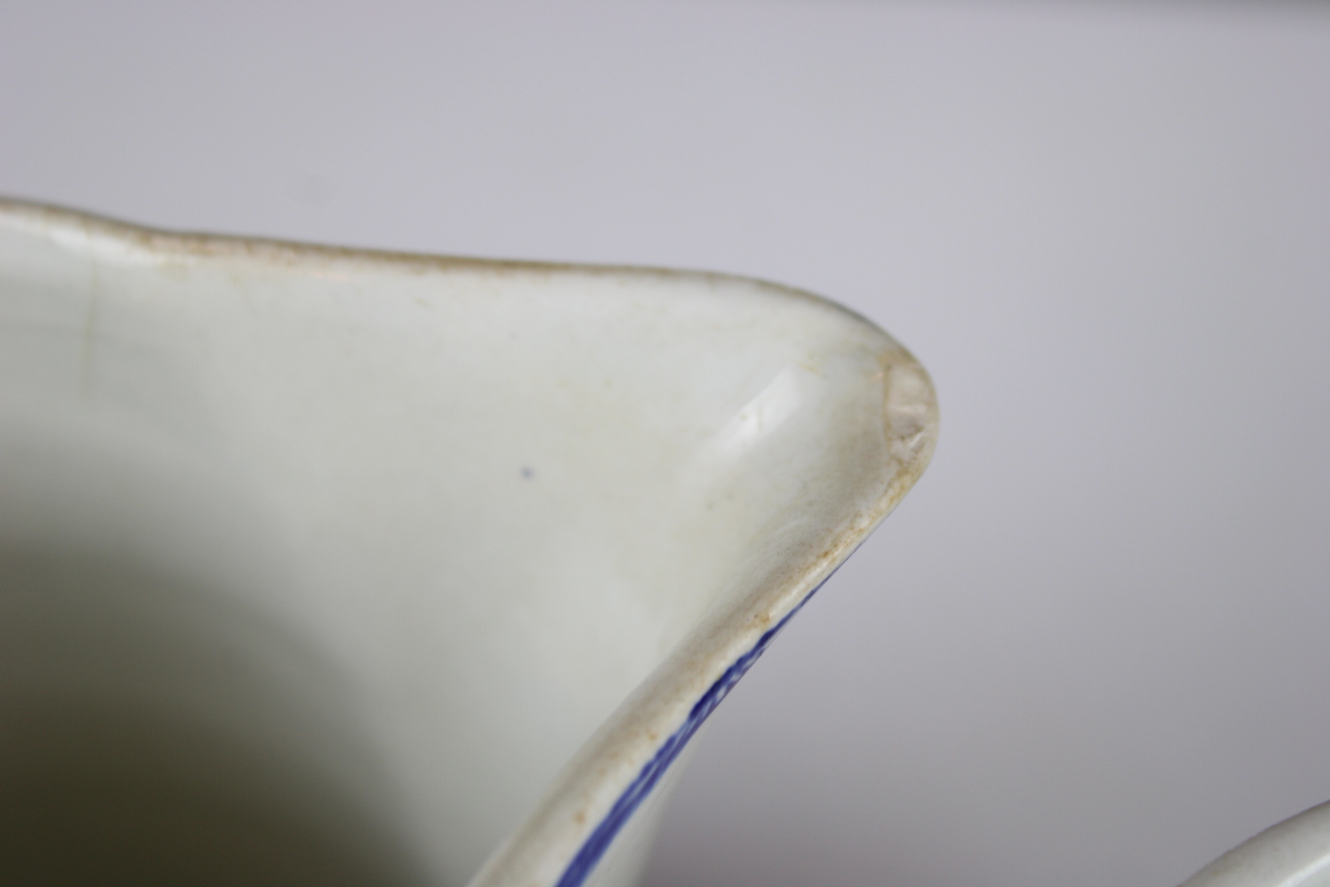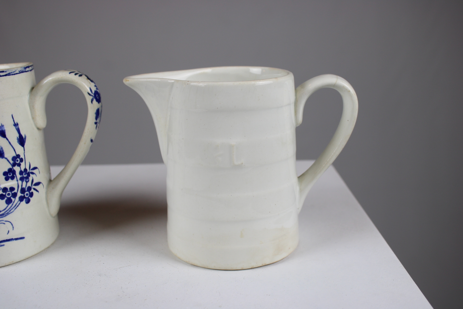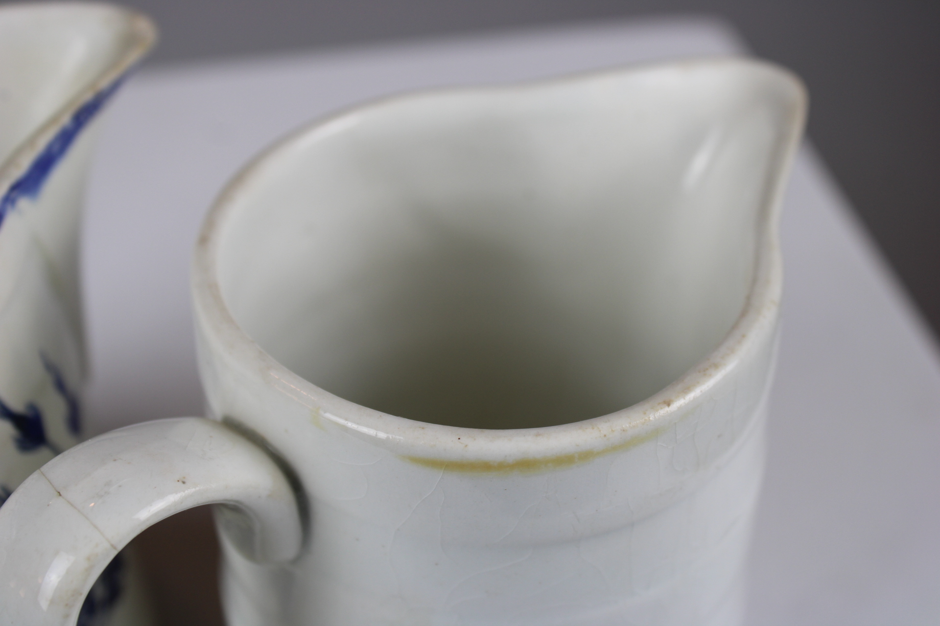 - White milk jug, patterned with raised bands, banded jug, marked 1/2 L (?), height 11.5 cm, diameter 9 cm