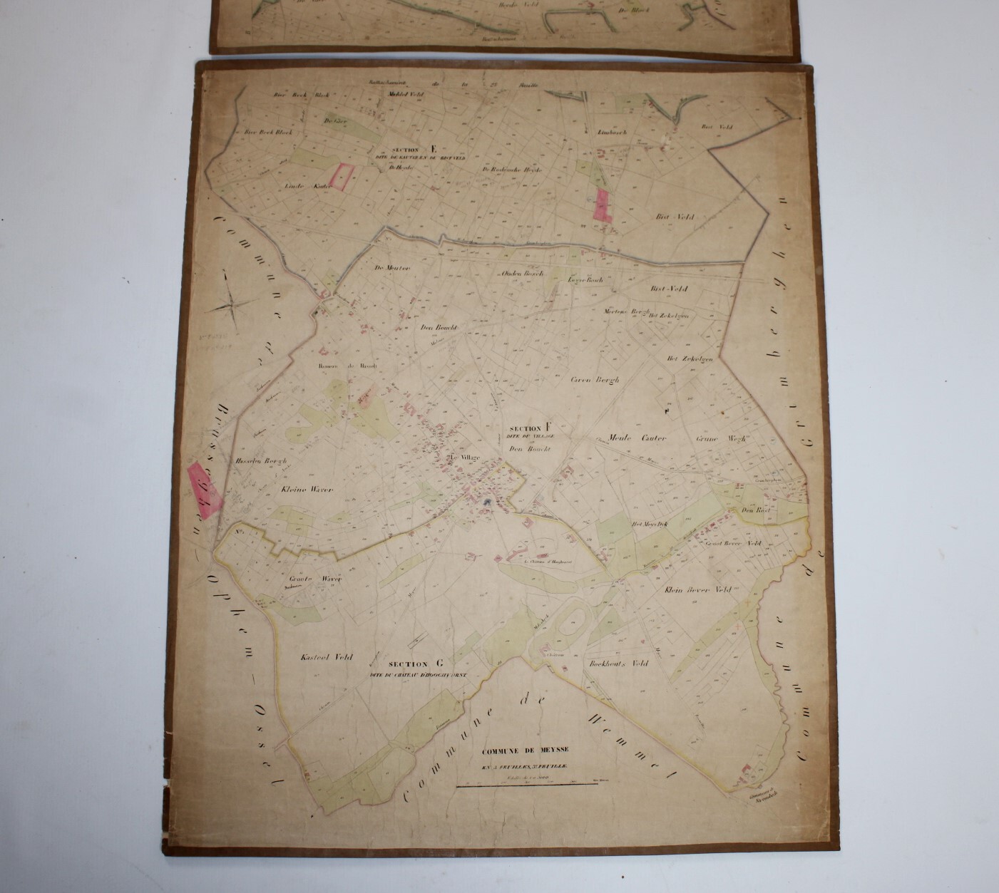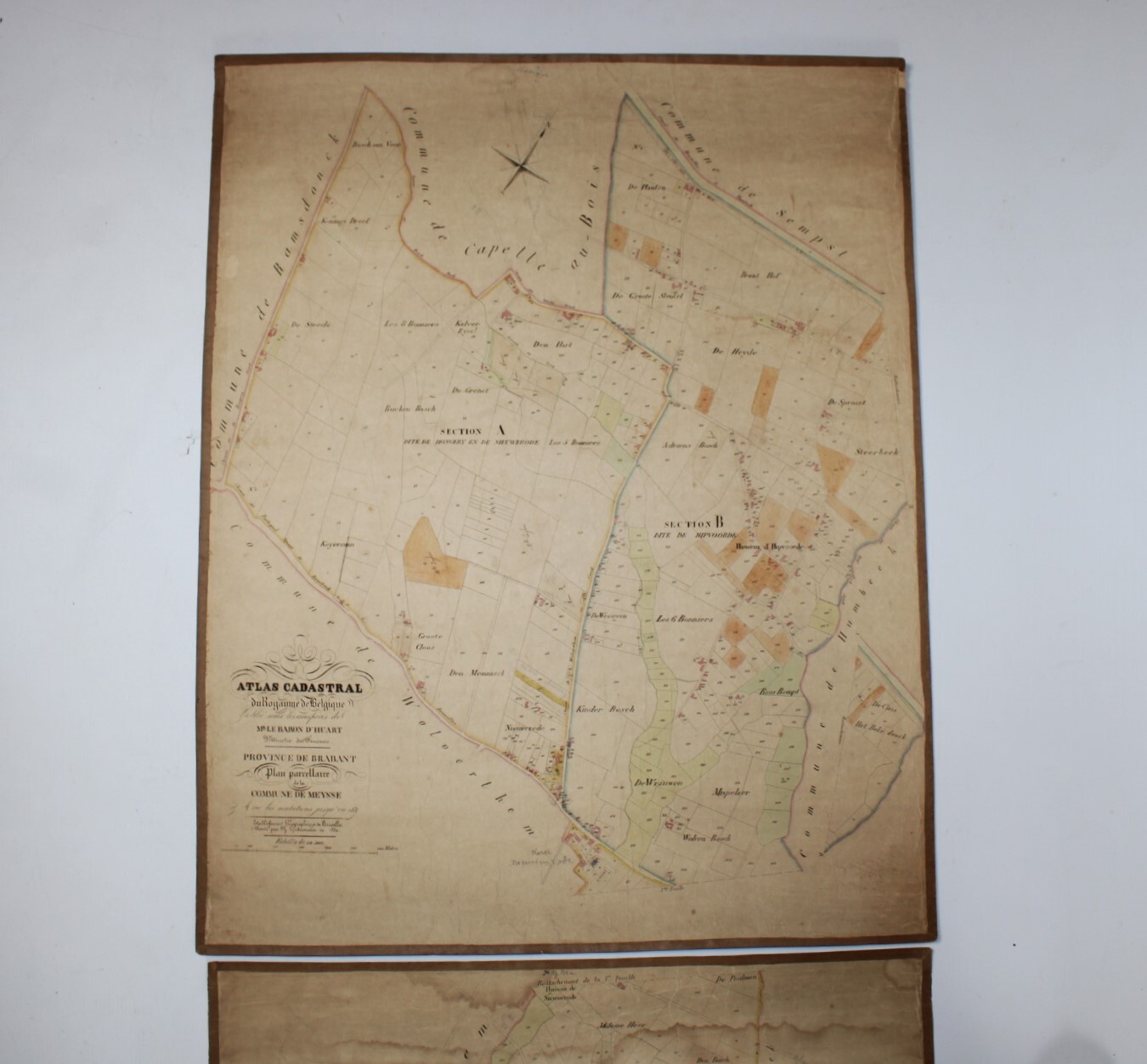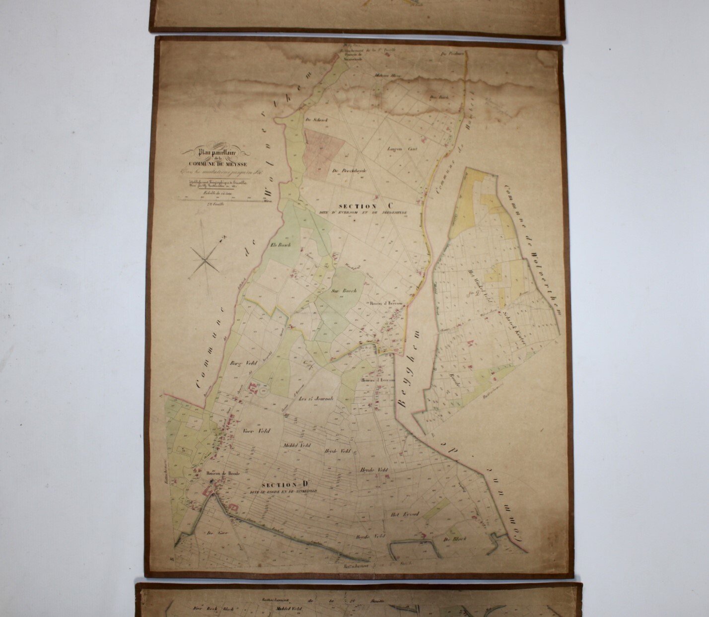 A set of 3 large original cadastral map of Meise or 'Meysse', drawn by cartographer Philippe Vandermaelen and published as the "Atlas Cadastral" between 1846 and 1854. Indication: "Avec les mutations jusqu'en 1837". Scale: 1 à 5000.