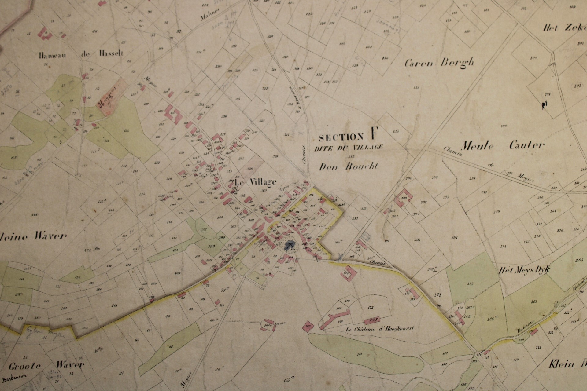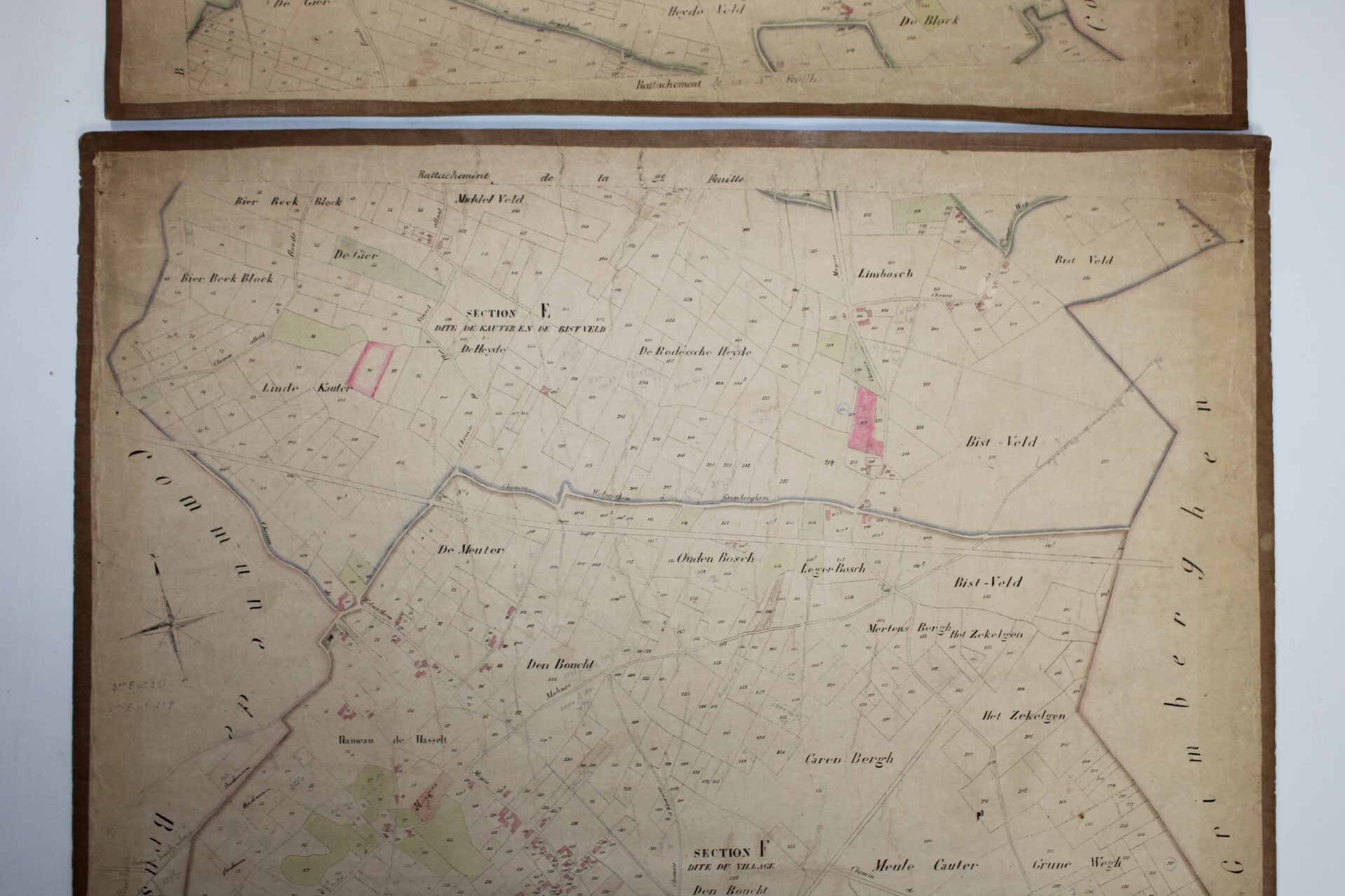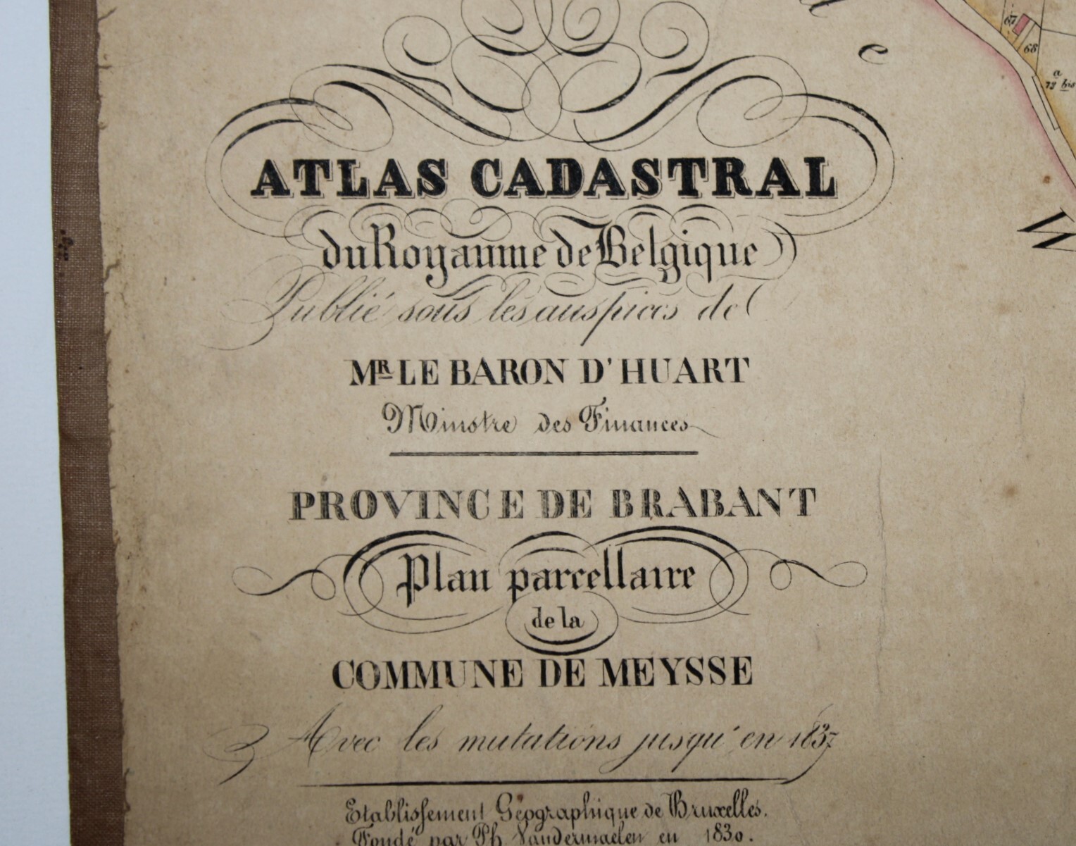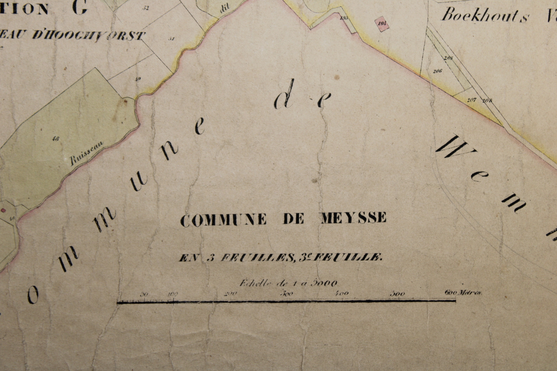 A set of 3 large original cadastral map of Meise or 'Meysse', drawn by cartographer Philippe Vandermaelen and published as the "Atlas Cadastral" between 1846 and 1854. Indication: "Avec les mutations jusqu'en 1837". Scale: 1 à 5000.