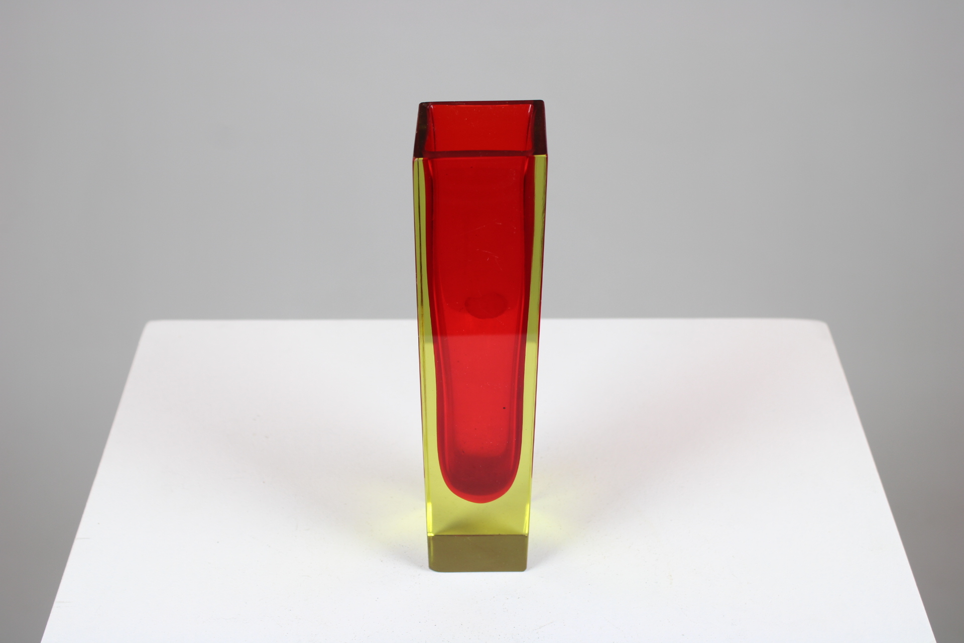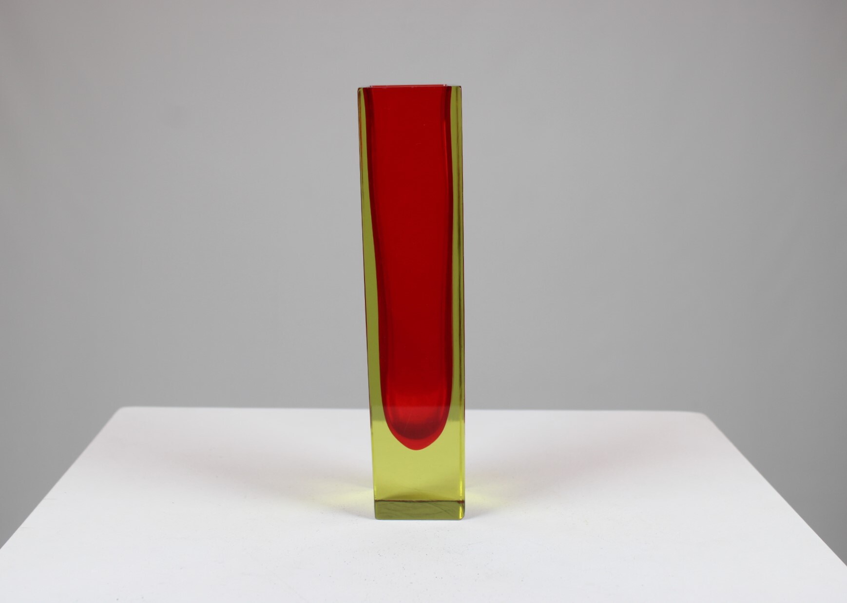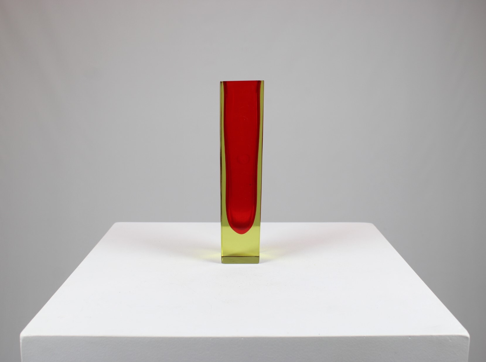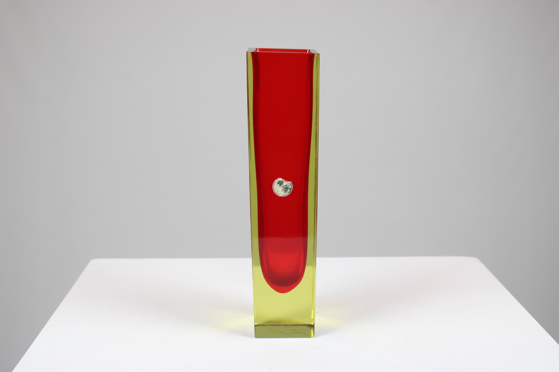 A vintage red-yellow vase by Cesare Toso. Murano, Venice. Probably 1970s. In good condition, some light scratches which are only barely visible.