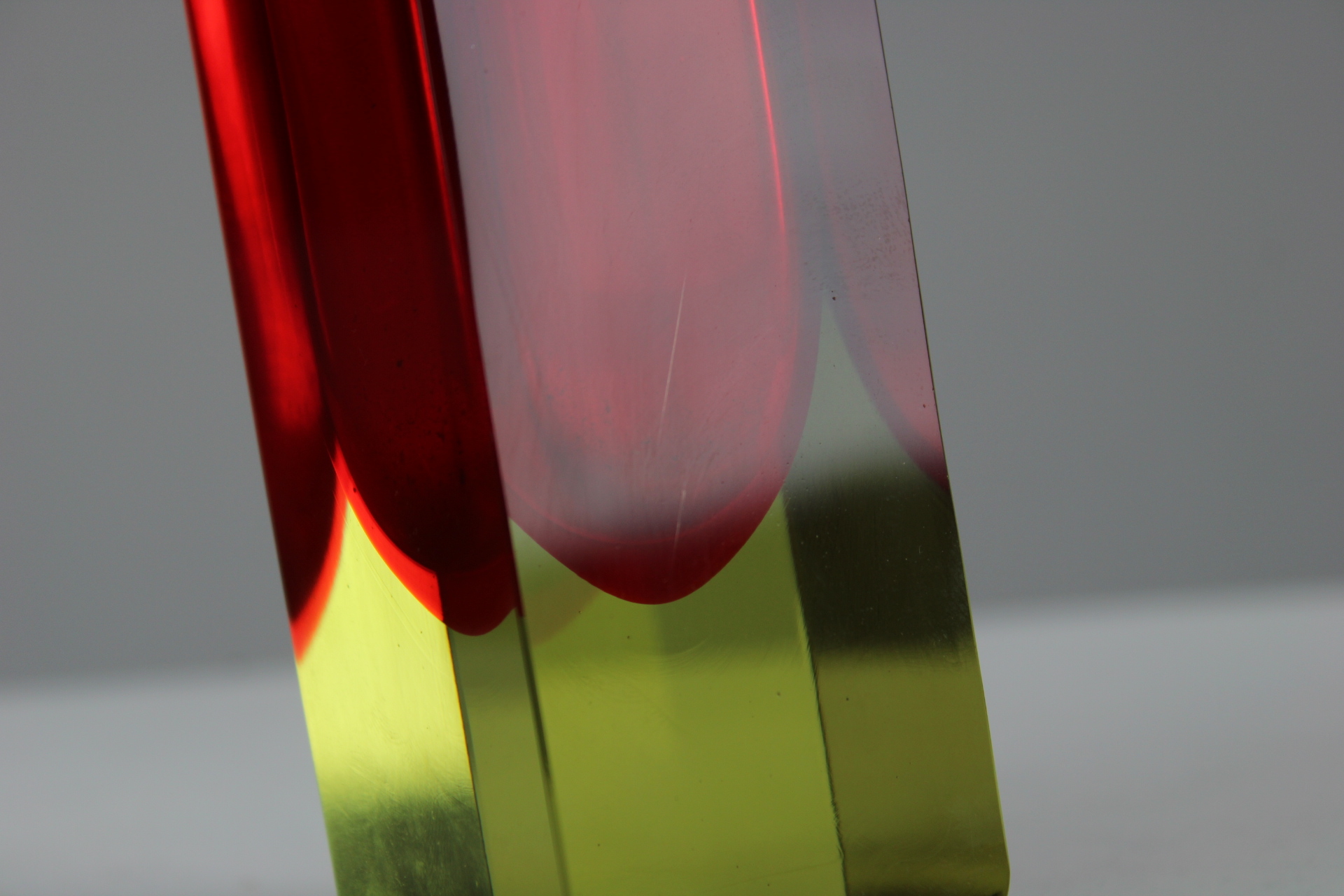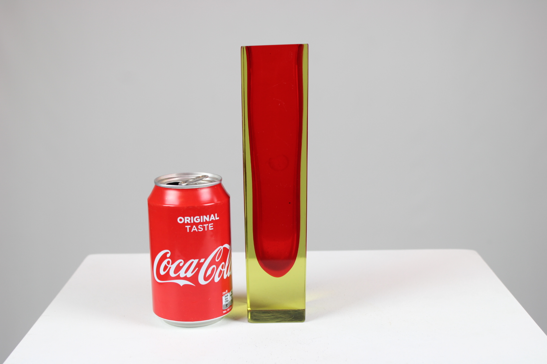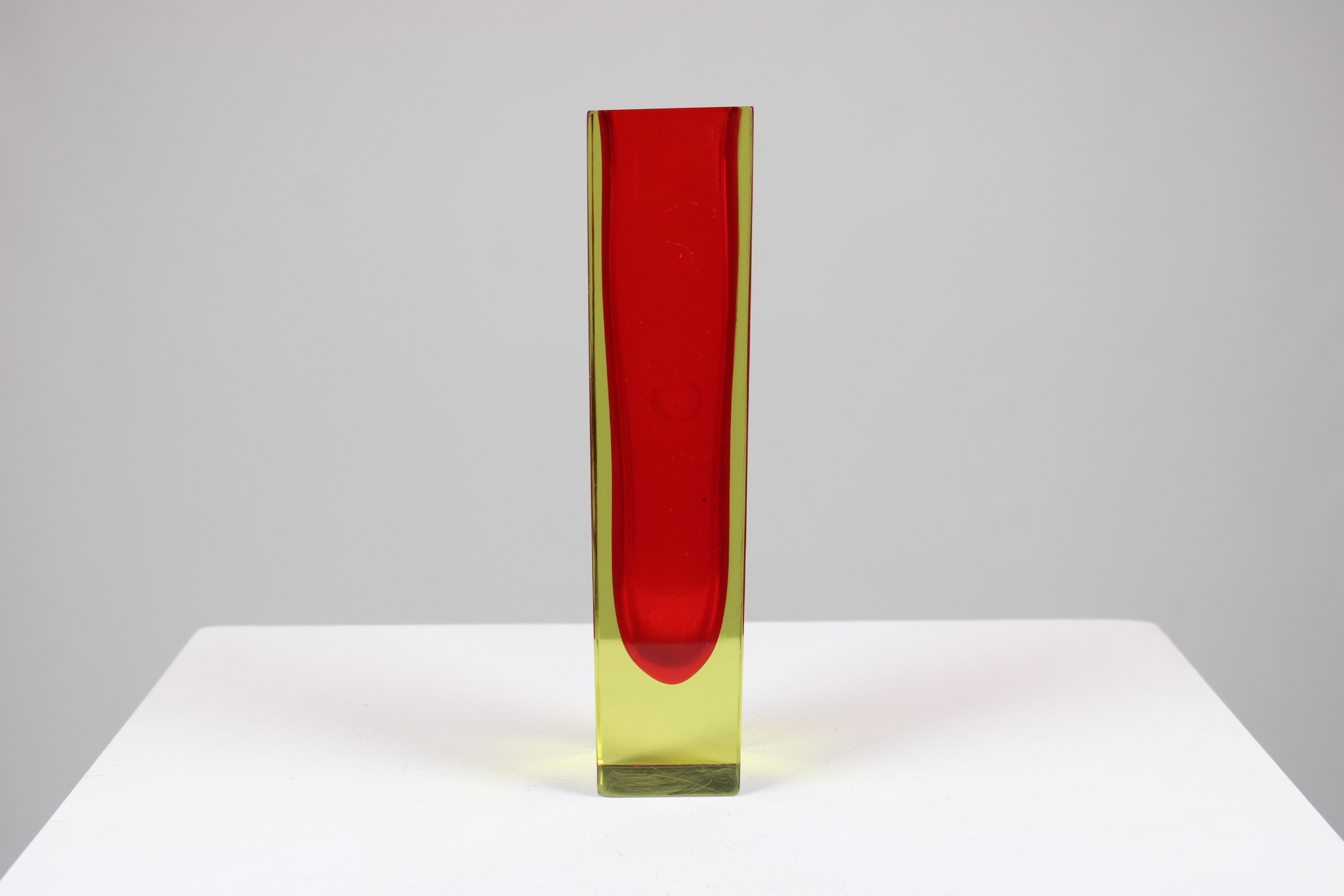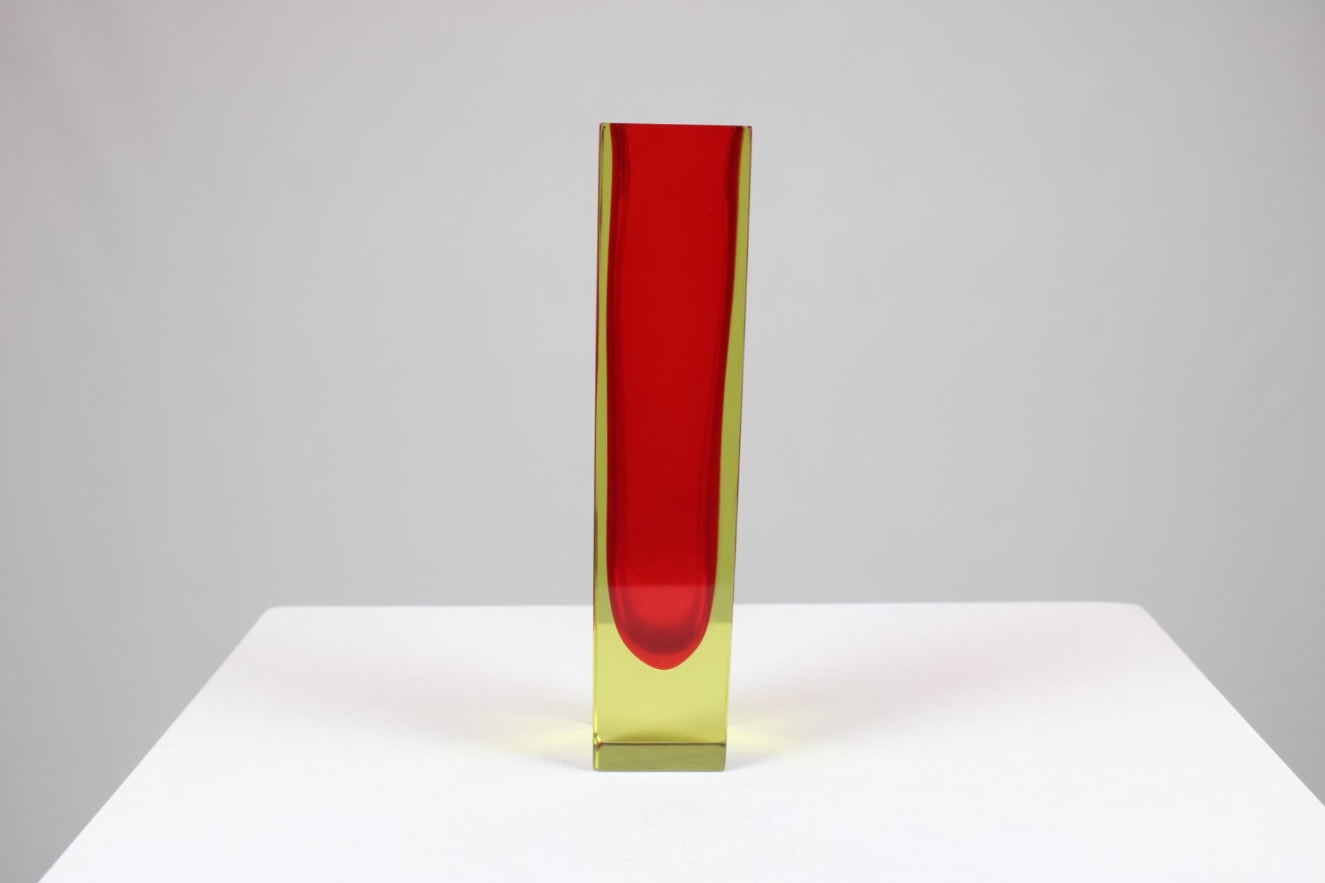 A vintage red-yellow vase by Cesare Toso. Murano, Venice. Probably 1970s. In good condition, some light scratches which are only barely visible.