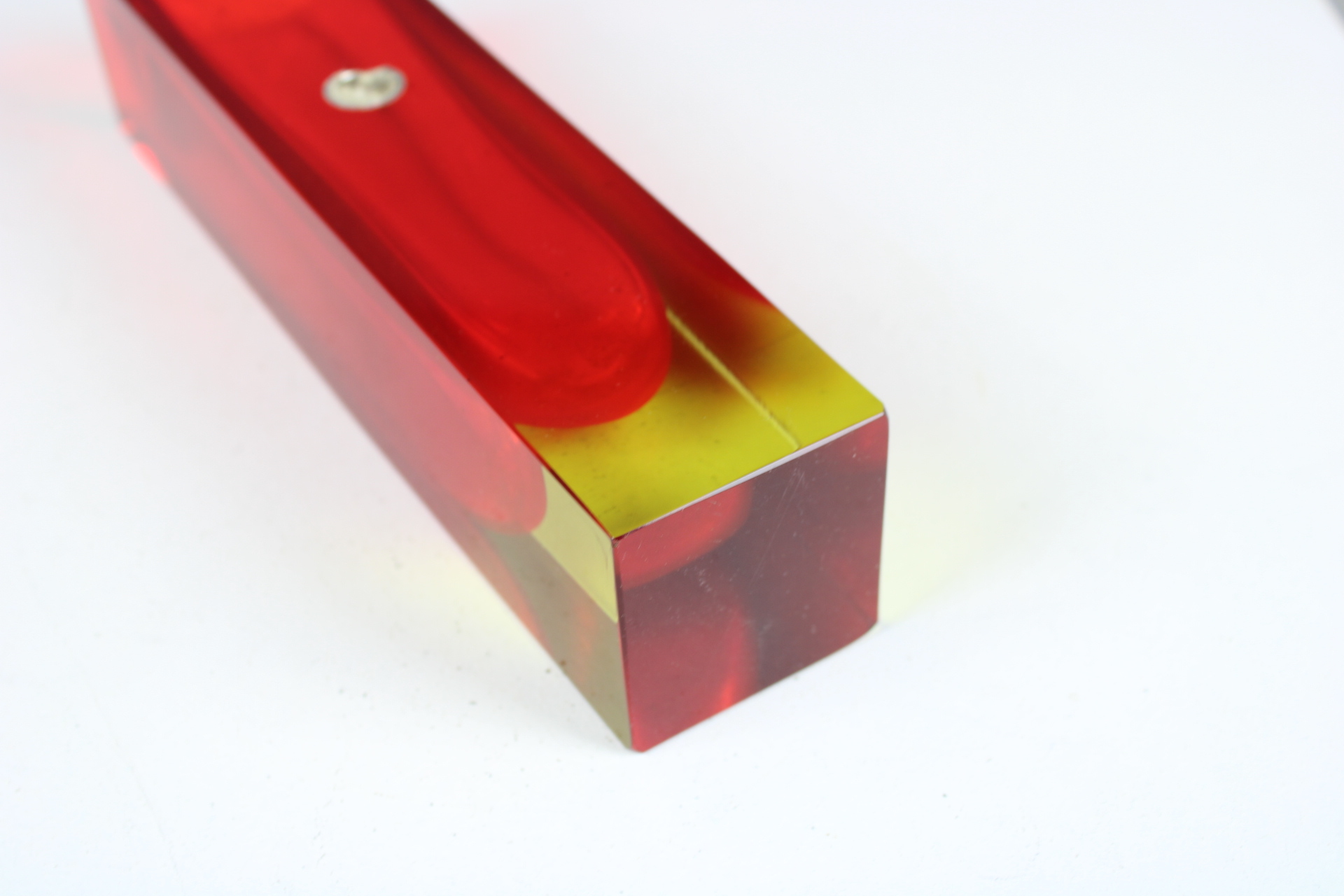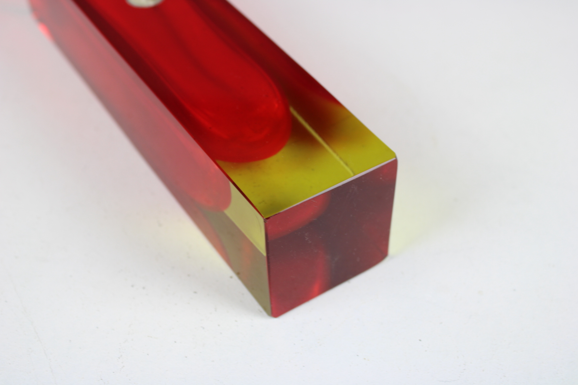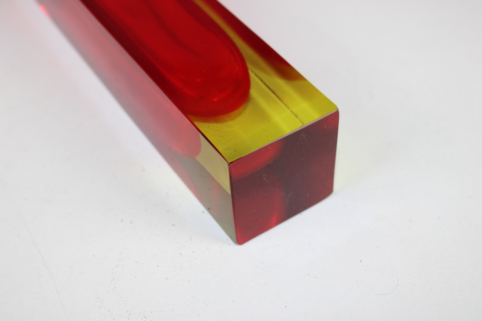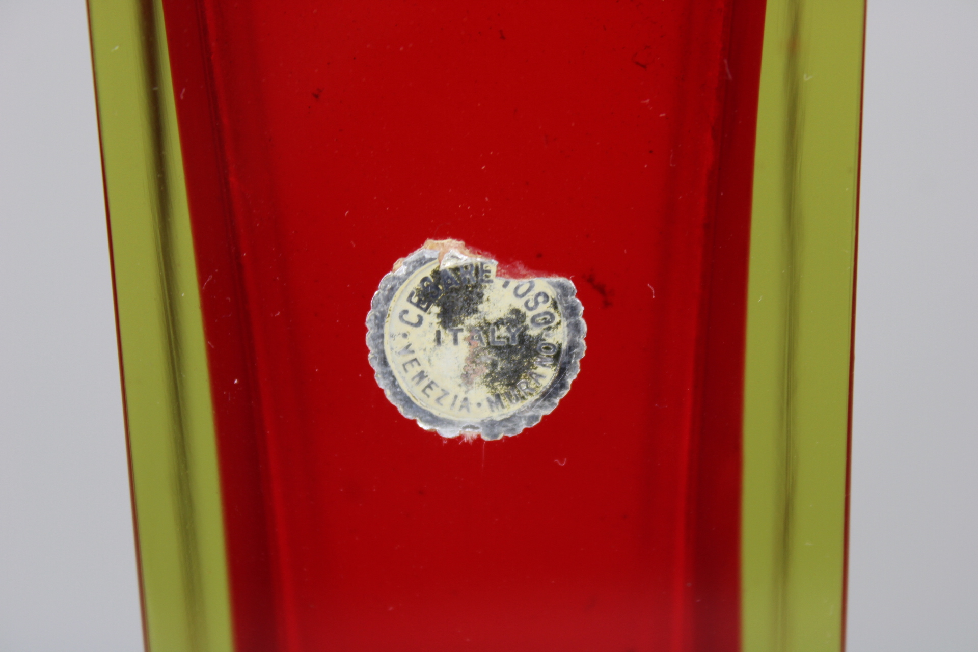 A vintage red-yellow vase by Cesare Toso. Murano, Venice. Probably 1970s. In good condition, some light scratches which are only barely visible.