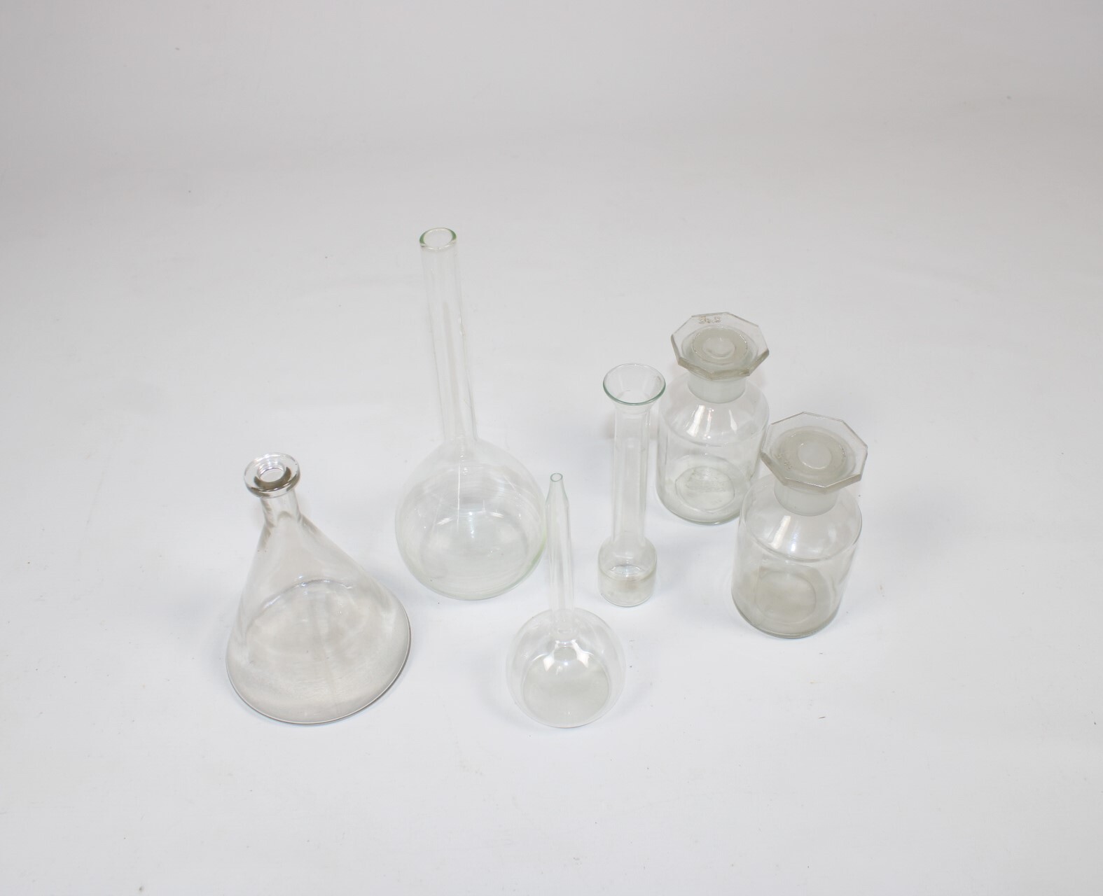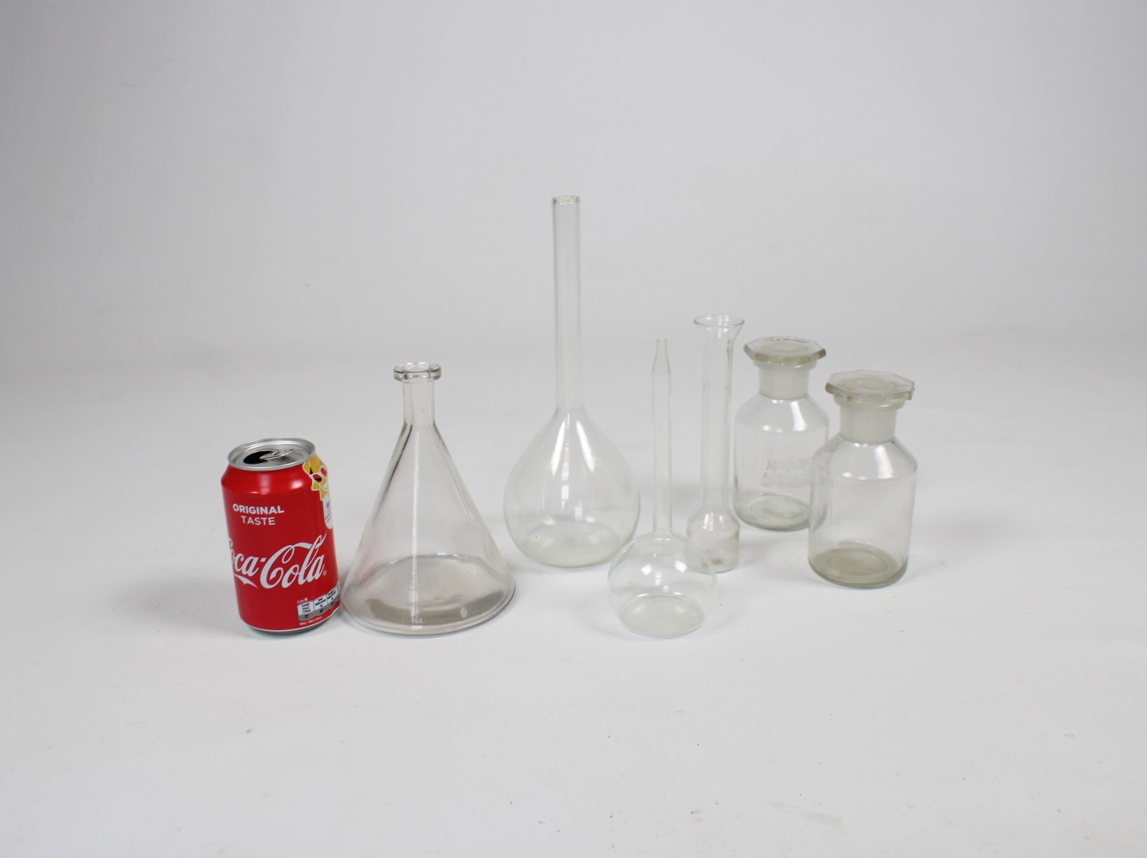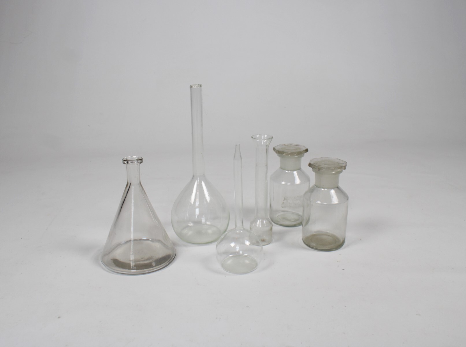 A set of 5 laboratory glassware items, including an Erlenmeyer flask and a volumetric flask.