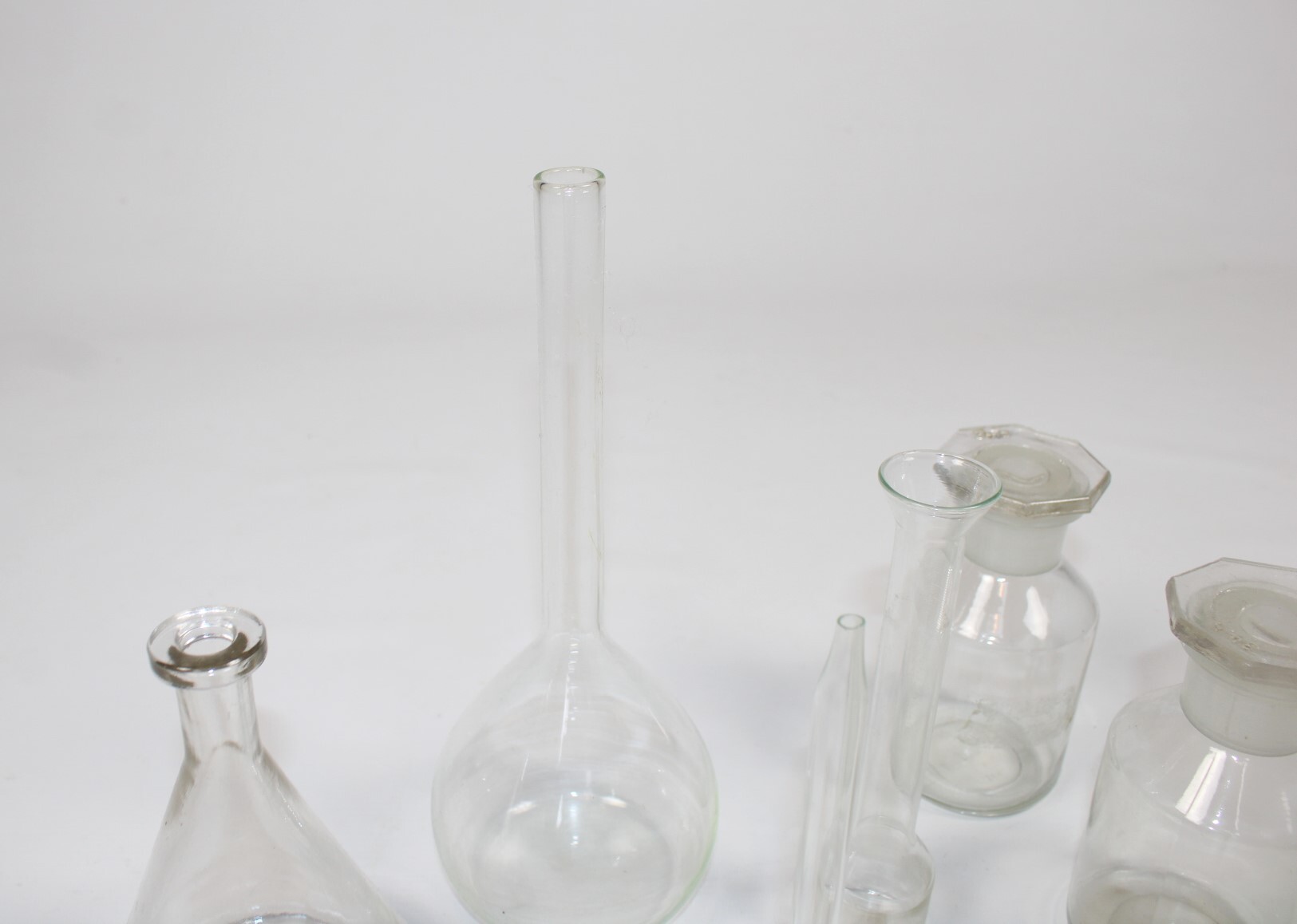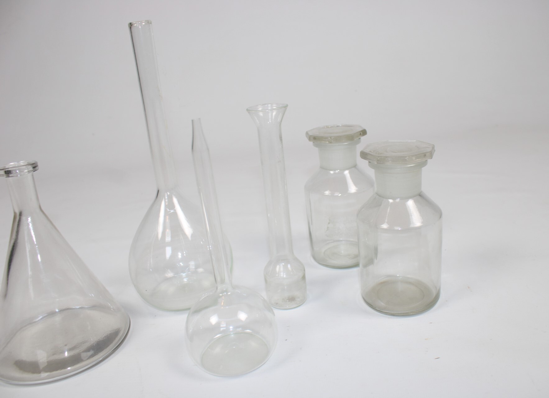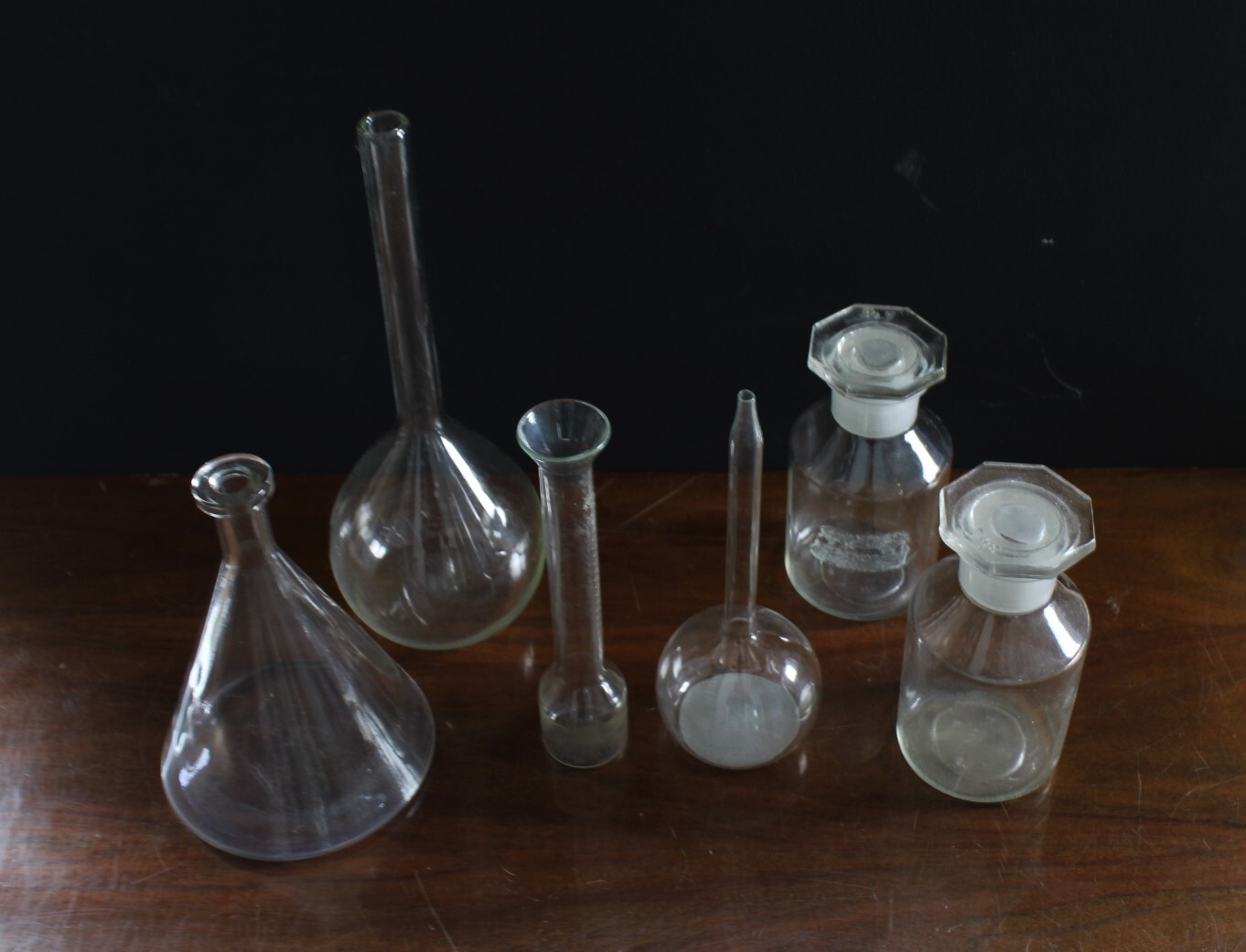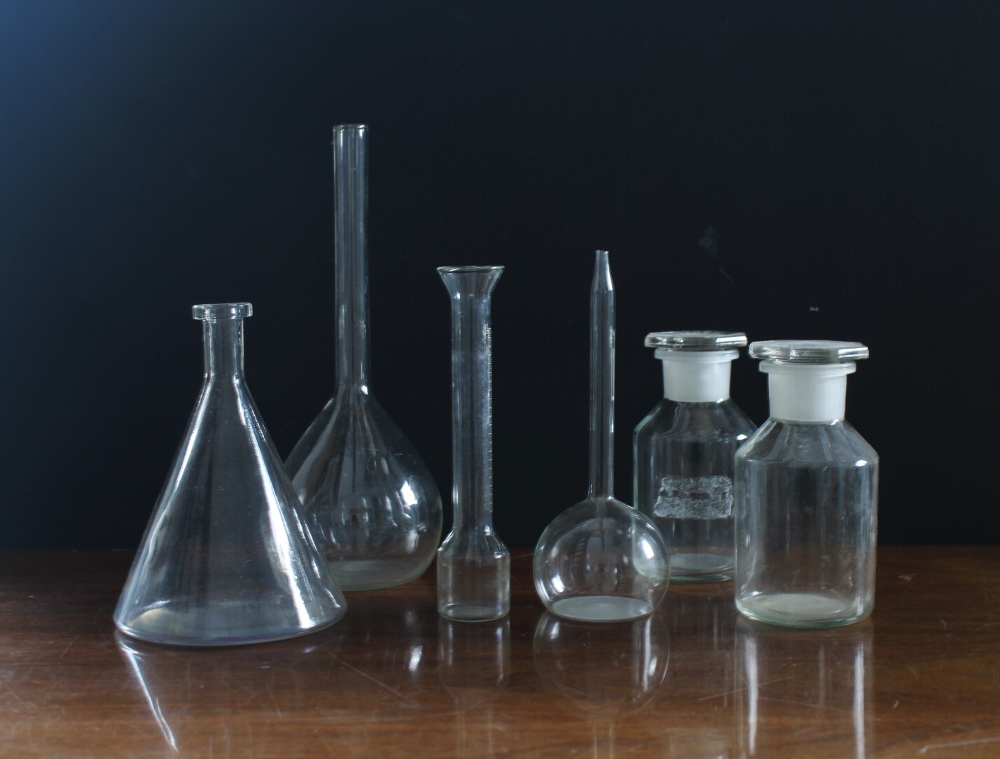 A set of 5 laboratory glassware items, including an Erlenmeyer flask and a volumetric flask.