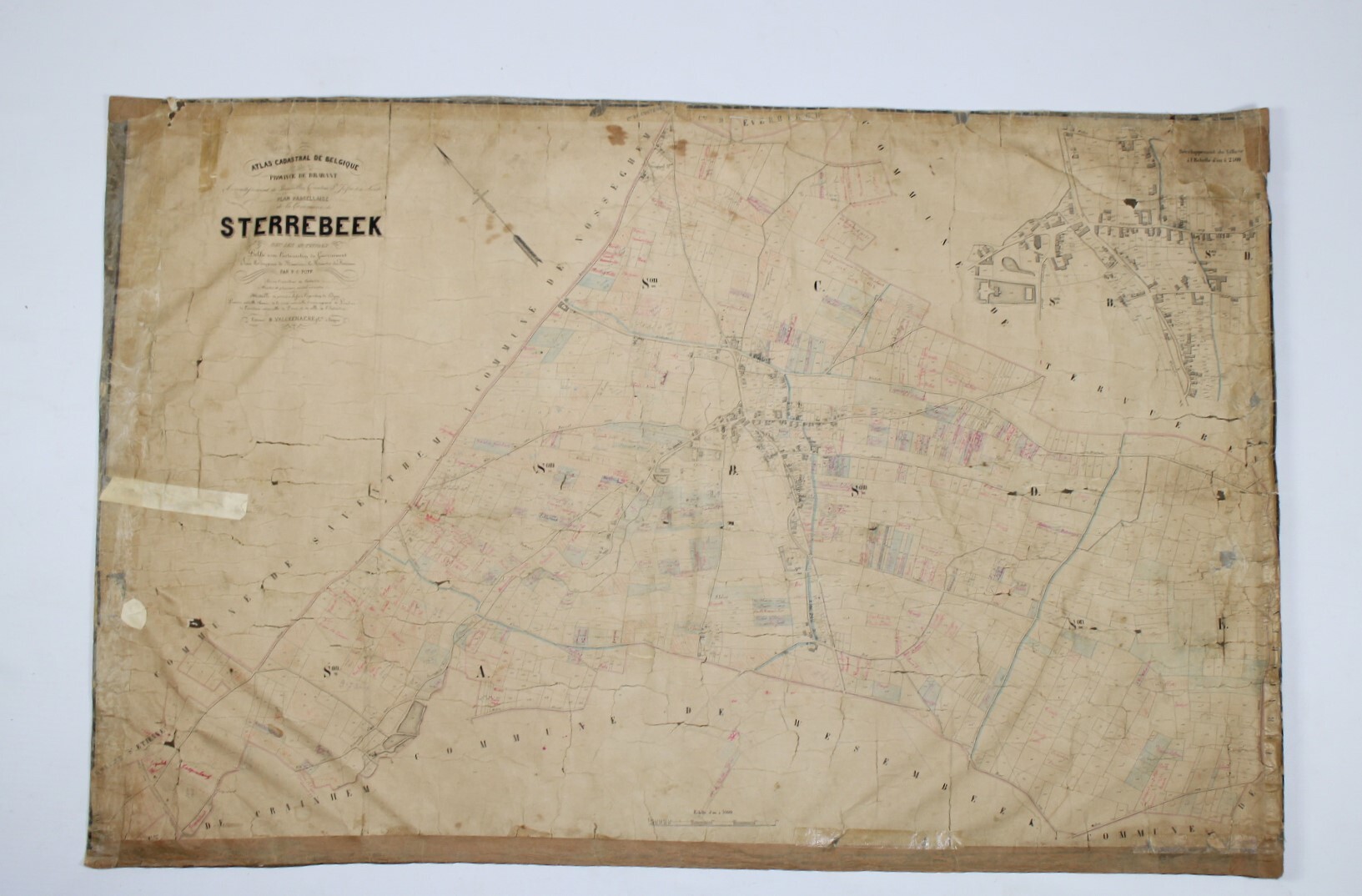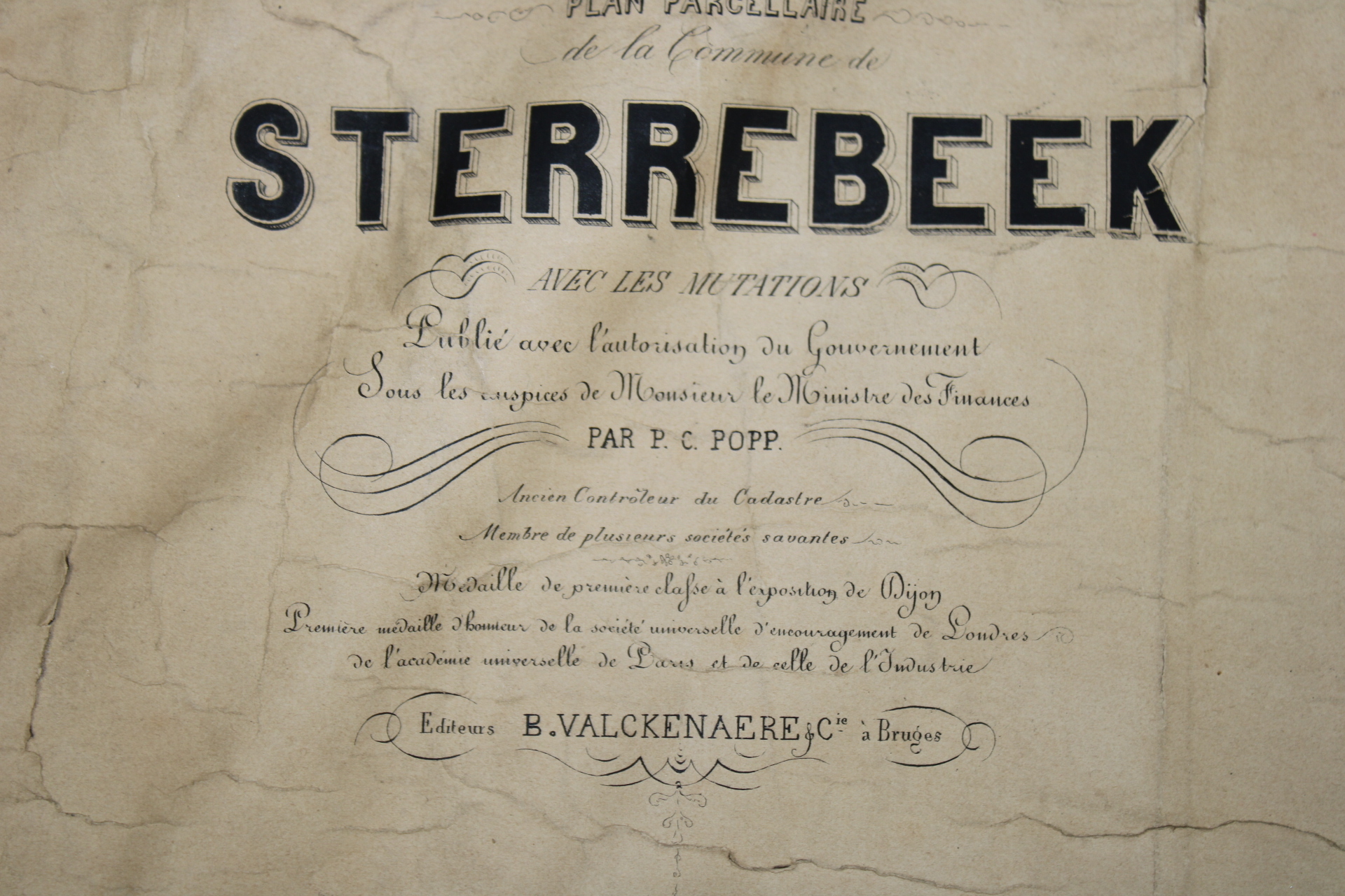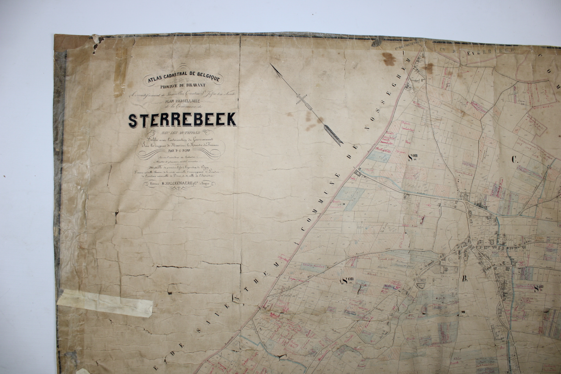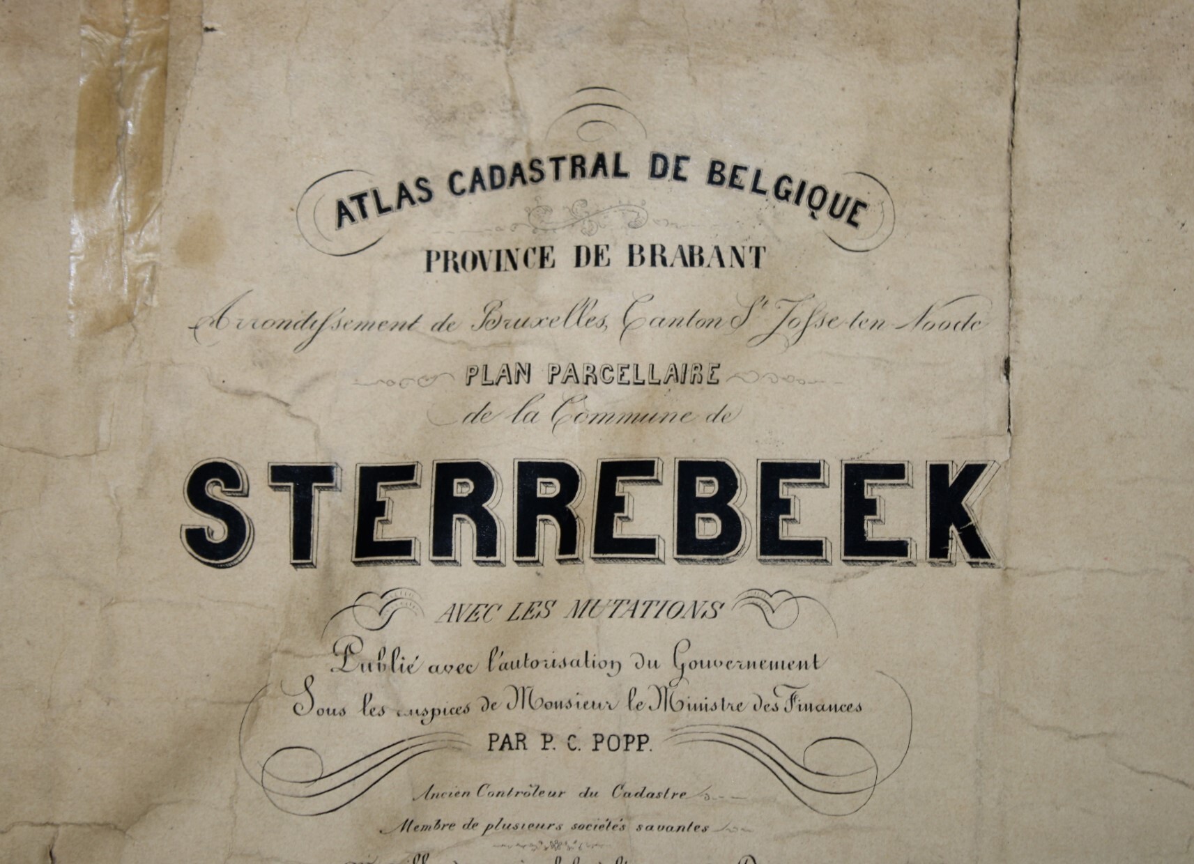Old map by P.C. Popp of Sterrebeek. These maps were used by notaries and surveyors and were among the first cadastral maps. They offer highly detailed depictions of plots and houses, including a detail of the village center.