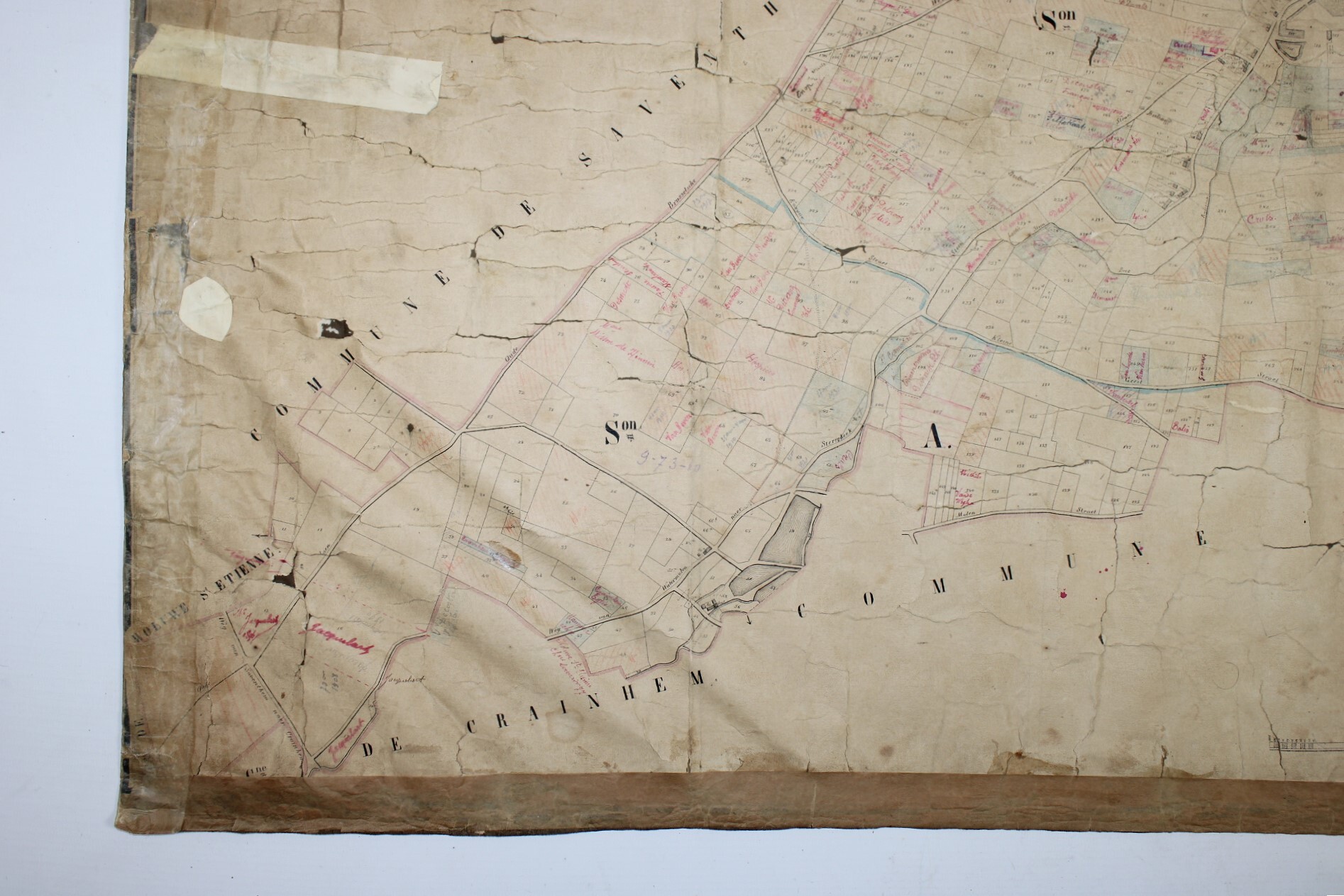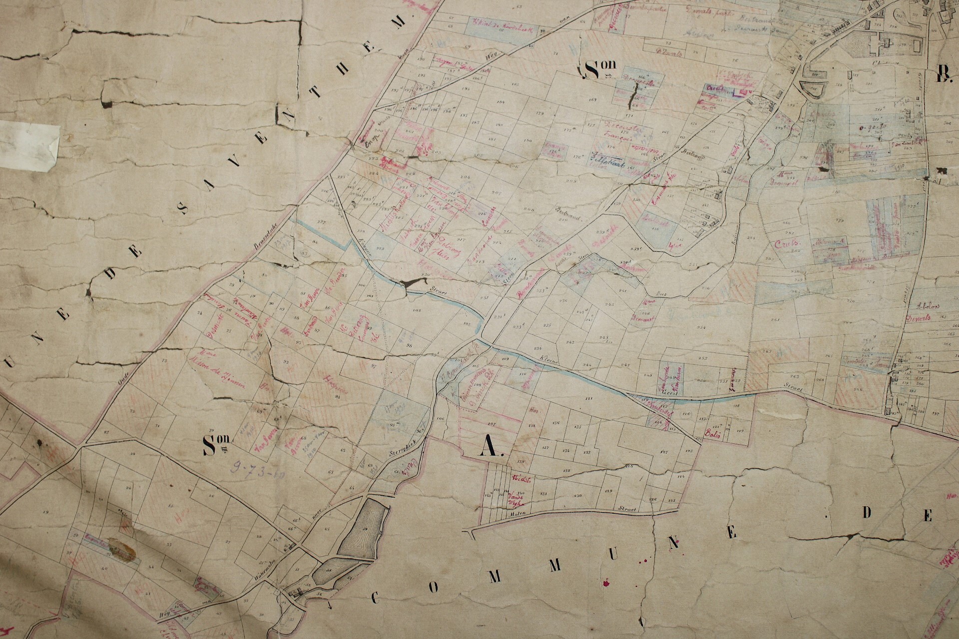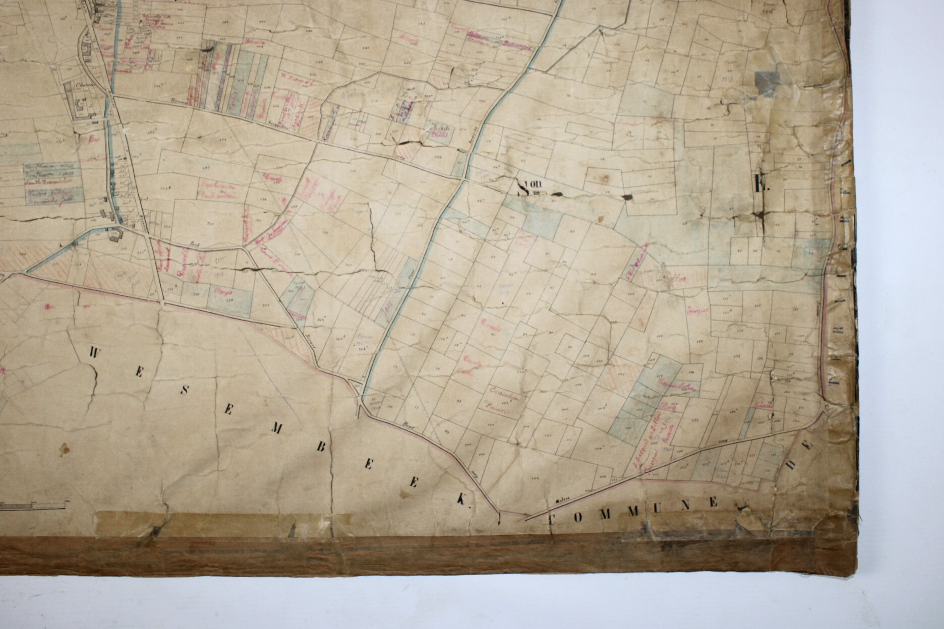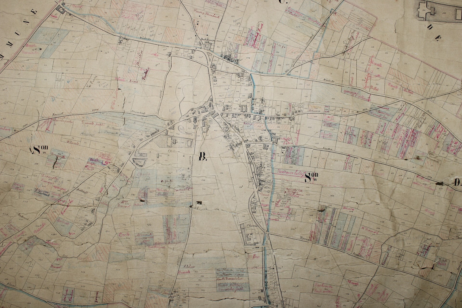 Old map by P.C. Popp of Sterrebeek. These maps were used by notaries and surveyors and were among the first cadastral maps. They offer highly detailed depictions of plots and houses, including a detail of the village center.