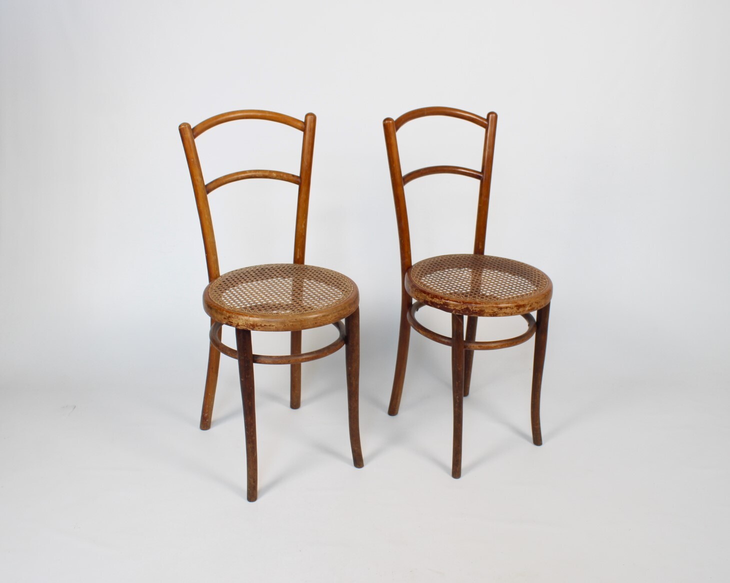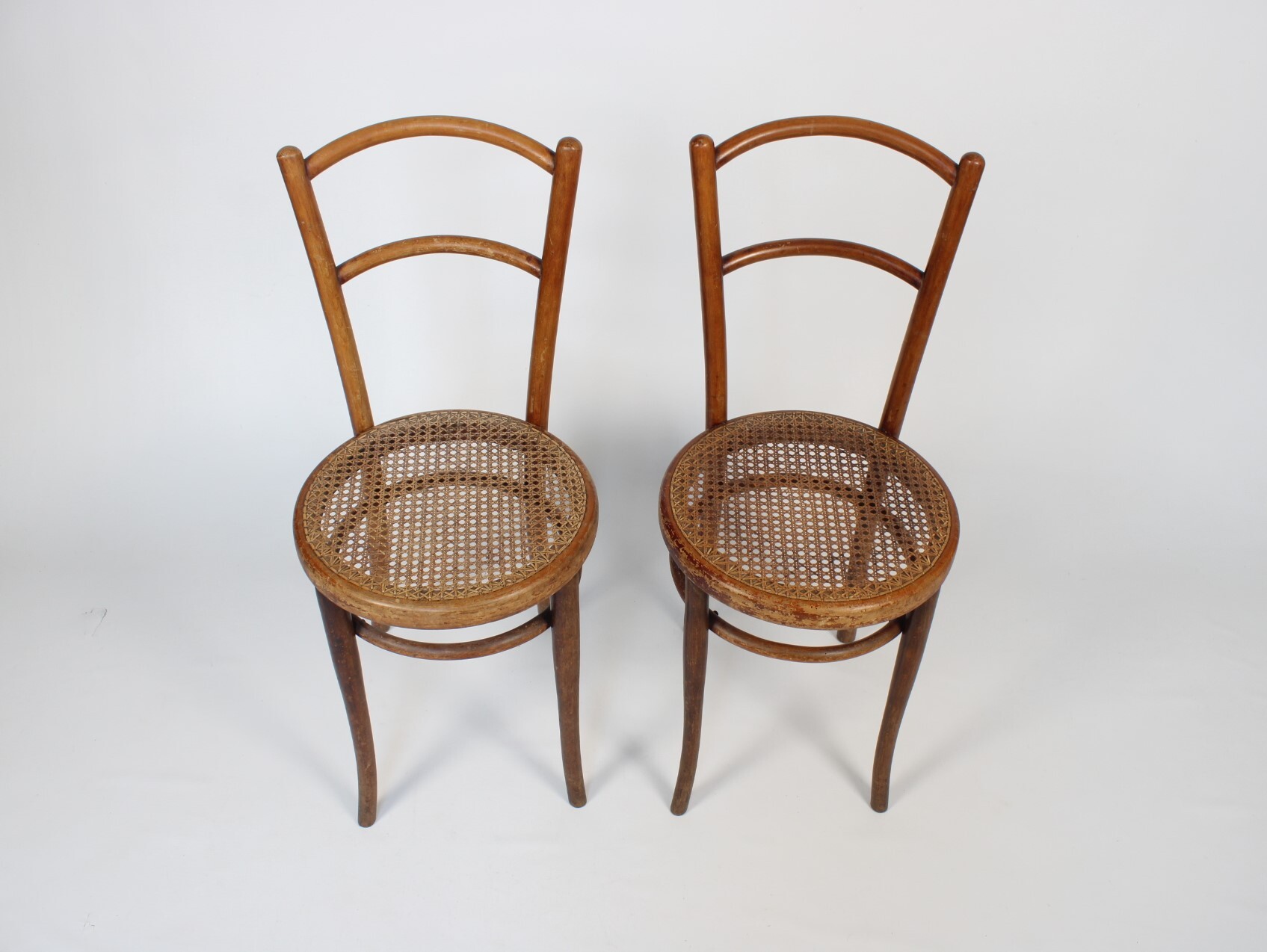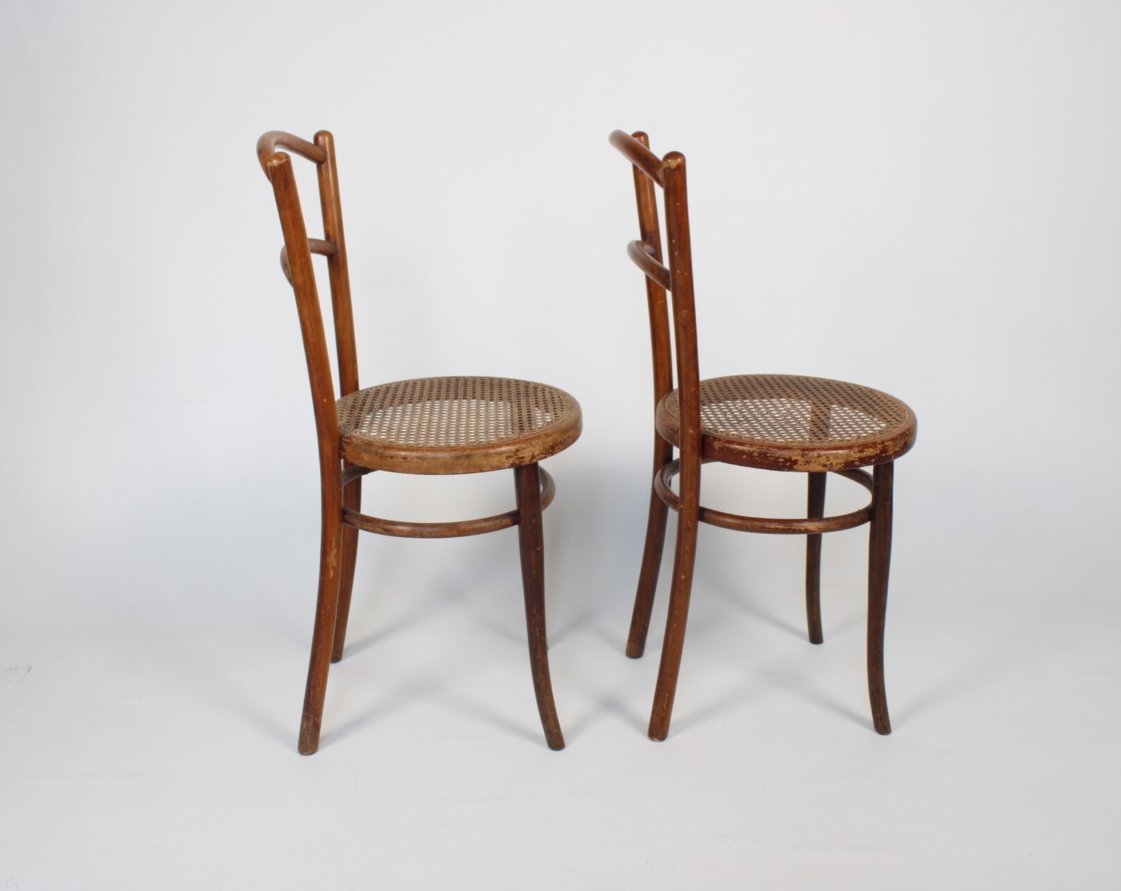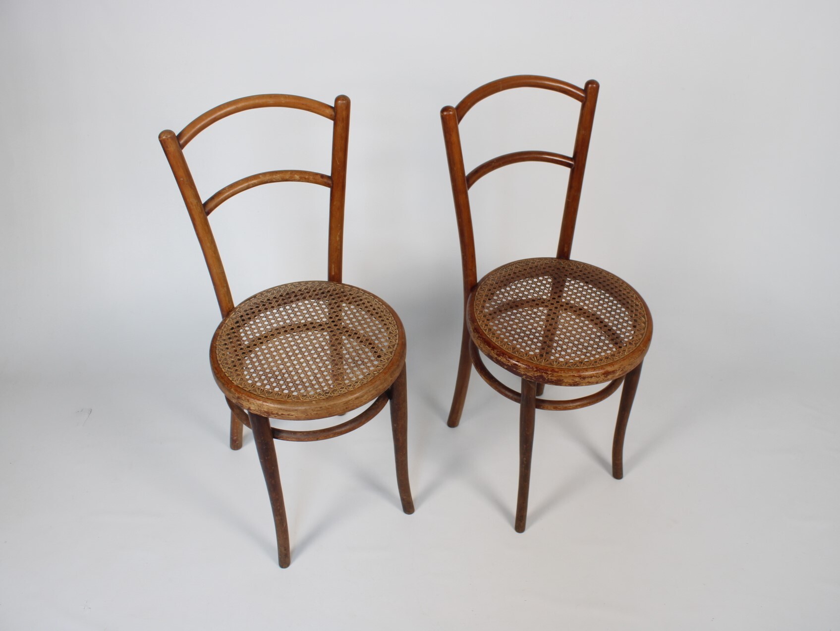 Een set van 2 originele stoelen in bentwood van J&J Kohn met rieten zitting.