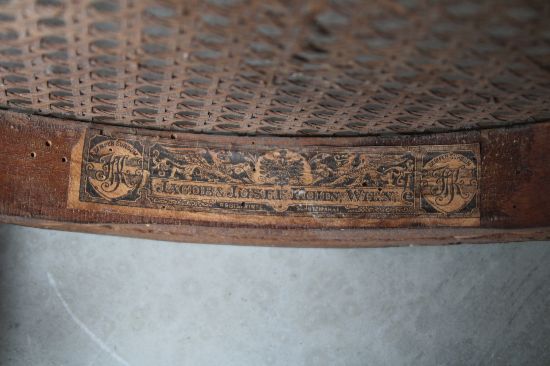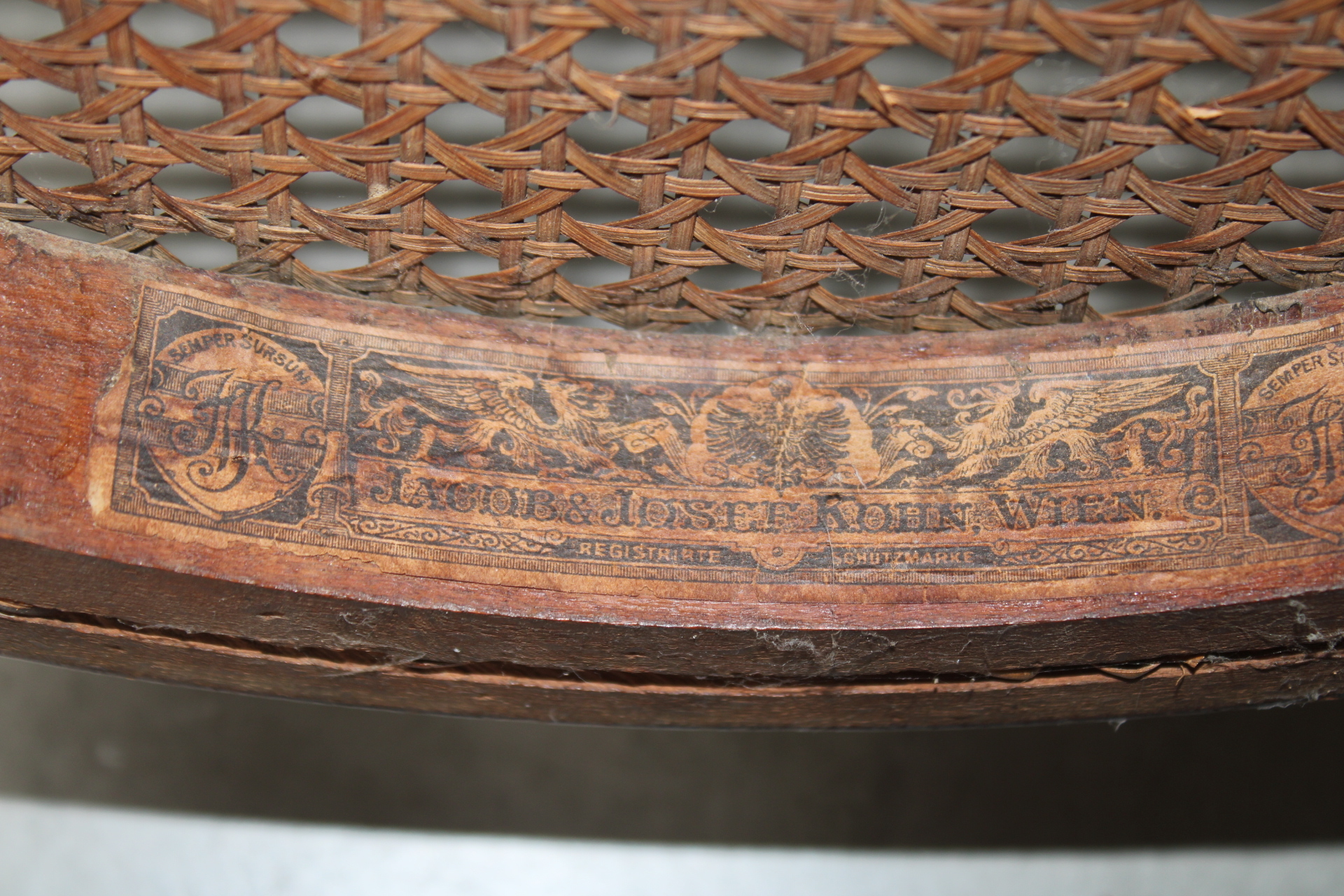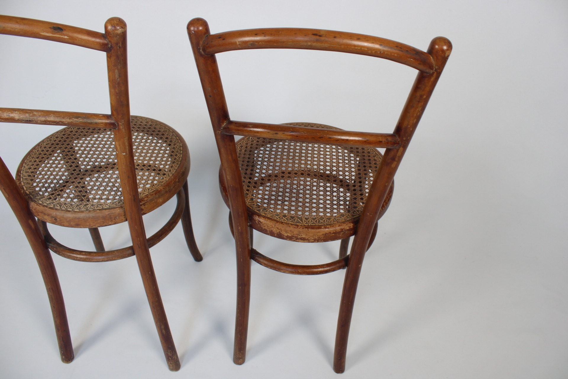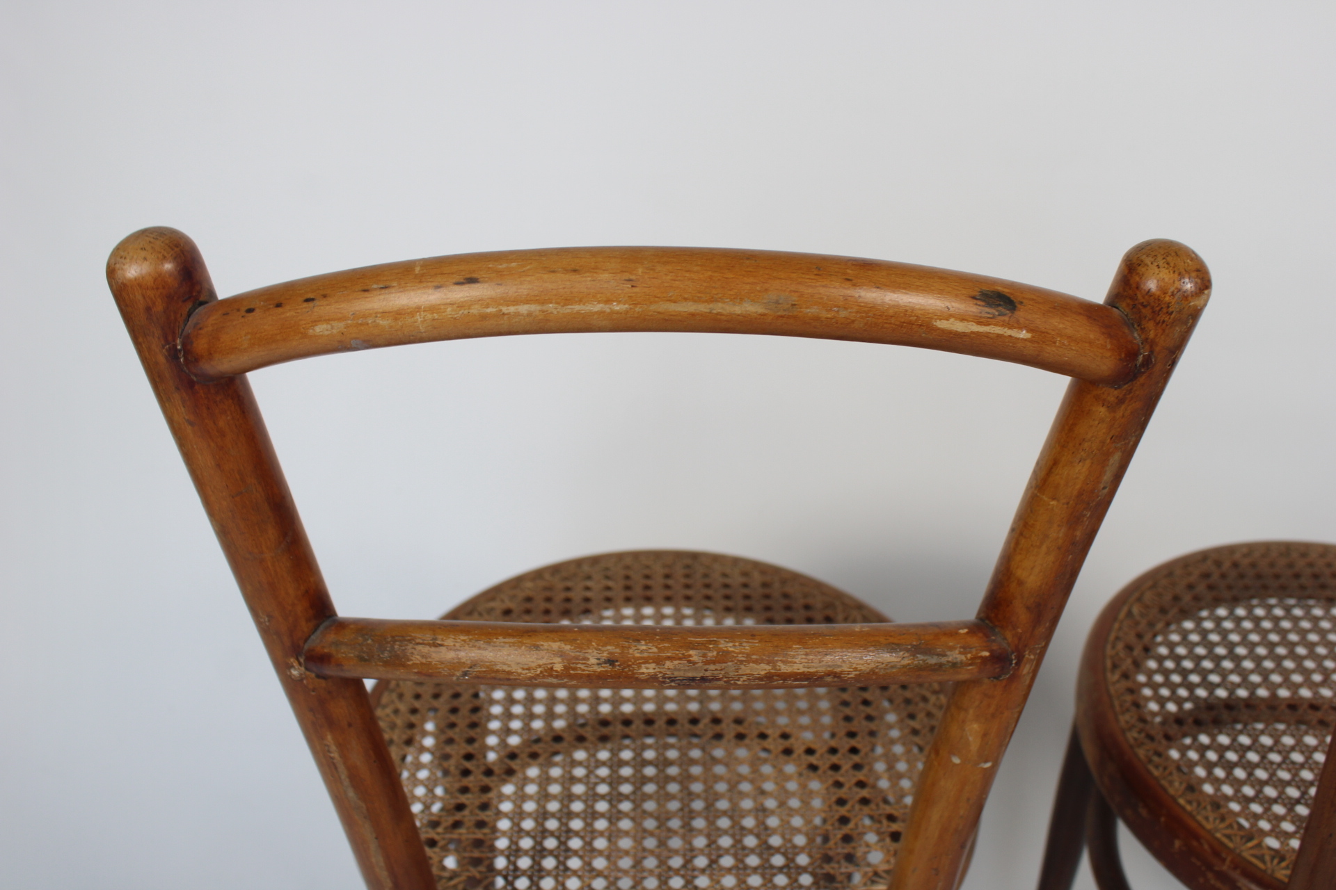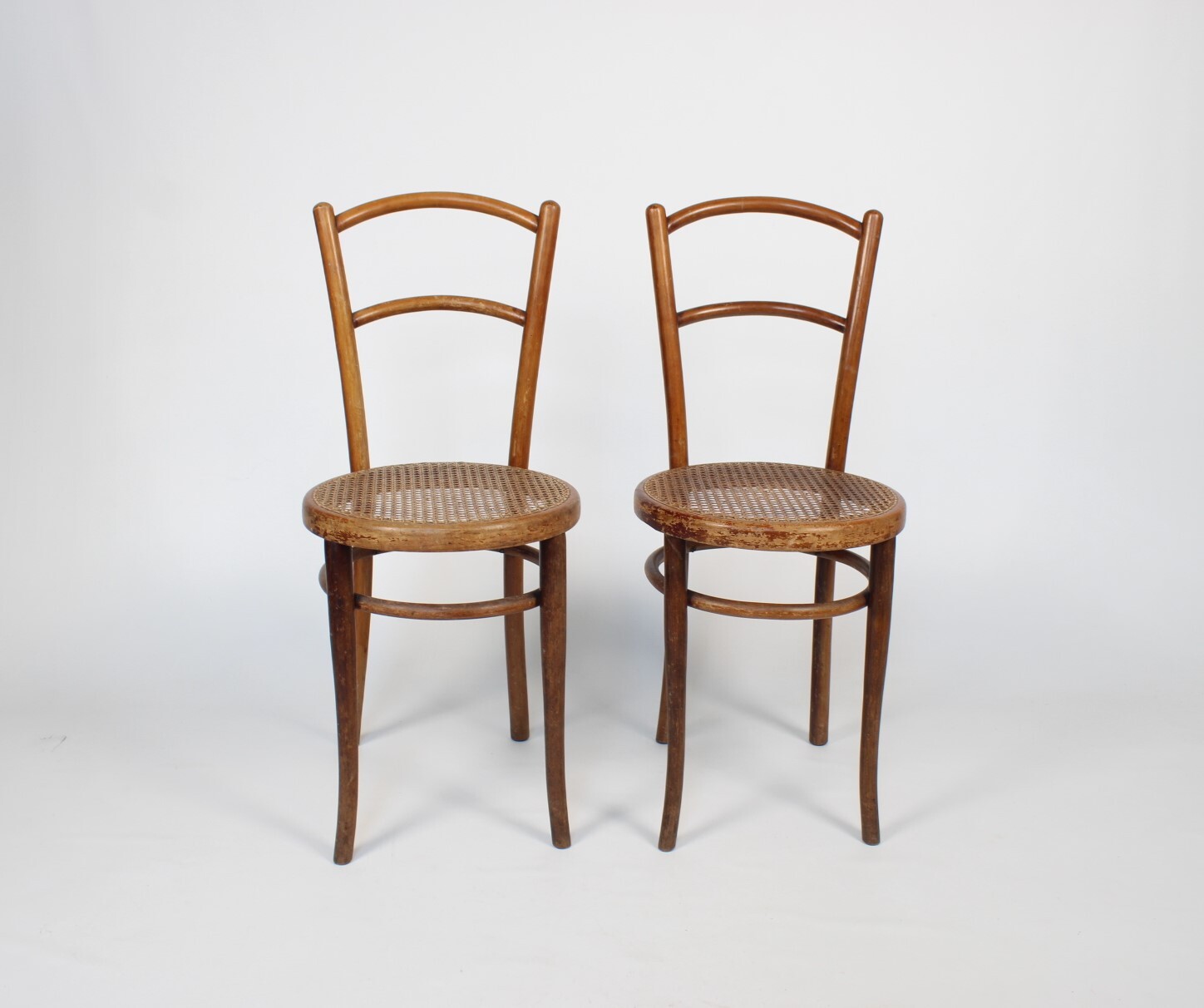 Een set van 2 originele stoelen in bentwood van J&J Kohn met rieten zitting.