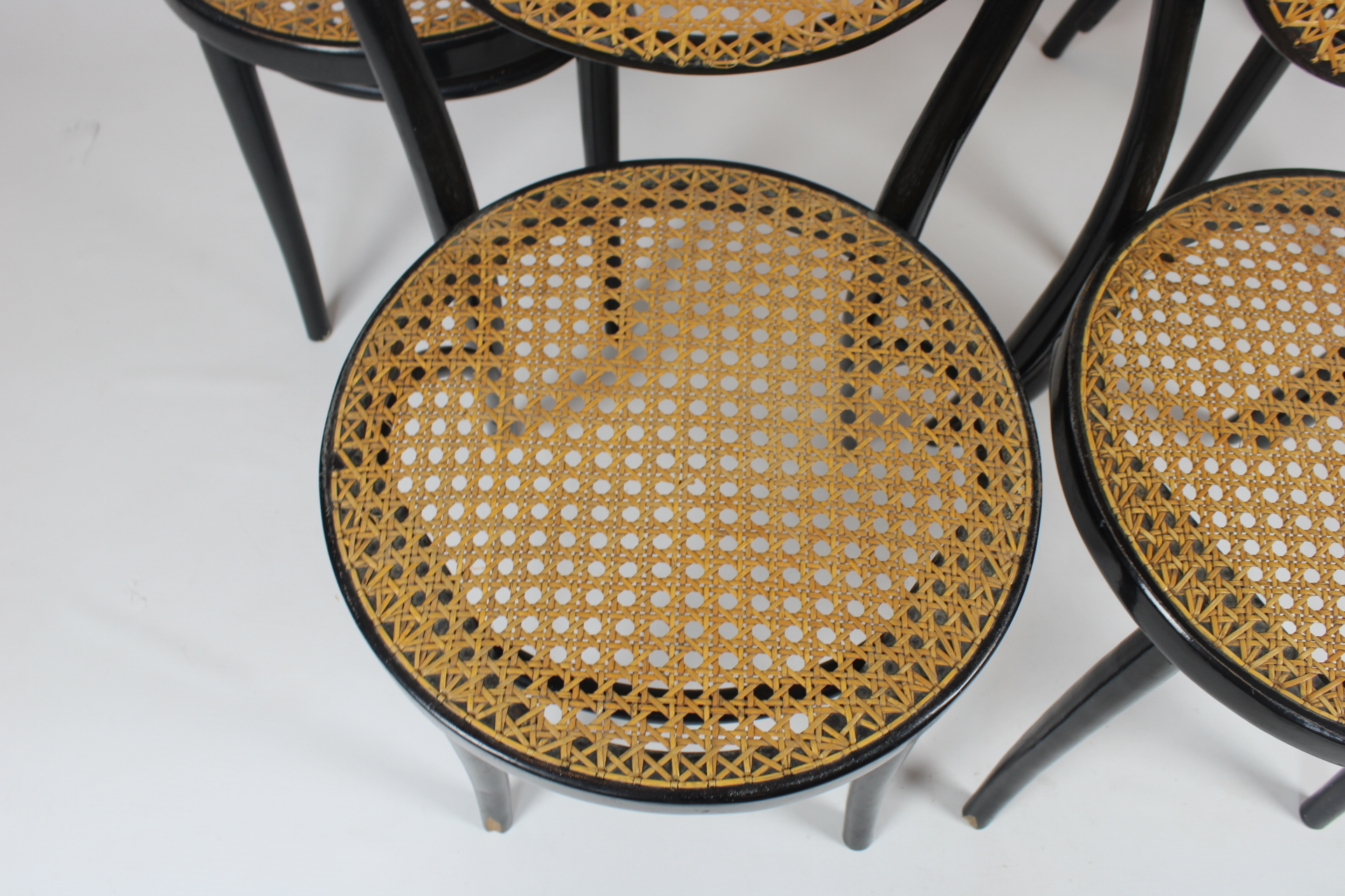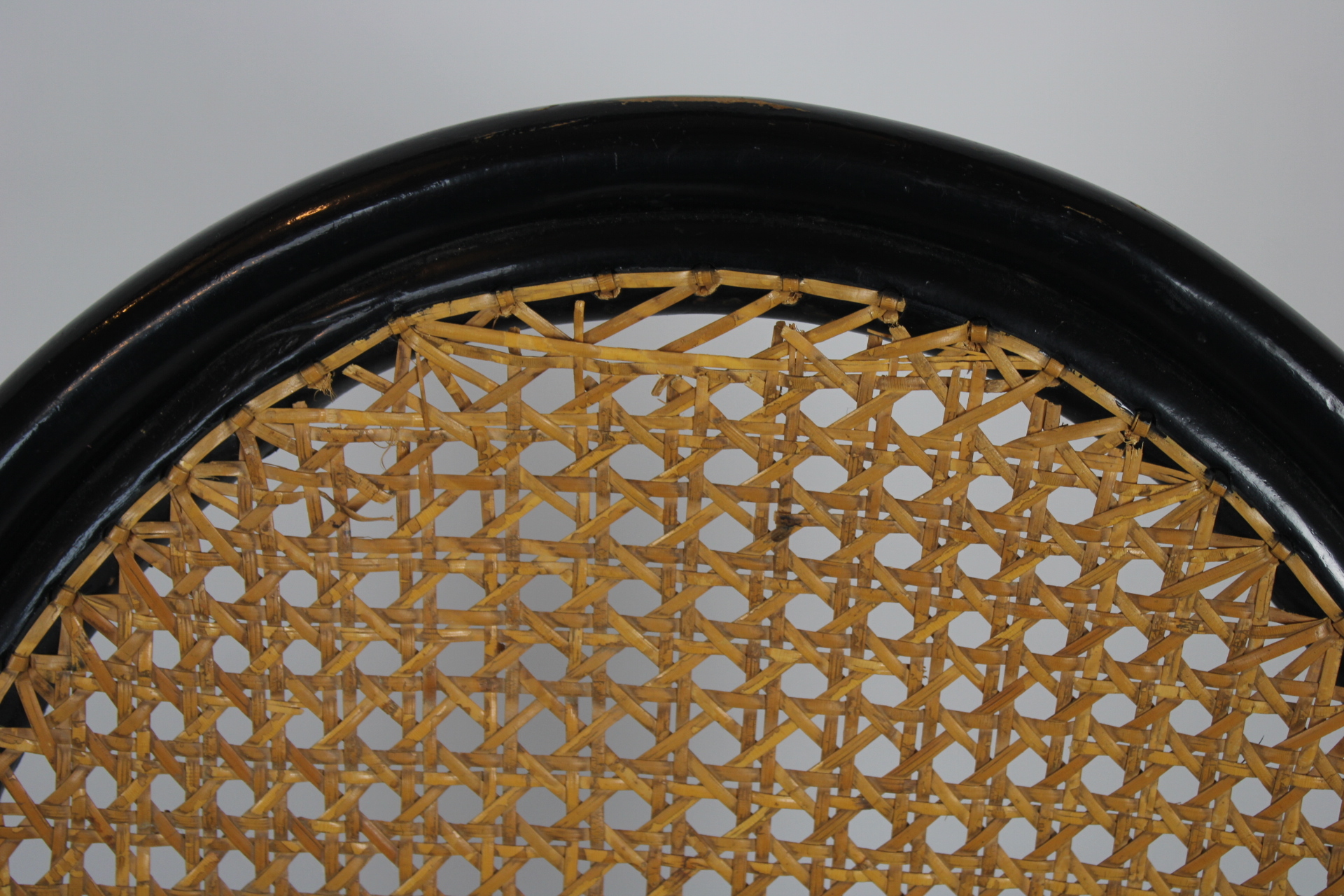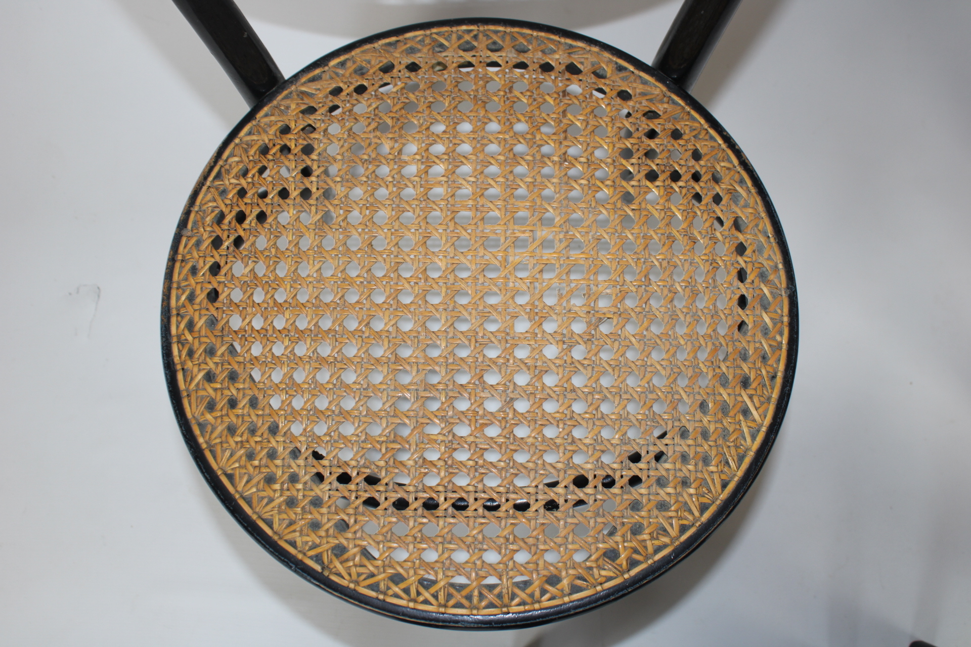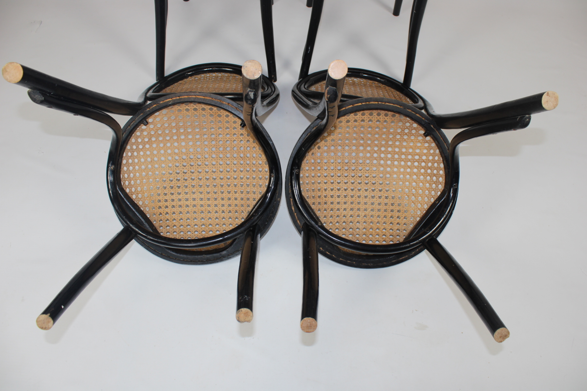 Een set van 4 zwarte stoelen in bentwood met rieten zitting in de stijl van Thonet of Kohn. Niet gemarkeerd.