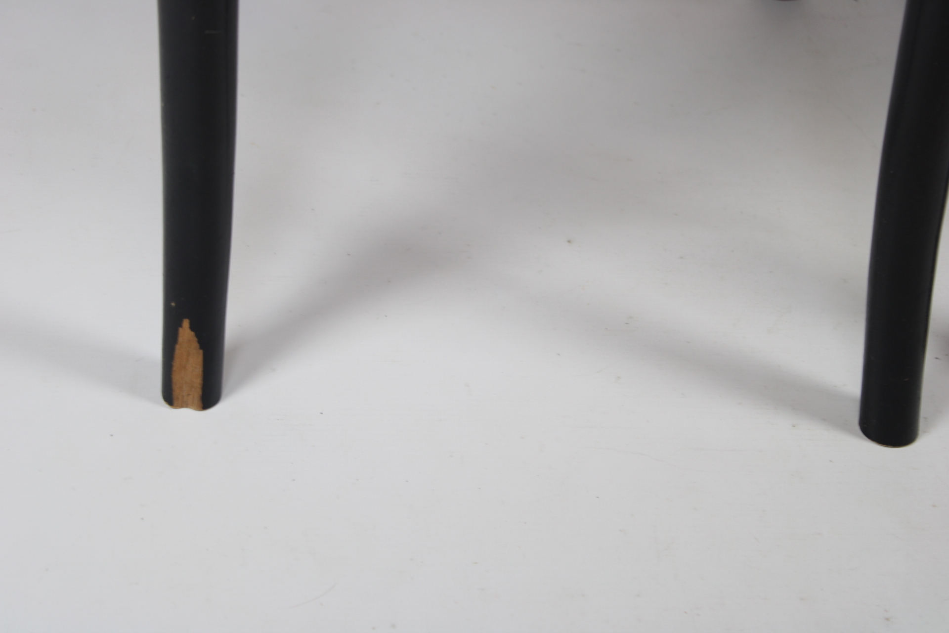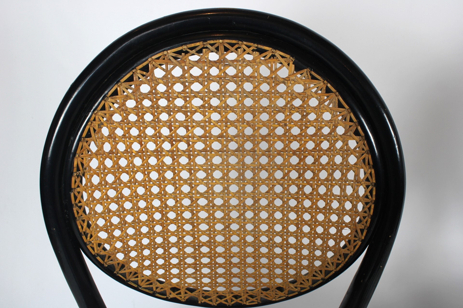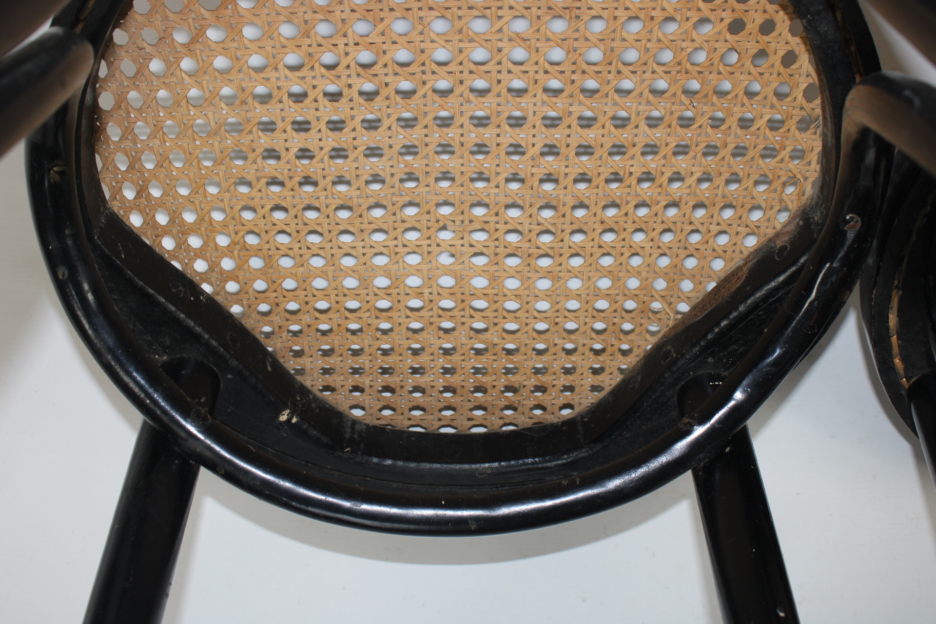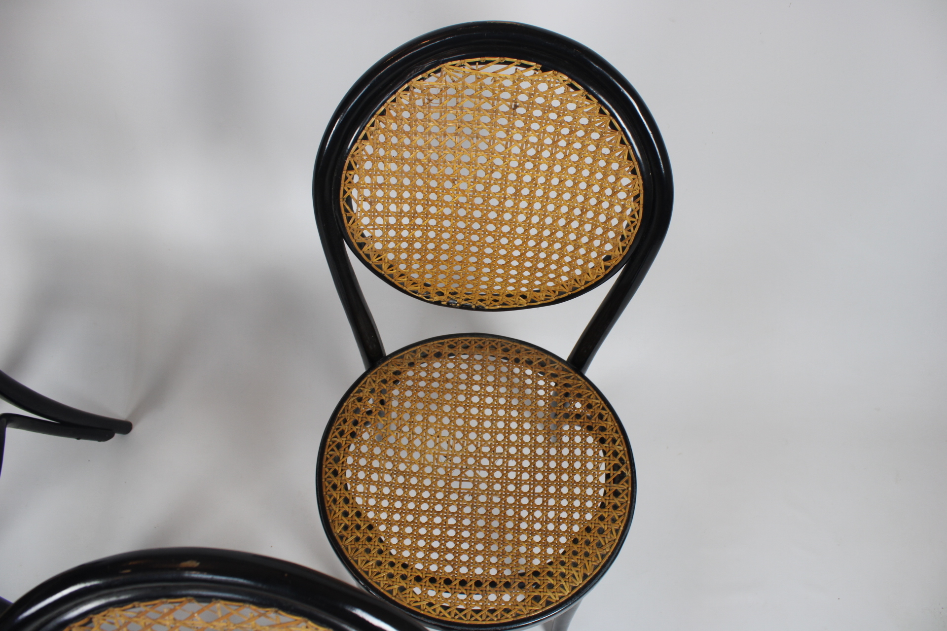 Een set van 4 zwarte stoelen in bentwood met rieten zitting in de stijl van Thonet of Kohn. Niet gemarkeerd.