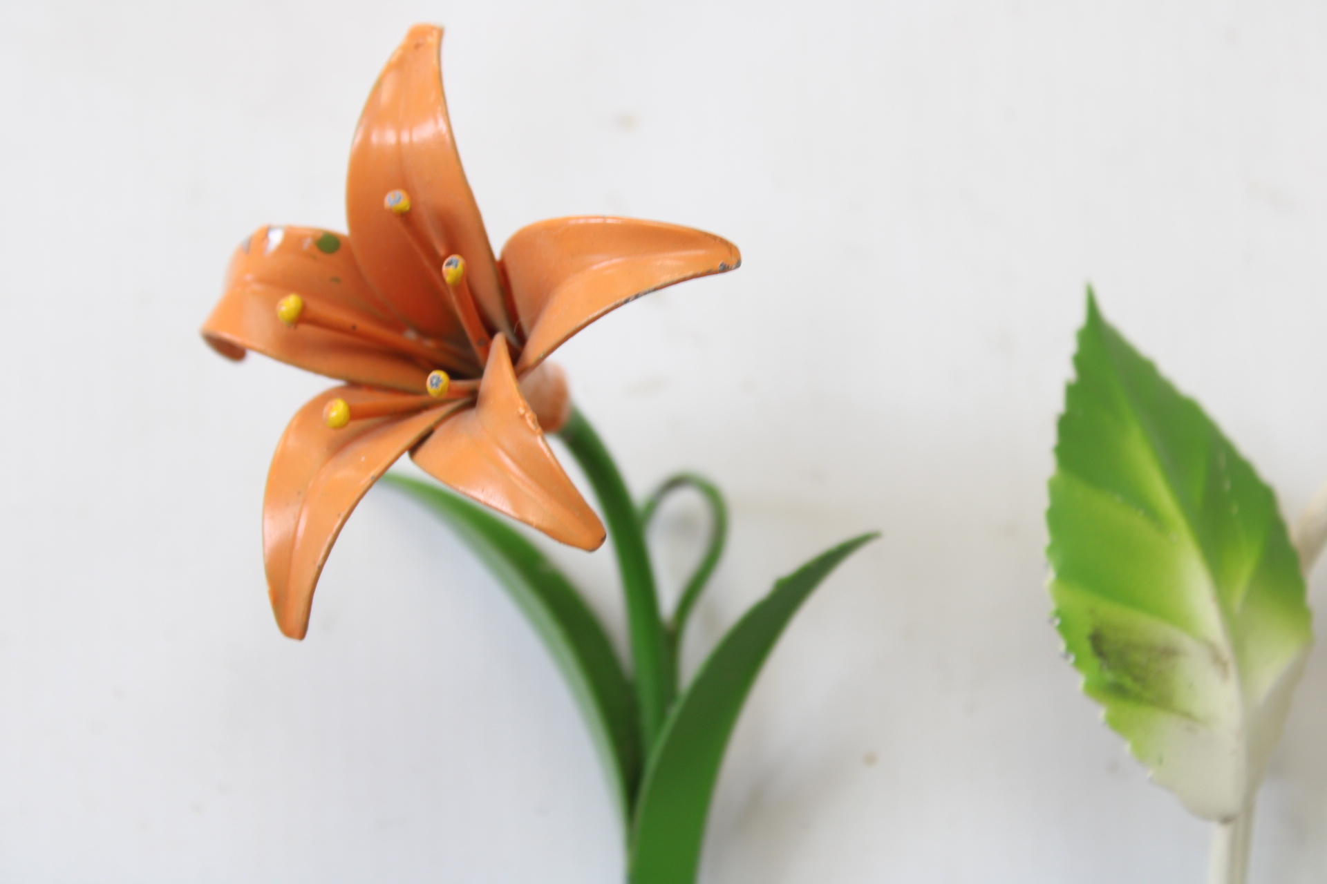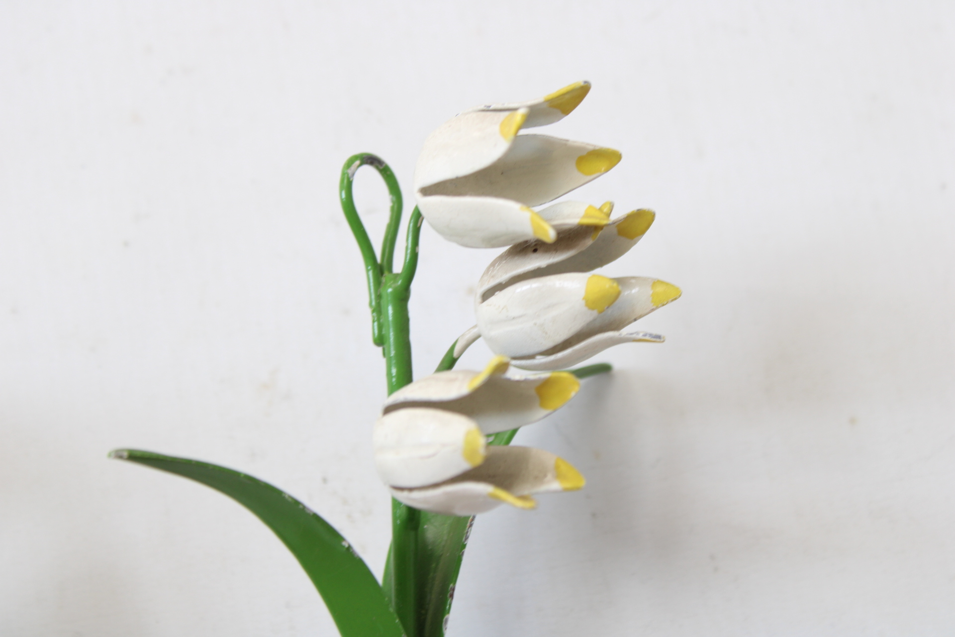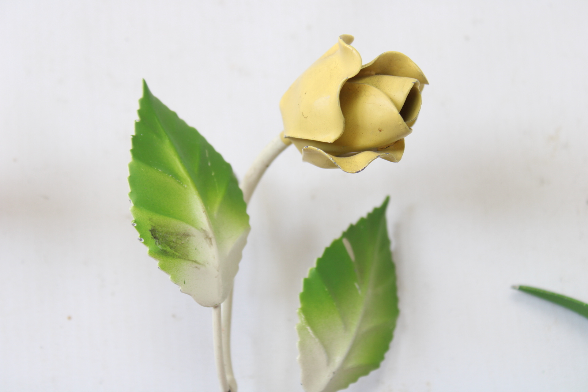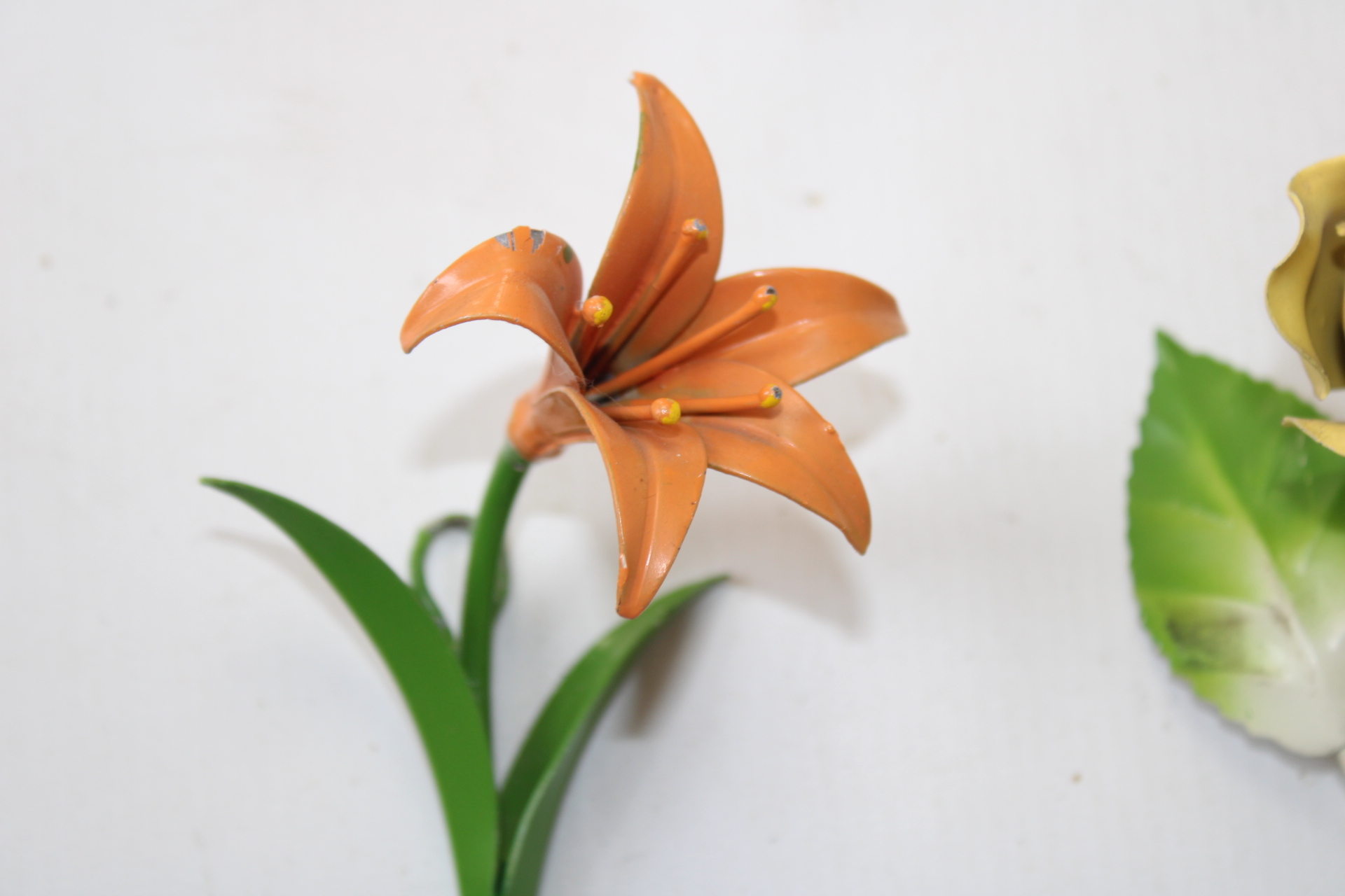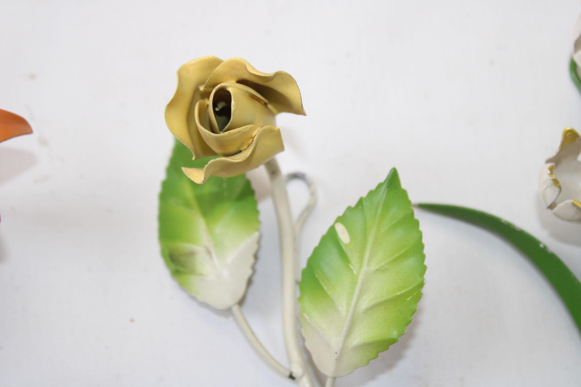 Een set van 3 sympathieke vintage bloemen-kapstokhaken. Beschilderd metaal. In goede staat.