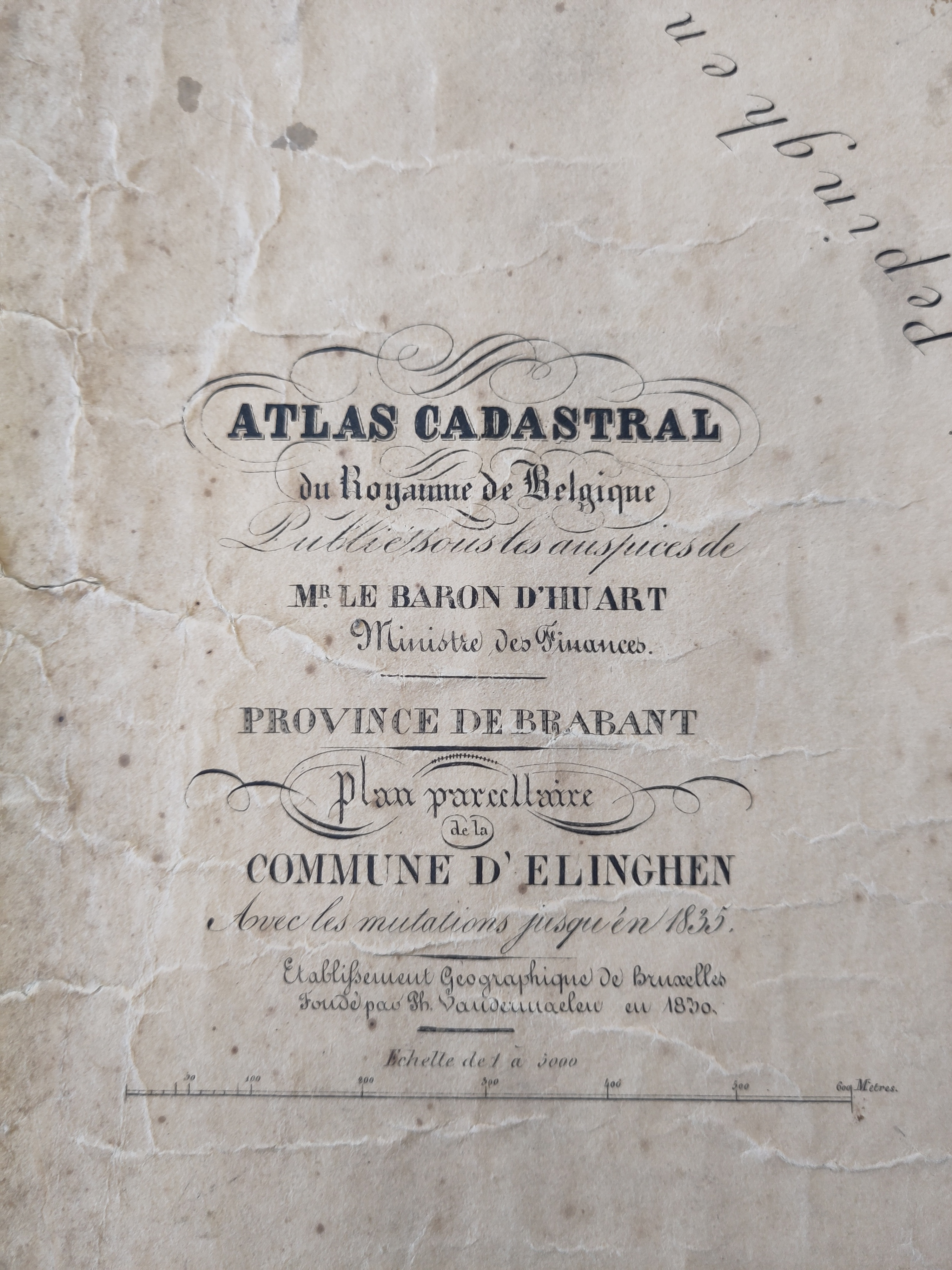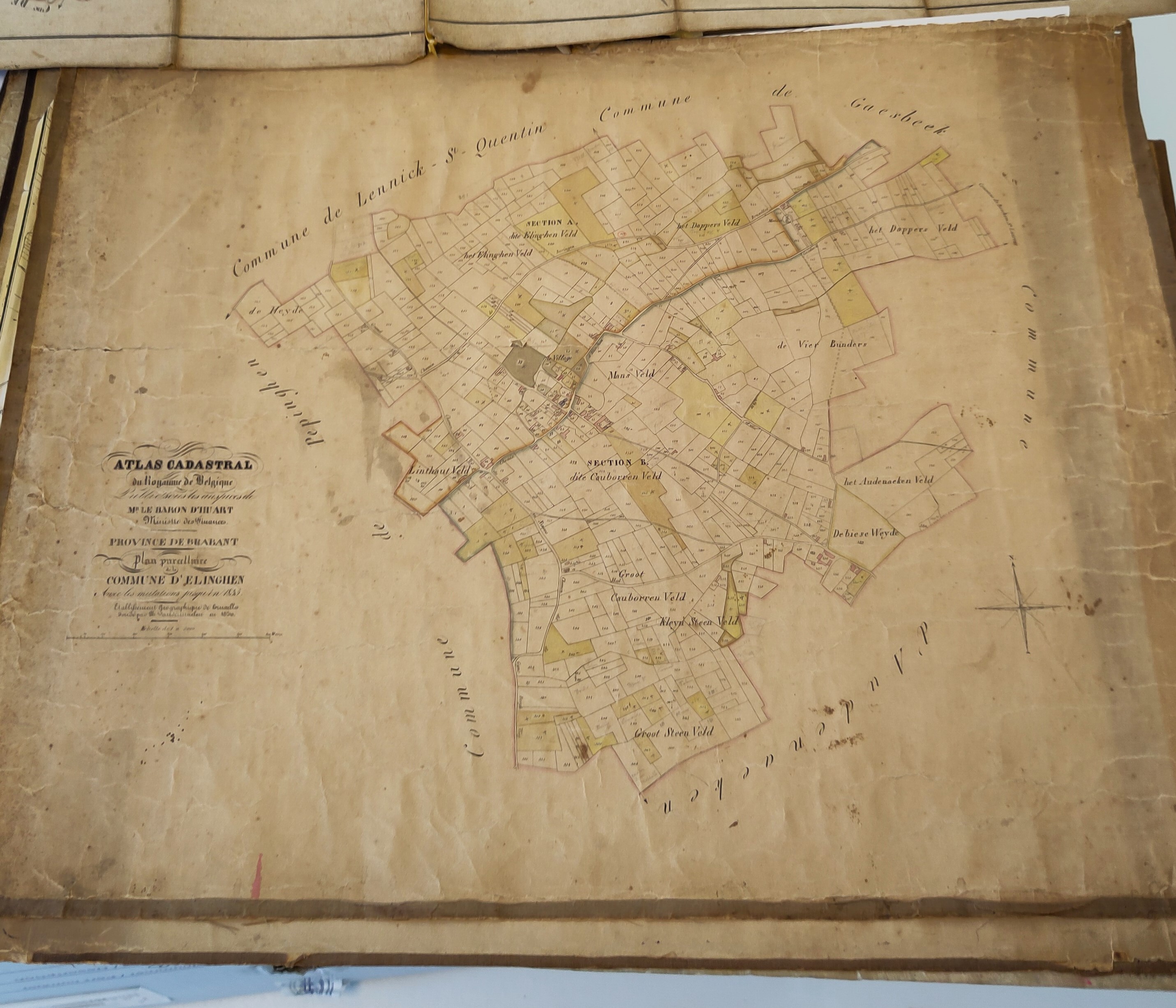 Een grote originele kadasterkaart van 'Elinghen' of Elingen die door cartograaf Philippe Vandermaelen werd opgemaakt en als "Carte topographique de la Belgique" werd uitgegeven tussen 1846 en 1854. Op deze kaart staat: "Avec les mutations jusqu'à 1835". Schaal: