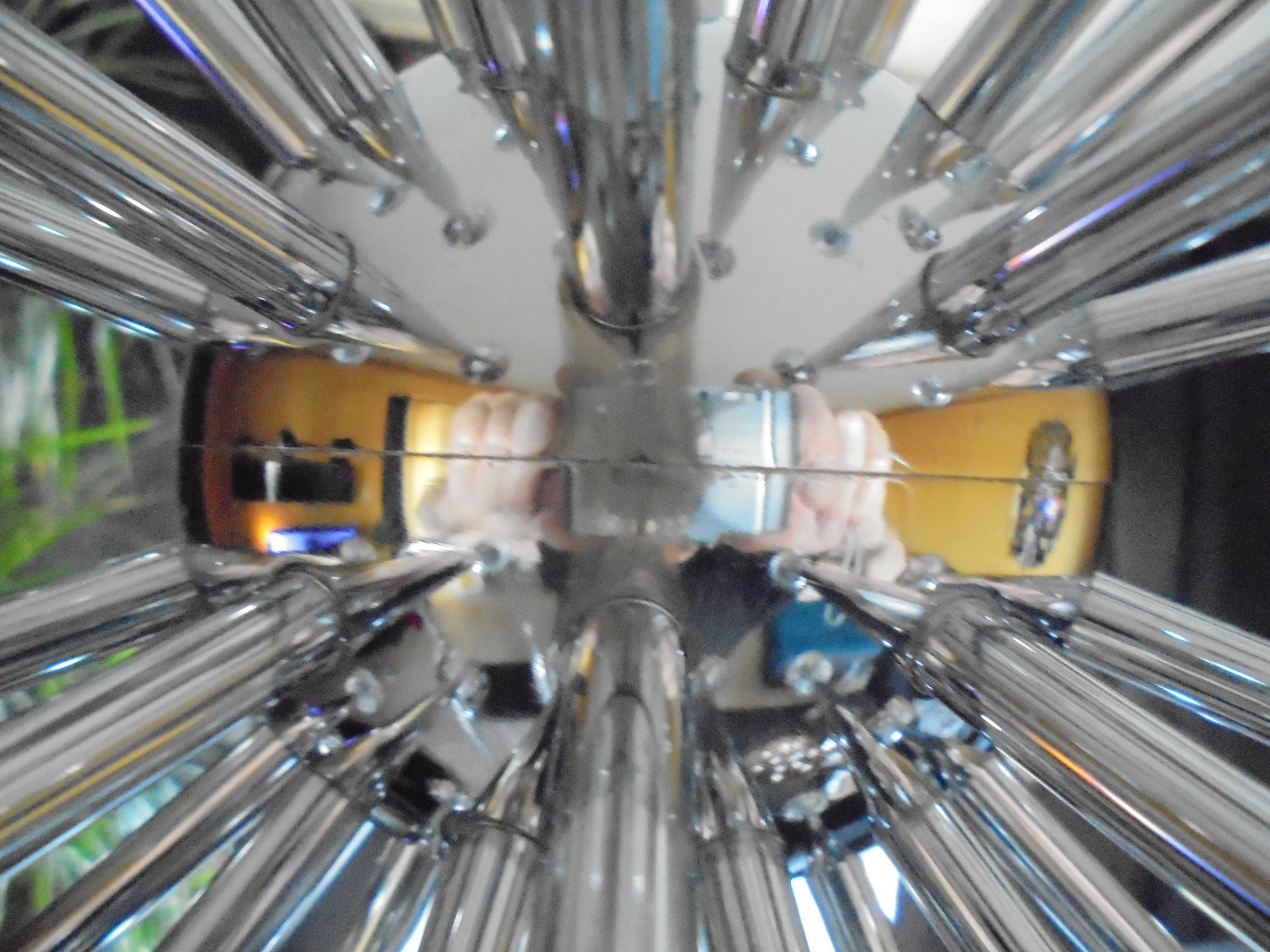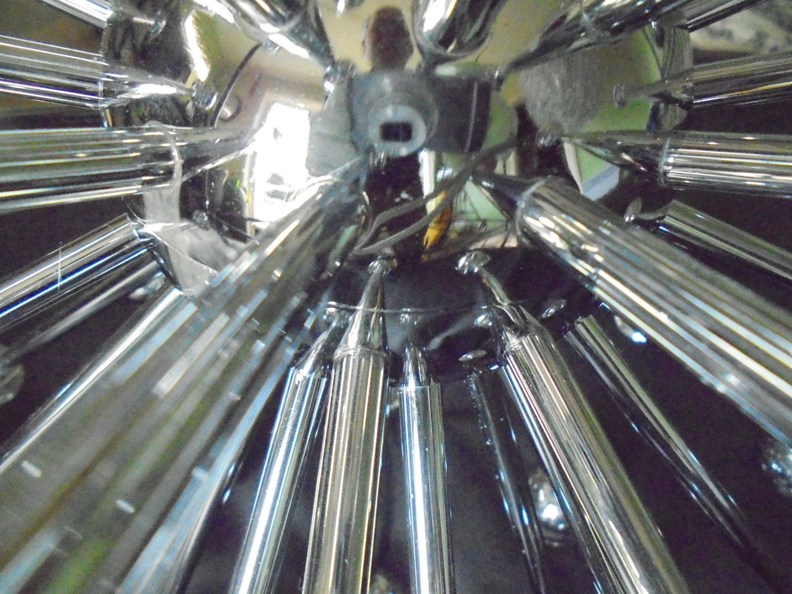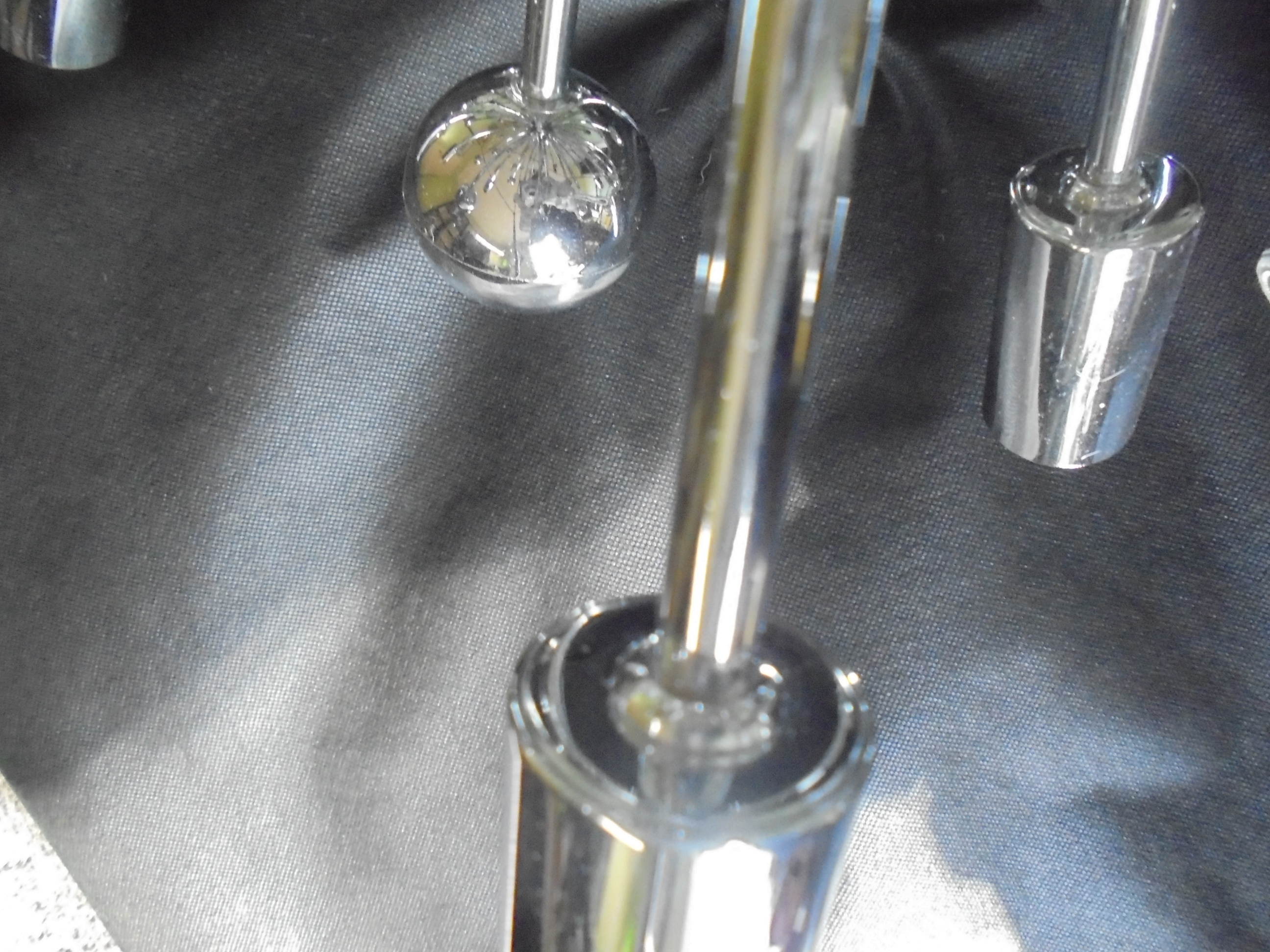 Er zijn minimale gebruikssporen doch geen enkele vorm van corrosie noch afschilfering van de originele chroom. Slechts minimale zichtbare, kleine krasjes op sommige bolletjes en lamphouders. Eens gemonteerd, amper zichtbaar.