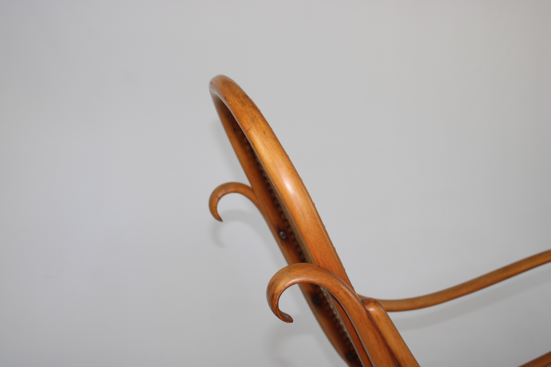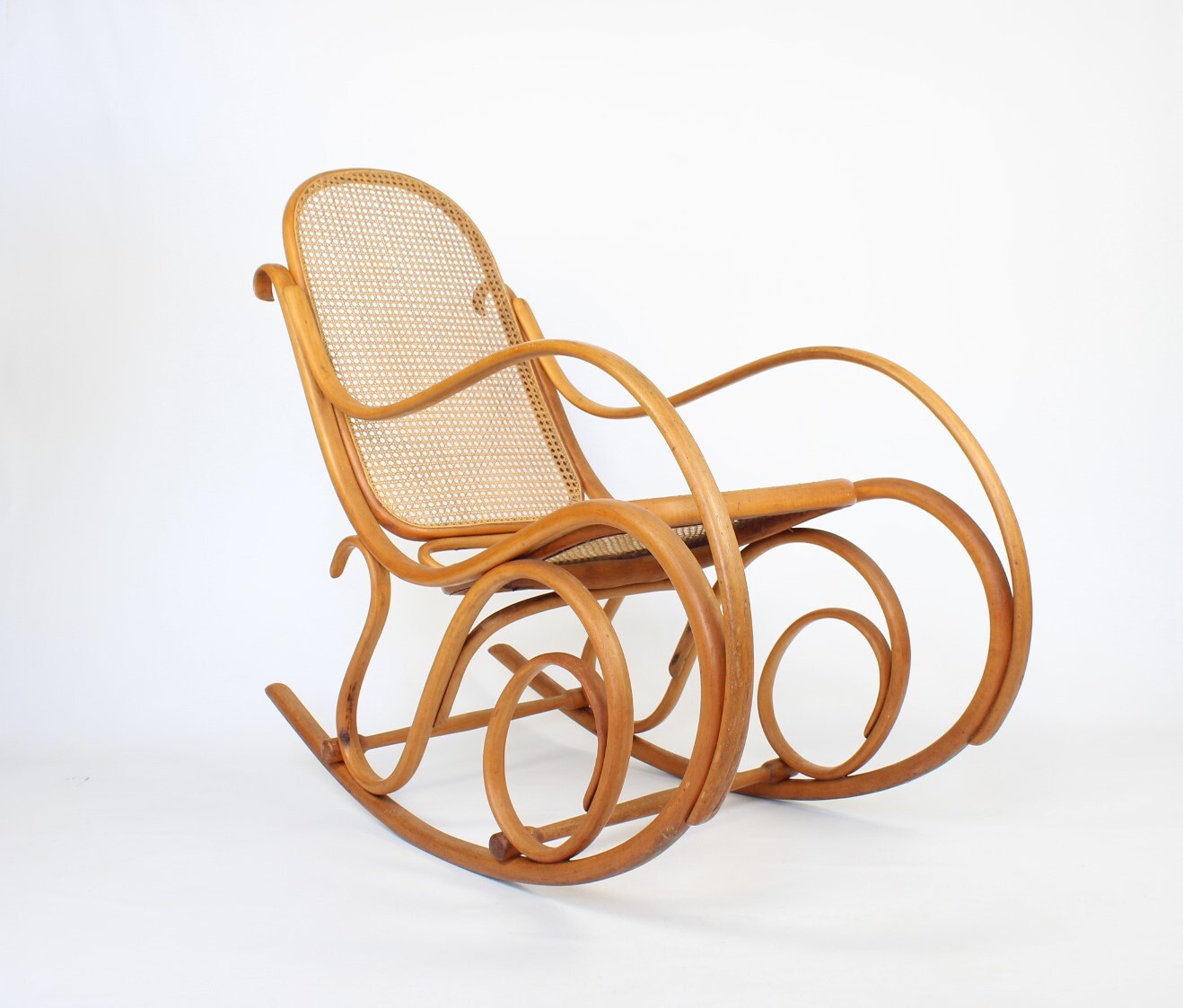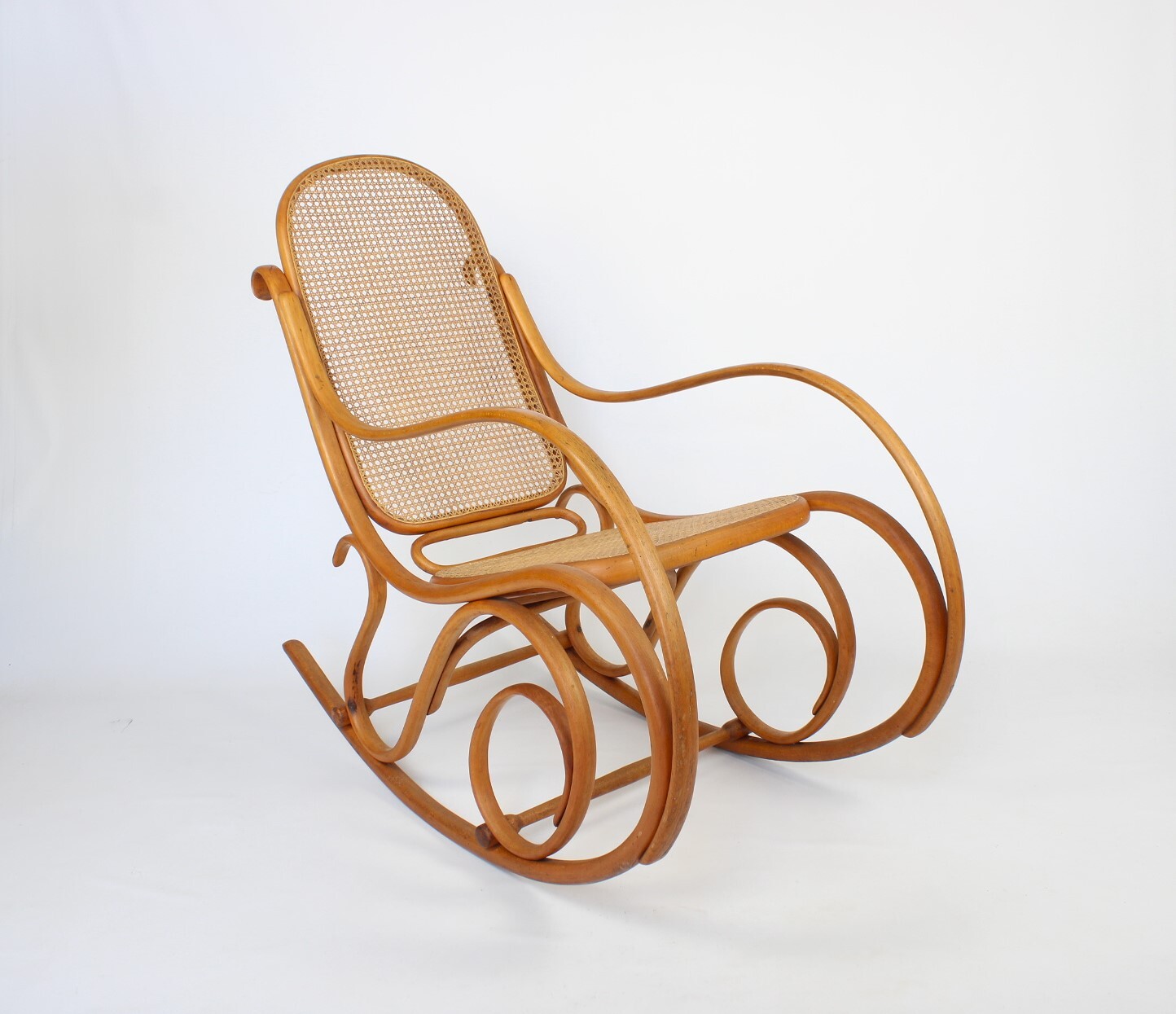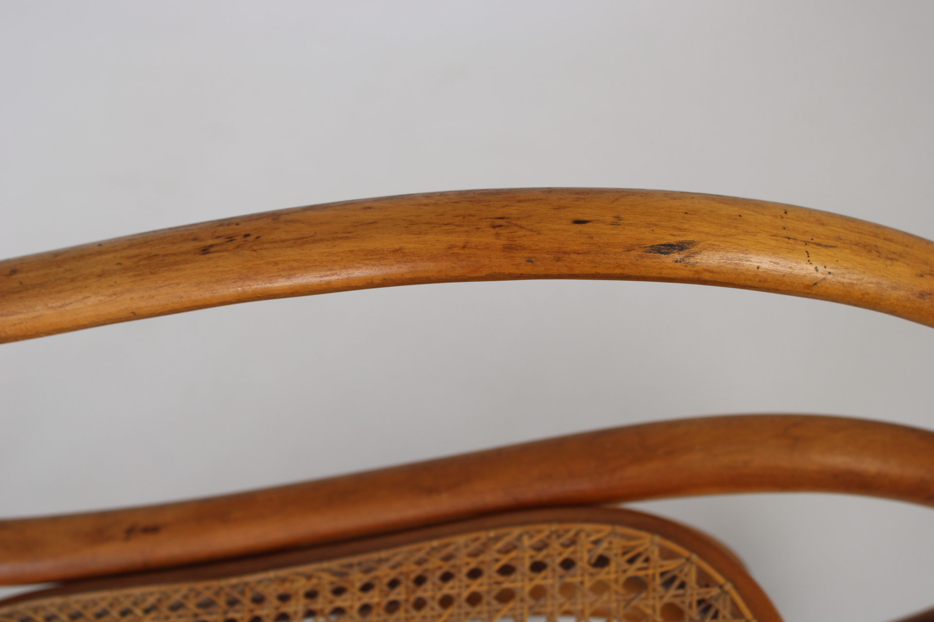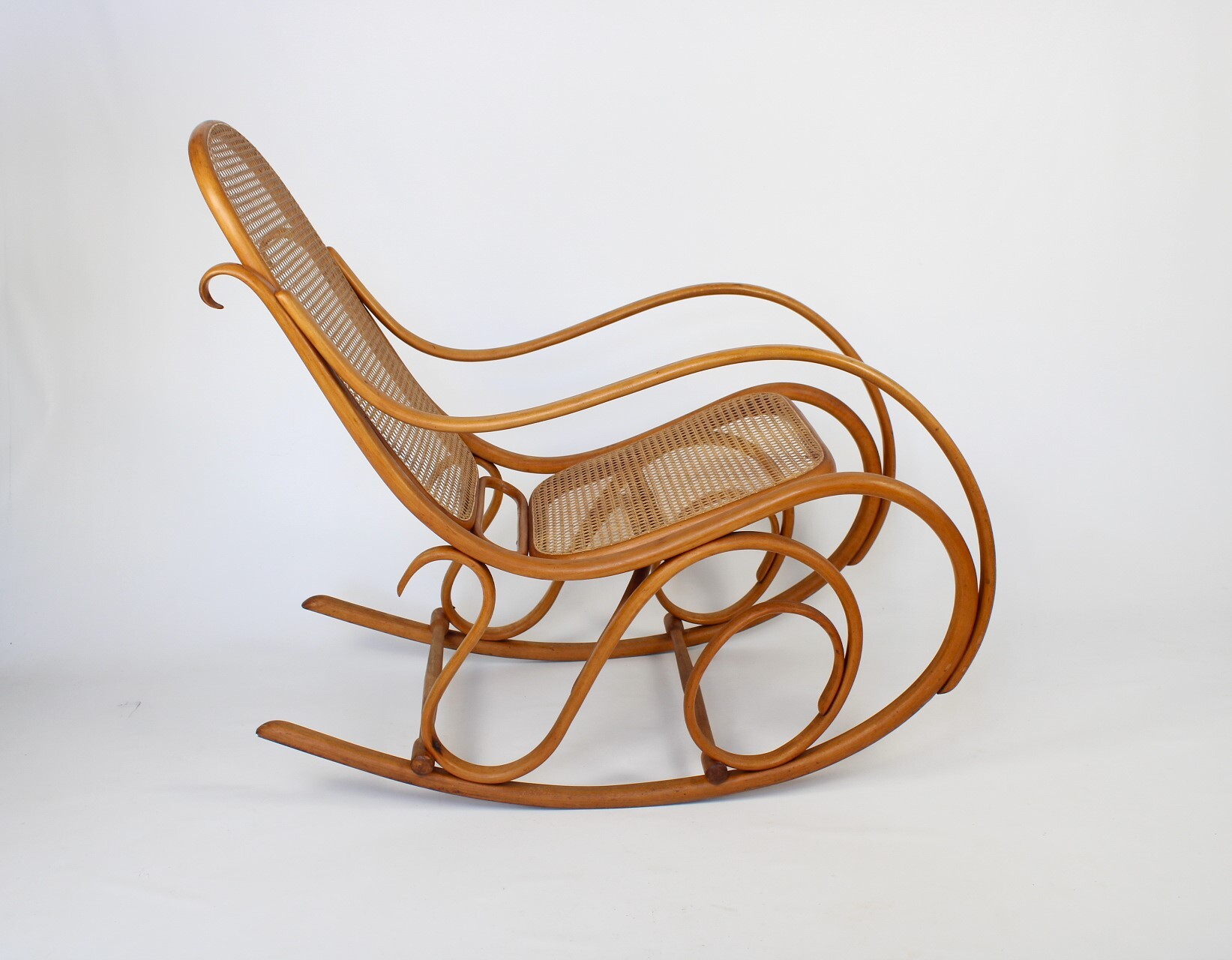 Een schommelstoel nr. 14 van Thonet met een mooie uitstraling. Eind 19de-begin 20ste eeuw. Dit type van schommelstoel stond vanaf de jaren 1886 in de catalogus van Thonet. Gerestaureerd, in zeer goede staat. Het etiket van Thonet is niet meer aanwezig, nog enkele sporen van waar het etiket gekleefd heeft.