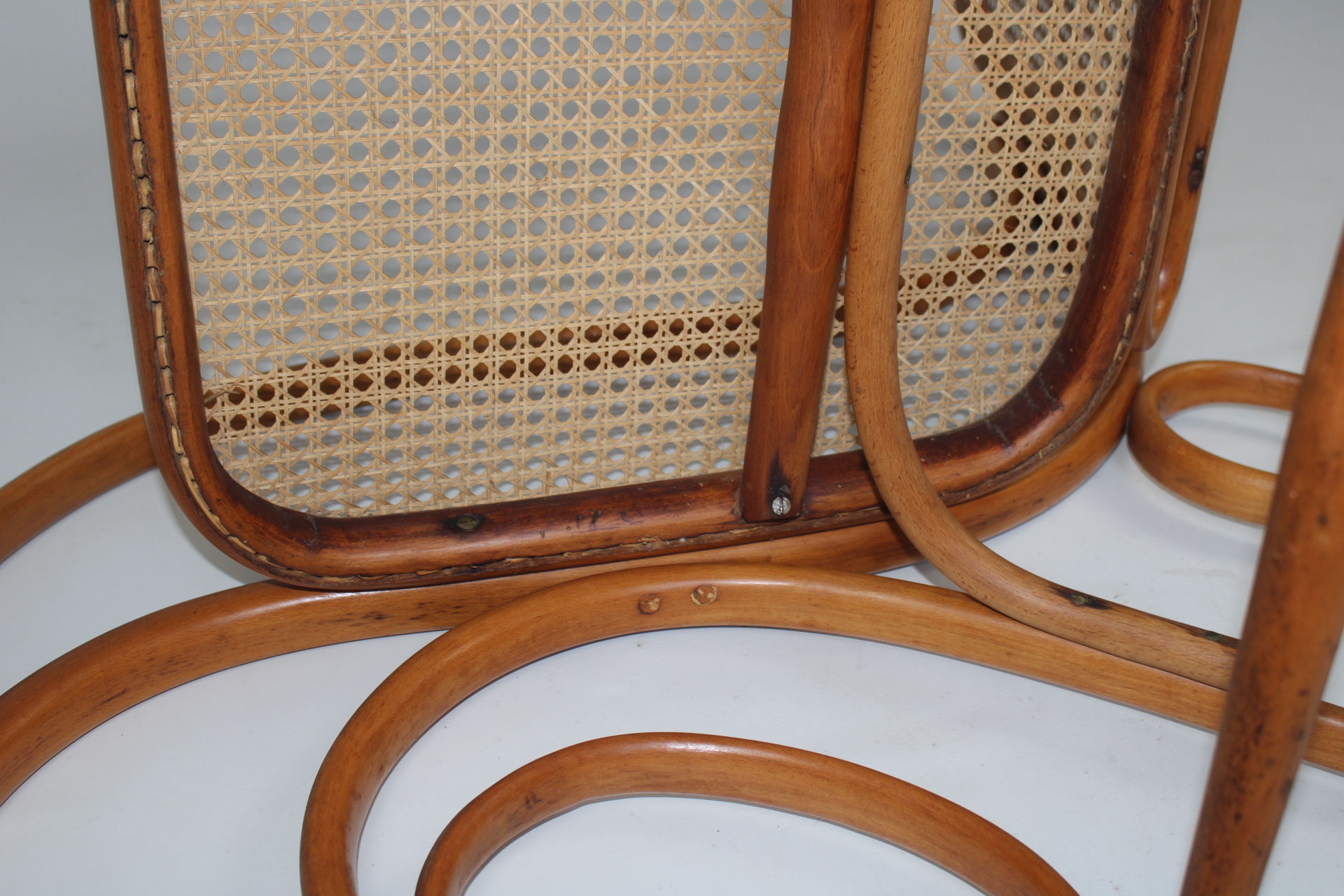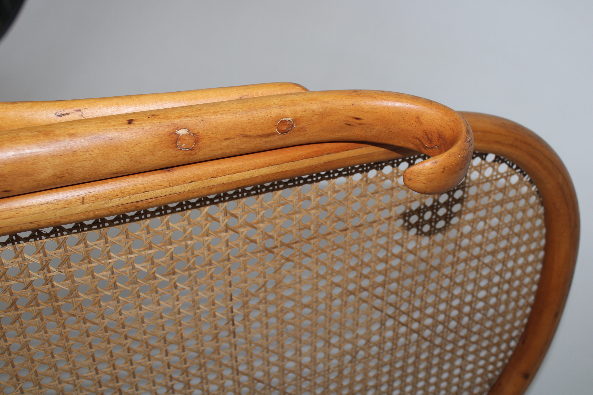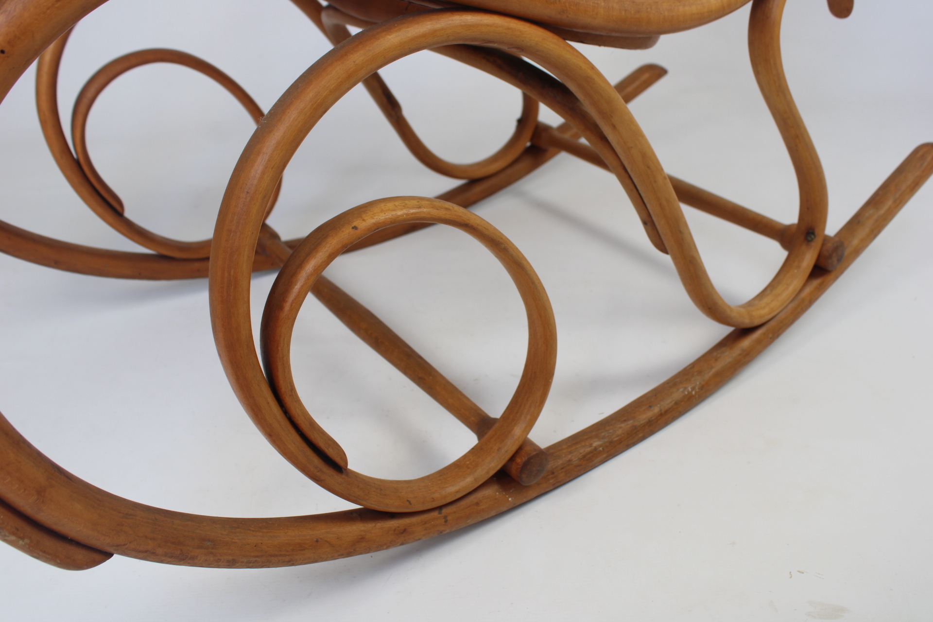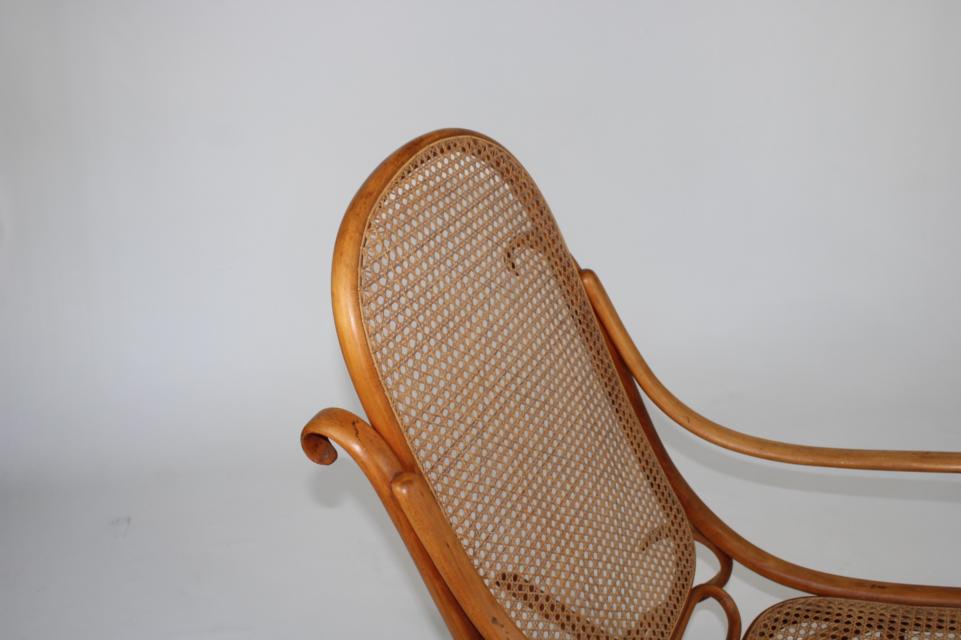 Een schommelstoel nr. 14 van Thonet met een mooie uitstraling. Eind 19de-begin 20ste eeuw. Dit type van schommelstoel stond vanaf de jaren 1886 in de catalogus van Thonet. Gerestaureerd, in zeer goede staat. Het etiket van Thonet is niet meer aanwezig, nog enkele sporen van waar het etiket gekleefd heeft.