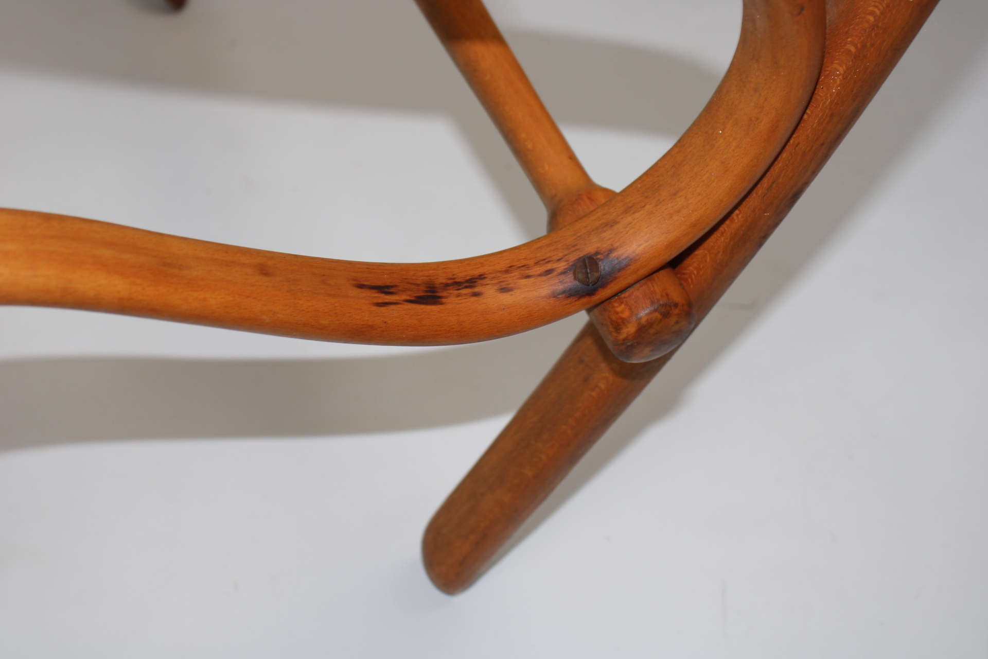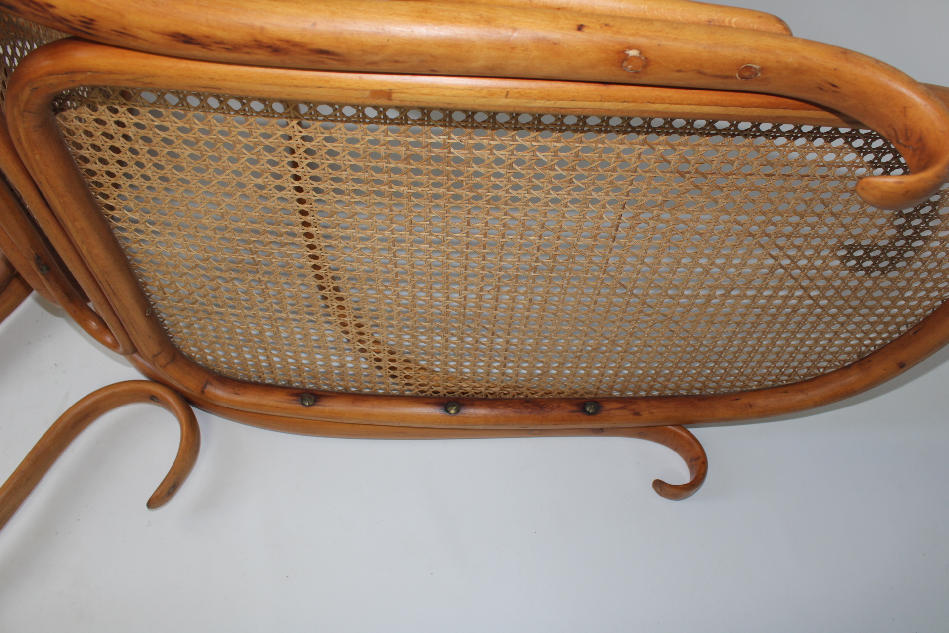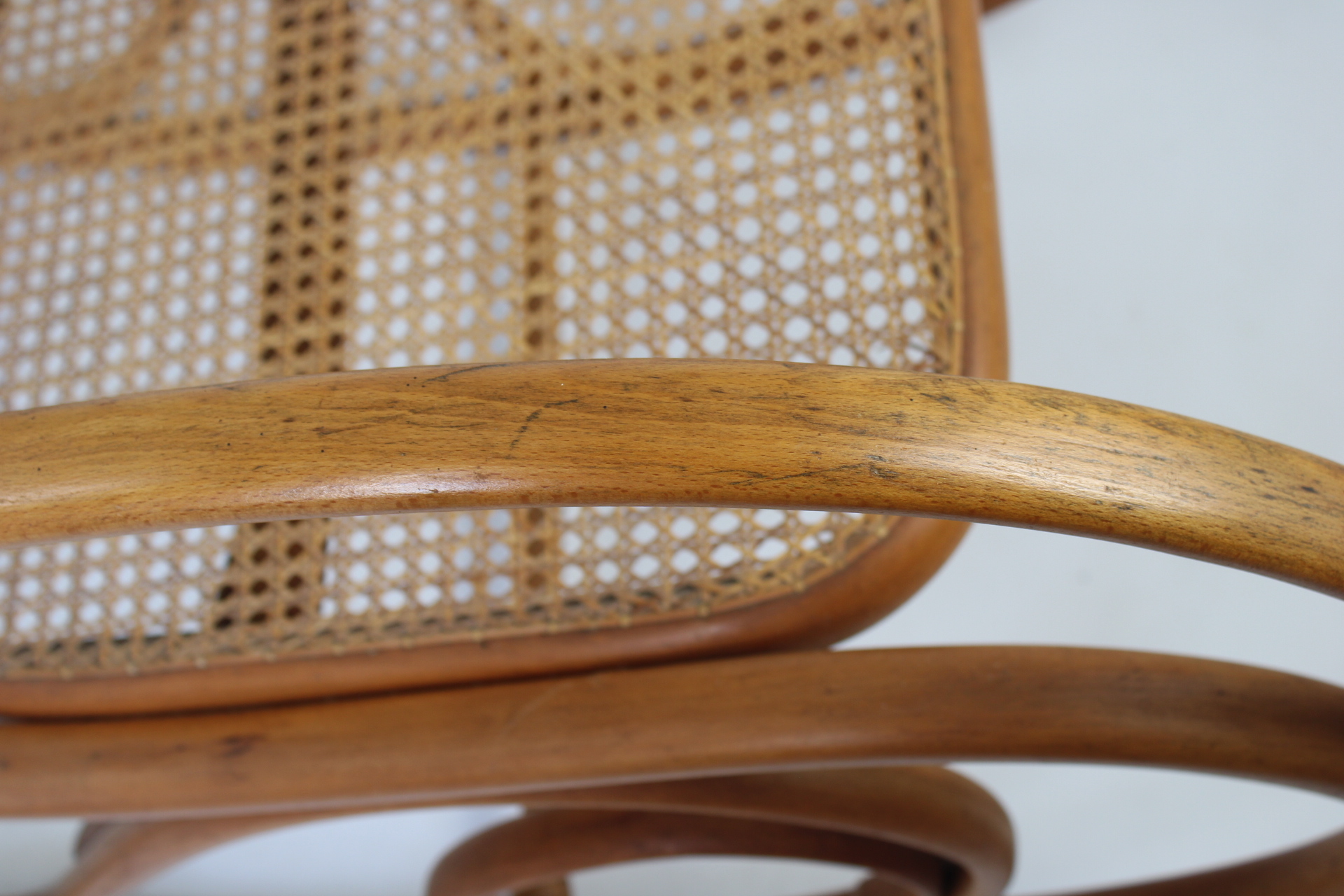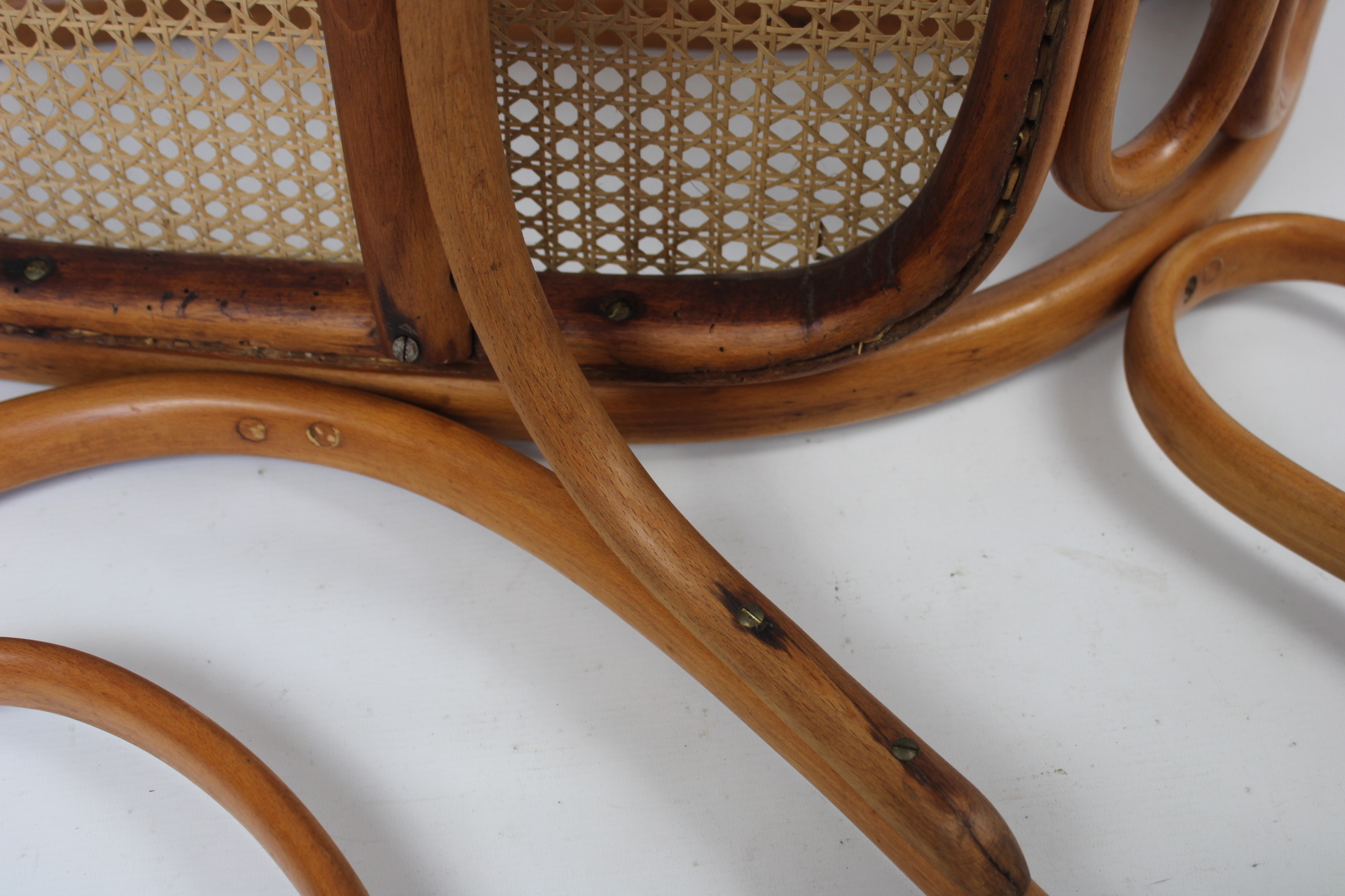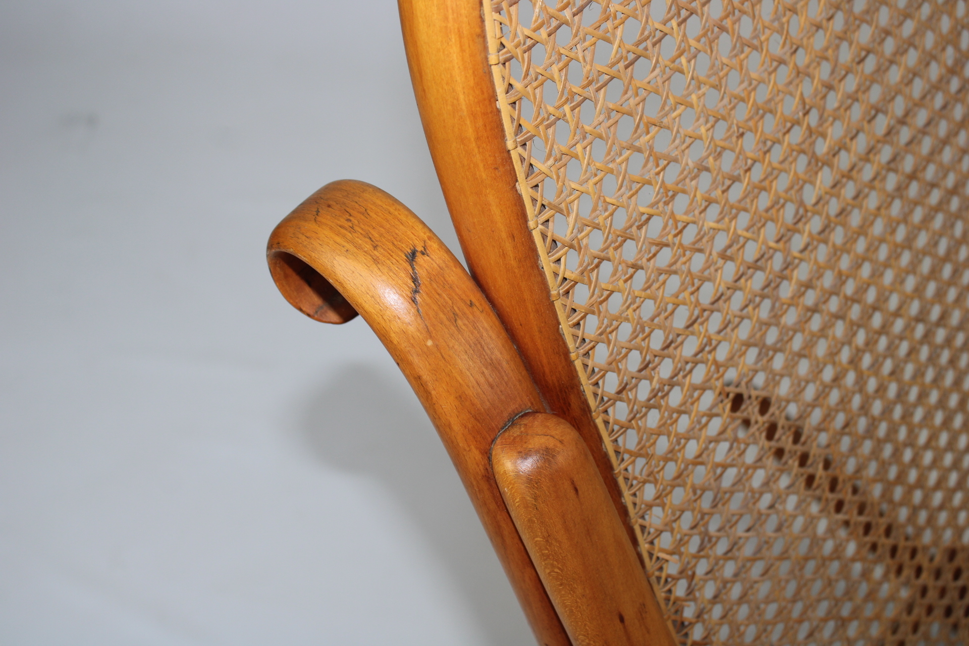 Een schommelstoel nr. 14 van Thonet met een mooie uitstraling. Eind 19de-begin 20ste eeuw. Dit type van schommelstoel stond vanaf de jaren 1886 in de catalogus van Thonet. Gerestaureerd, in zeer goede staat. Het etiket van Thonet is niet meer aanwezig, nog enkele sporen van waar het etiket gekleefd heeft.