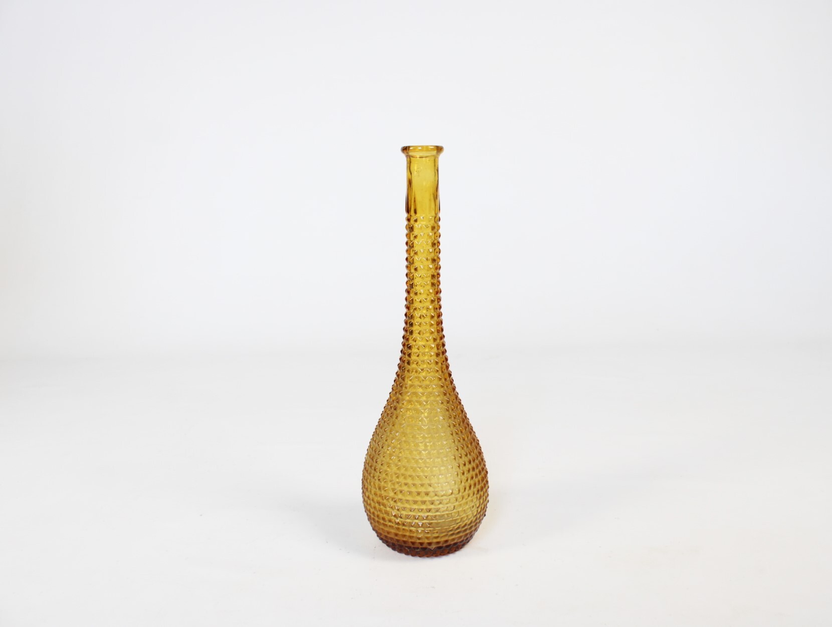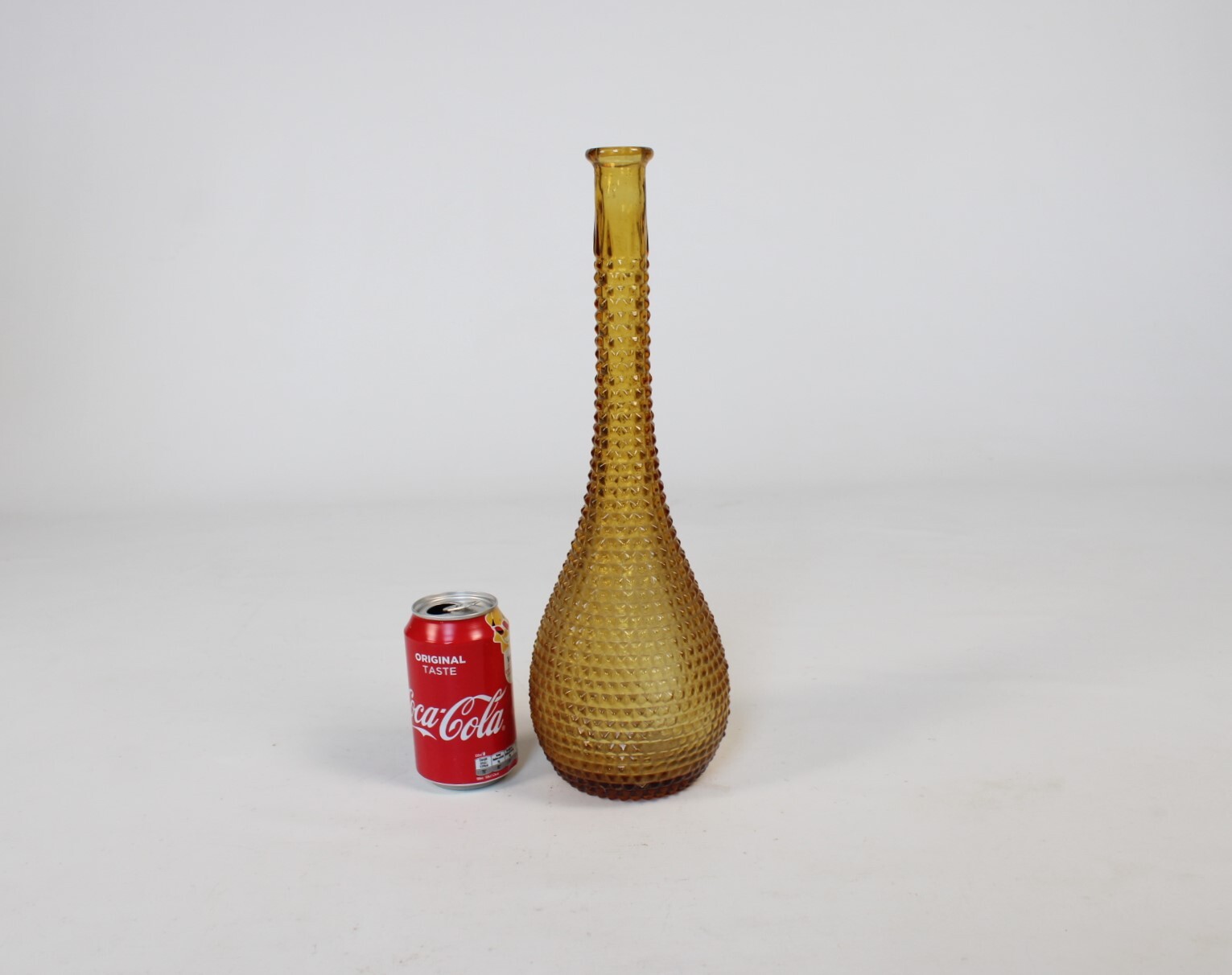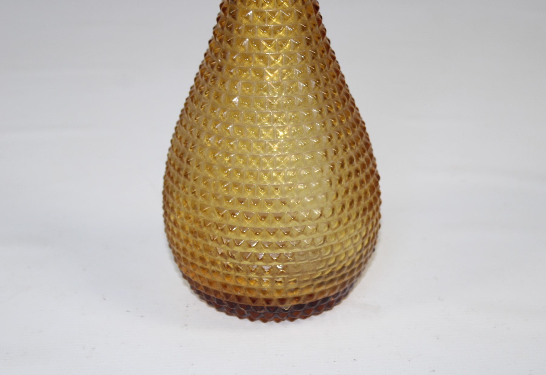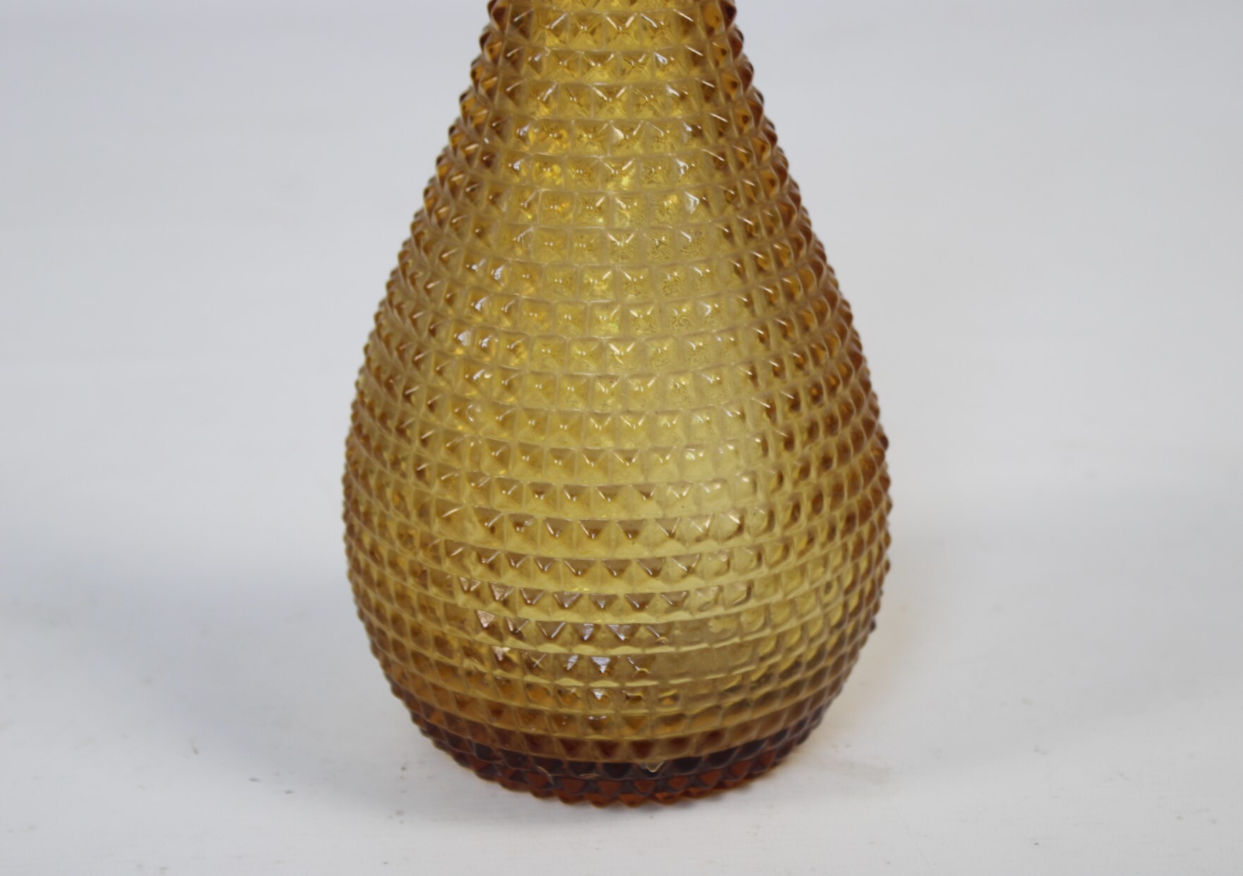Een amberkleurige Empoli glazen karaf. Jaren 60, Italië. Met diamant- of facetreliëf. Genie bottle.