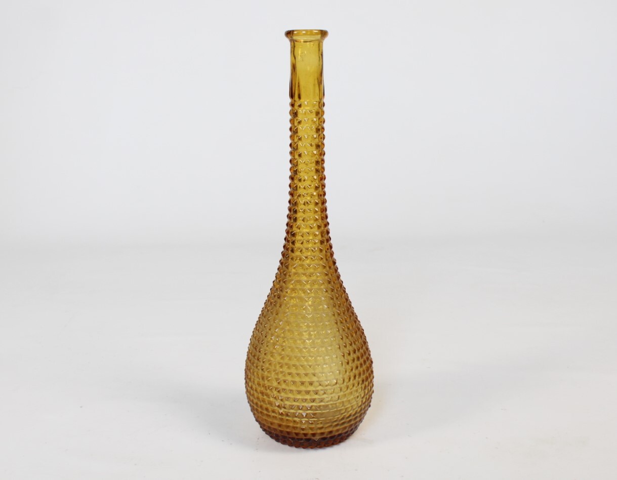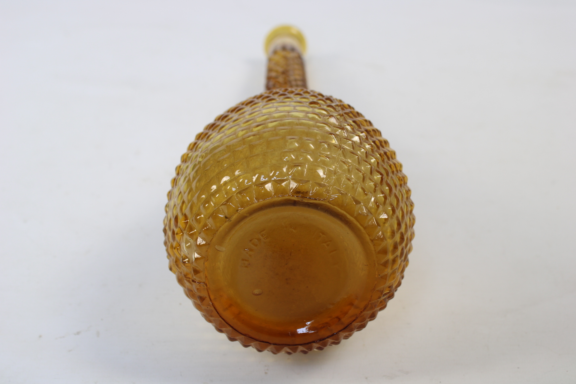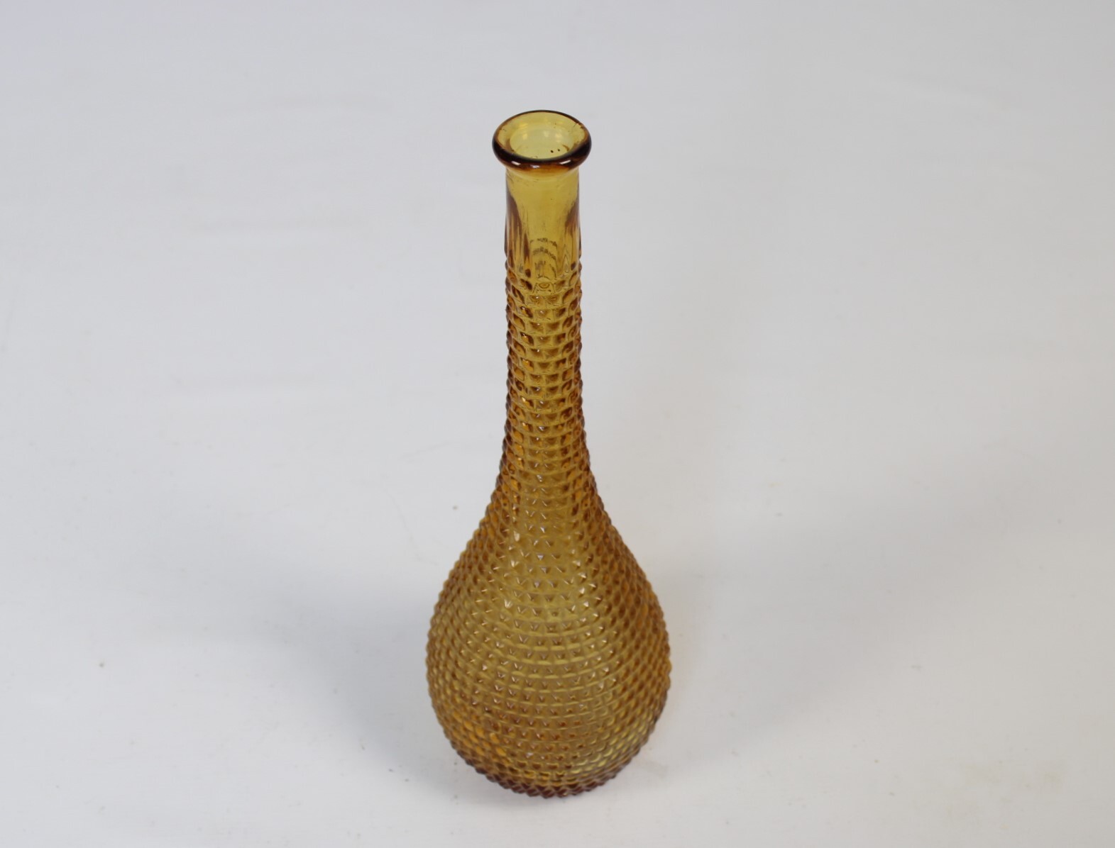 Een amberkleurige Empoli glazen karaf. Jaren 60, Italië. Met diamant- of facetreliëf. Genie bottle.