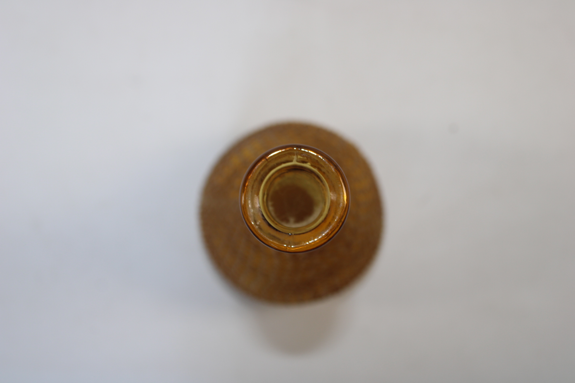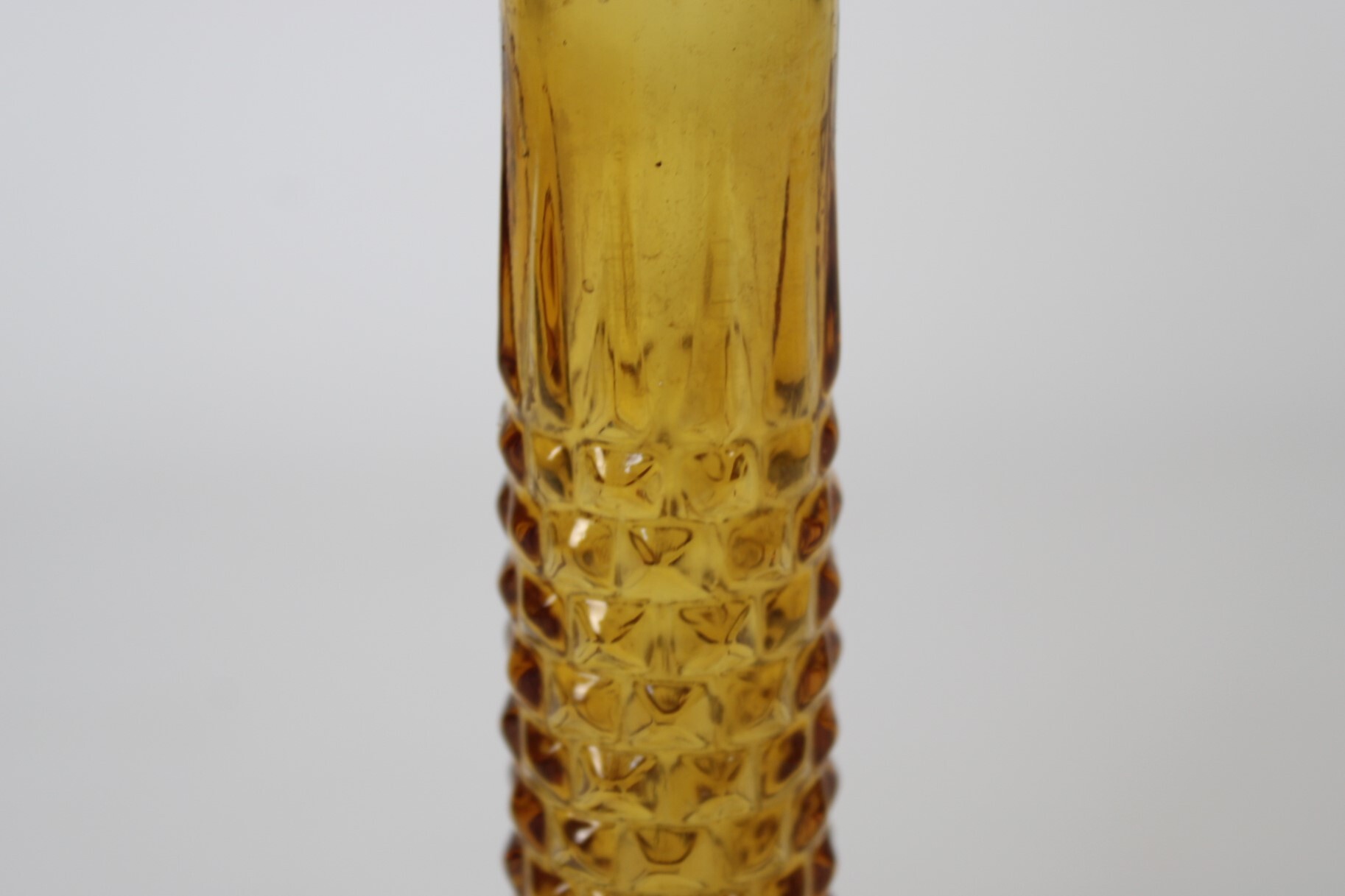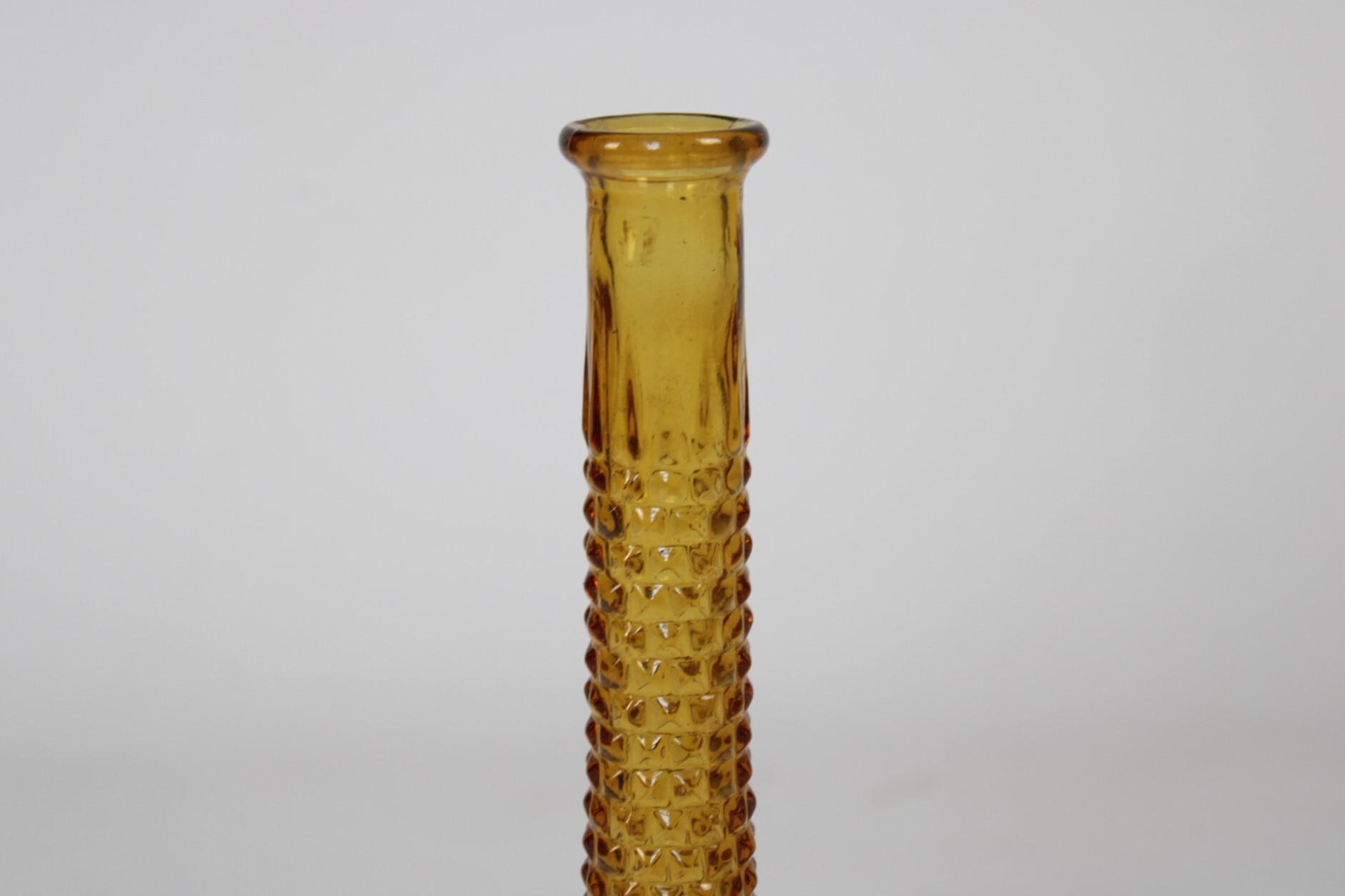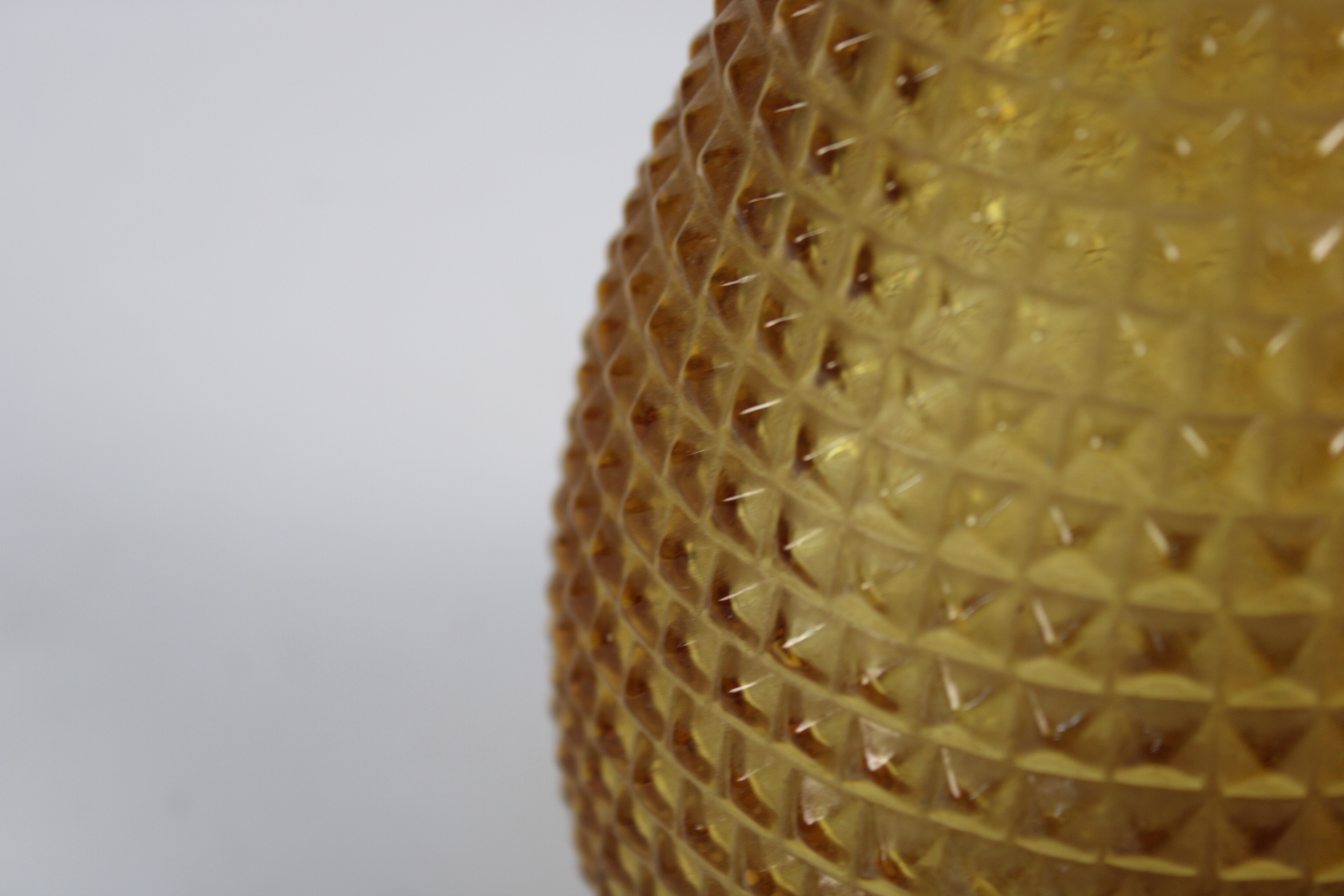 Een amberkleurige Empoli glazen karaf. Jaren 60, Italië. Met diamant- of facetreliëf. Genie bottle.